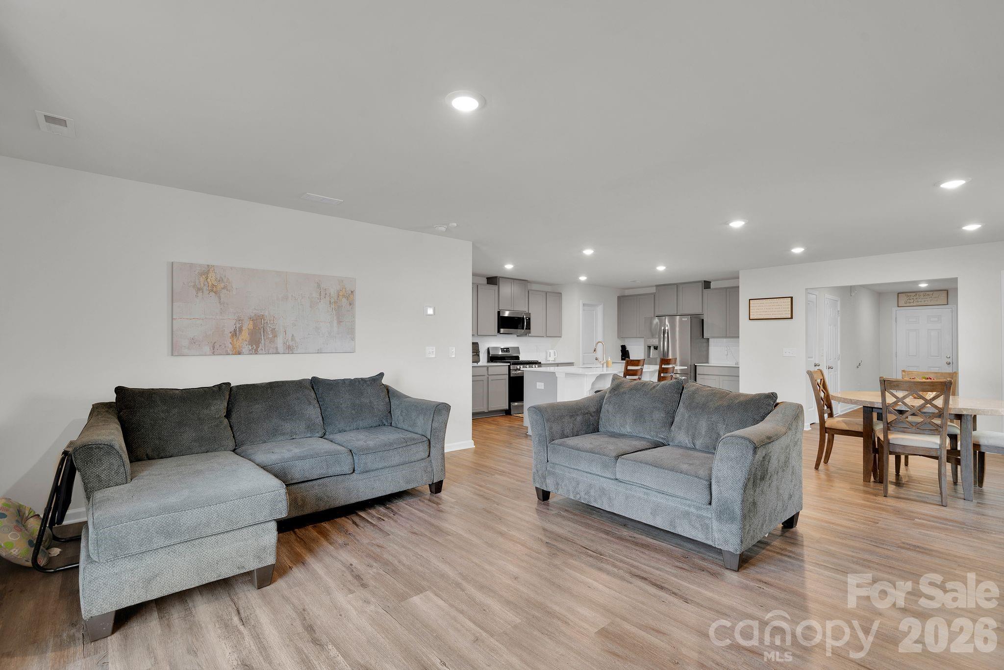 Discover your dream home at 1212 Roundhill Ct! This spacious 5-bedroom, 3-bathroom home is designed for comfort, style, and modern living. The open-concept main level showcases beautiful modeled oak EVP flooring throughout the common areas, creating a a warm and inviting space for everyday living and entertaining. The kitchen is a true highlight, featuring stone gray cabinetry and quartz countertops—perfect for cooking and gathering. A convenient first-floor bedroom offers flexibility for guests, multi-generational living, or a private home office. Upstairs, generously sized bedrooms provide plenty of space, along with a versatile bonus room with double doors that can easily serve as a media room, playroom, or additional workspace. The upstairs hall bath features dual sinks to help simplify busy mornings. Connected home smart features add modern convenience to daily living. With its thoughtful layout, stylish finishes, and abundant space, this beautifully maintained home is move-in ready. Located in the desirable Veronica Springs community in Monroe, this home offers convenient access to Hwy 74 and Hwy 601, making commuting to Charlotte and surrounding areas easy. Residents enjoy neighborhood amenities including walking trails, a playground, picnic areas, and sidewalks. The community is also just minutes from shopping, dining, and everyday conveniences while still offering a quiet neighborhood setting.