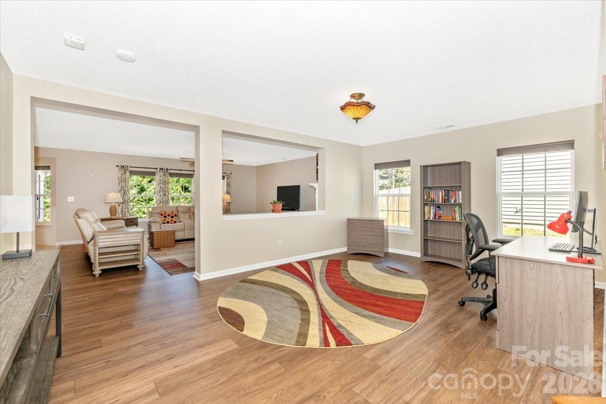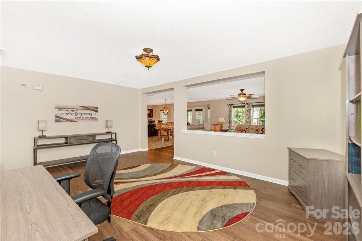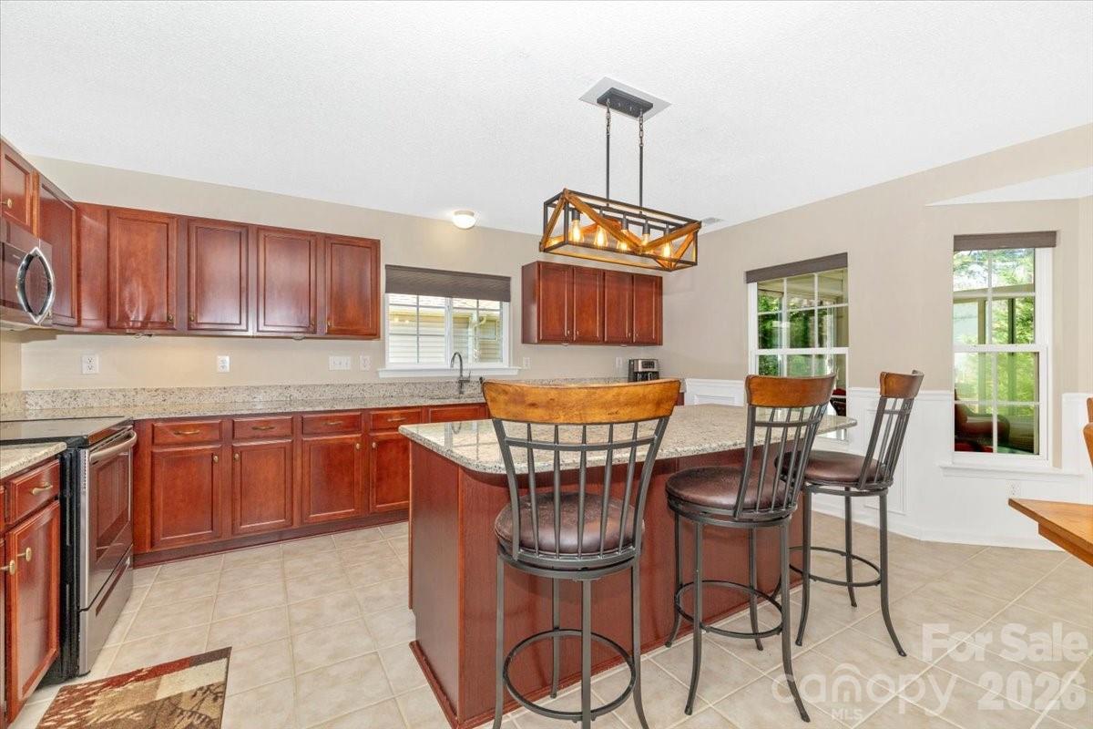 This stunning ranch home offers zero-step entry and a bright, open layout designed for effortless living. The expansive, updated chef’s kitchen features stainless steel appliances, gorgeous granite countertops, an abundance of custom cabinetry with roll-out drawers, and an oversized breakfast bar. The kitchen opens seamlessly to the breakfast/dining area and spacious family room—an ideal setup for entertaining. The family room is filled with natural light from numerous windows and includes a cozy gas fireplace. A versatile flex room provides the perfect space for a home office, formal dining room, study, or bonus area. The primary suite is generously sized and includes a large walk-in closet, updated oversized shower, dual sinks with cultured marble countertops, and tile flooring. Two additional guest bedrooms and a large hall bath offer comfortable accommodations for family or visitors. Enjoy the outdoors in every season from the heated and cooled sunroom, or step outside to the patio—perfect for grilling and relaxing. The home also includes a 2-car garage with keypad entry, automatic opener, and additional attic storage. All furniture, except dining room table, in home is negotiable. Located close to the neighborhood pool and playground, this home is served by award-winning schools and benefits from low South Carolina taxes. Its unbeatable central location provides quick access to CLT Airport, I-77, and I-485, making commuting and travel incredibly convenient. HVAC installed in approximately 2019 and new roof installed in approximately 2024. This well-maintained, move-in-ready home offers comfort, convenience, and exceptional value in one of the area’s most desirable locations.