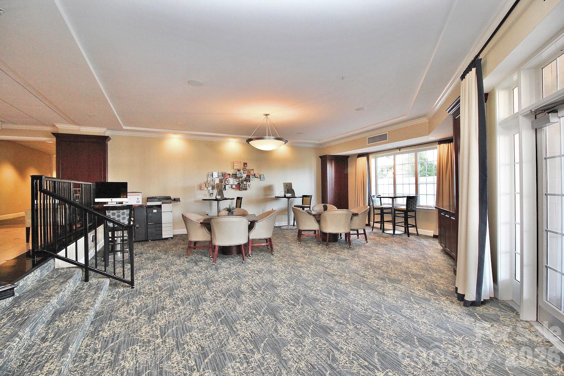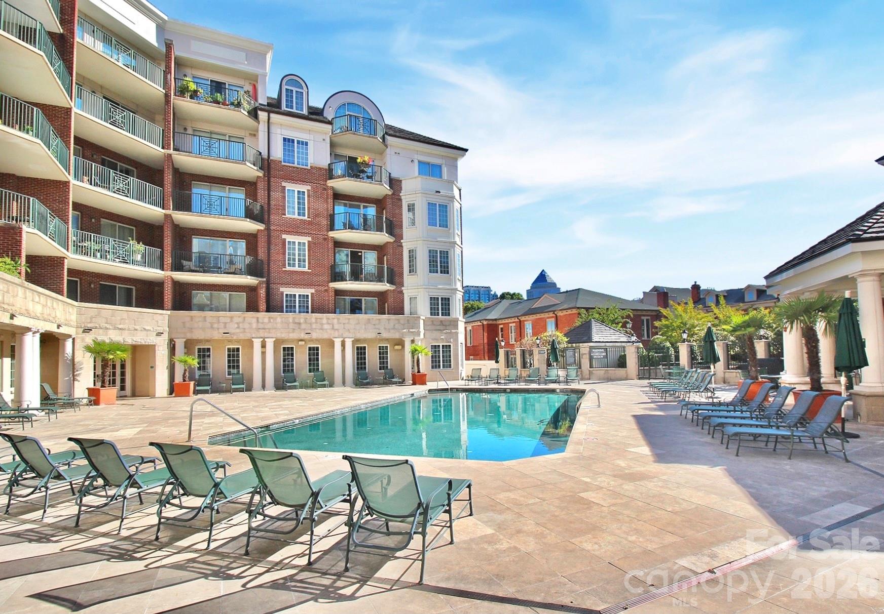 Resort-style living with full-service amenities: 24-hour concierge, award-winning on-site HOA management, a resort pool with outdoor kitchen, a professionally landscaped gated courtyard with putting green, fountain, and dog park, a state-of-the-art fitness center, cozy library with fireplace, fireside terrace with grills and TV, media room, cyber café, coffee bar, and even a resident car wash. Conveniences like Harris Teeter, a nail salon, and dry cleaners. The fifth and poplar community offers an active social calendar including book club, happy hours, and more.