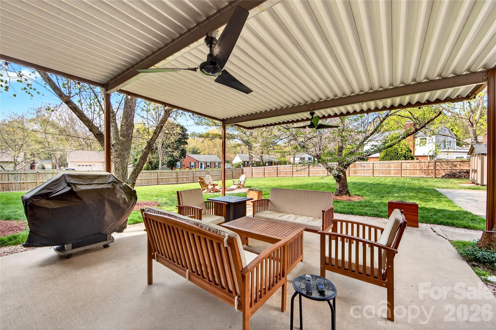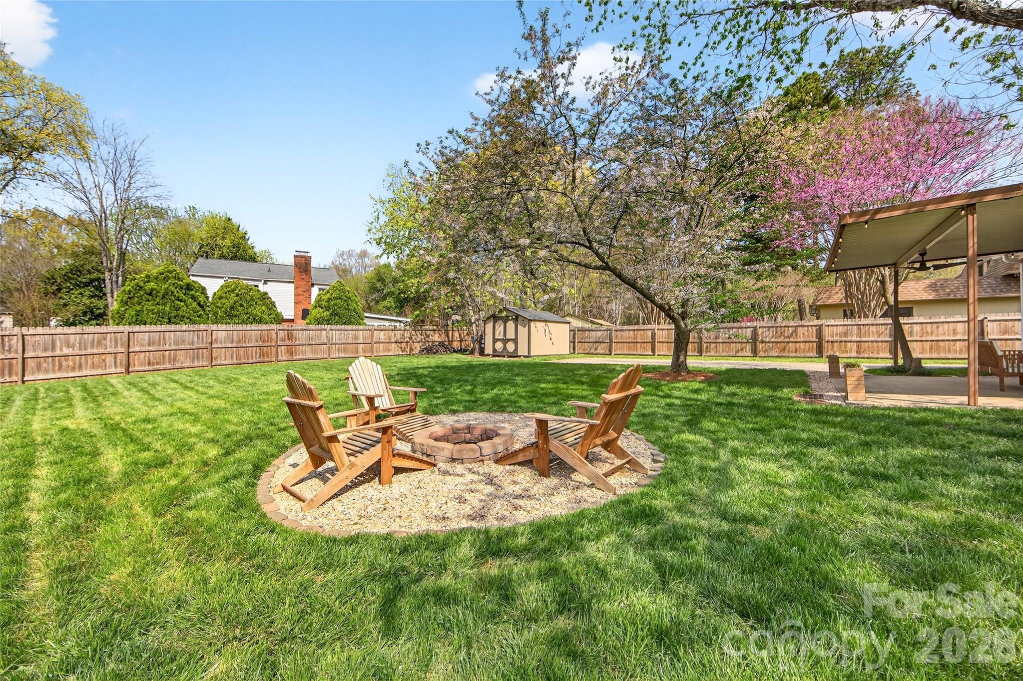 Outside, enjoy a large, level fenced backyard with a covered patio, fire pit area, and storage shed, creating multiple spaces to relax and entertain. Recent outdoor upgrades include a 6-foot privacy fence with gated driveway and a spacious shed.