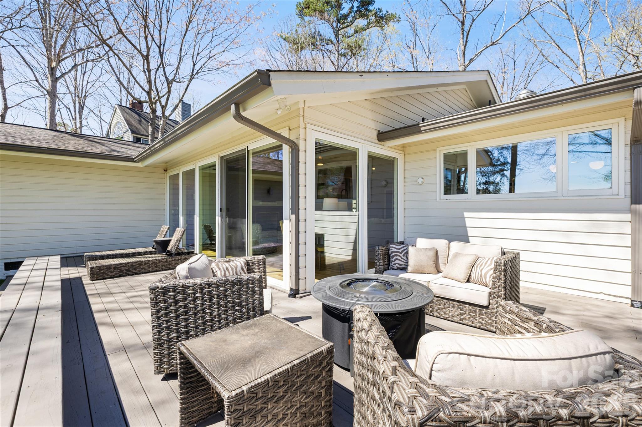 Welcome to 6 Pine Knoll Drive, a beautifully updated MCM ranch on the 1st fairway of the award winning River Hills golf course. Perfectly positioned on a half-acre lot, this fully remodeled interior showcases clean modern lines, wood & tile flooring, and expansive windows that frame serene golf course views. The open living and dining areas create a bright and inviting space ideal for both everyday living and an entertainers dream. The chefs kitchen is equipped with premium Viking appliances, quartz countertops with a waterfall edge, custom cabinetry, and a sunny breakfast nook. The spacious primary suite provides a relaxing retreat with a beautifully updated spa-inspired bathroom and private deck. Large secondary bedrooms are split from the primary with wood floors, plenty of natural light, large closets for each, and a jack n jill style en suite with private vanity and shared tub & toilet. The finished basement adds an additional 797 sf and transforms the home into the ultimate entertainment hub, featuring a custom movie theater, a full-service bar, and a powder room perfect for game days, movie nights, or hosting friends and family. Outdoor living is just as impressive with expansive decking and peaceful golf course views that create a private backyard setting. River Hills residents enjoy 24-hour gated security, marina access, golf, tennis, pool, walking trails, a private beach, and a vibrant social calendar, all just a short drive from Charlotte, the airport, and area shopping and dining. This is a rare opportunity to own a move-in-ready golf course home in one of Lake Wylie's most desirable communities. Finished basement (an additional 787 heated/cooled sq ft) completed by licensed general contractor JBS Construction Group; permit not obtained.