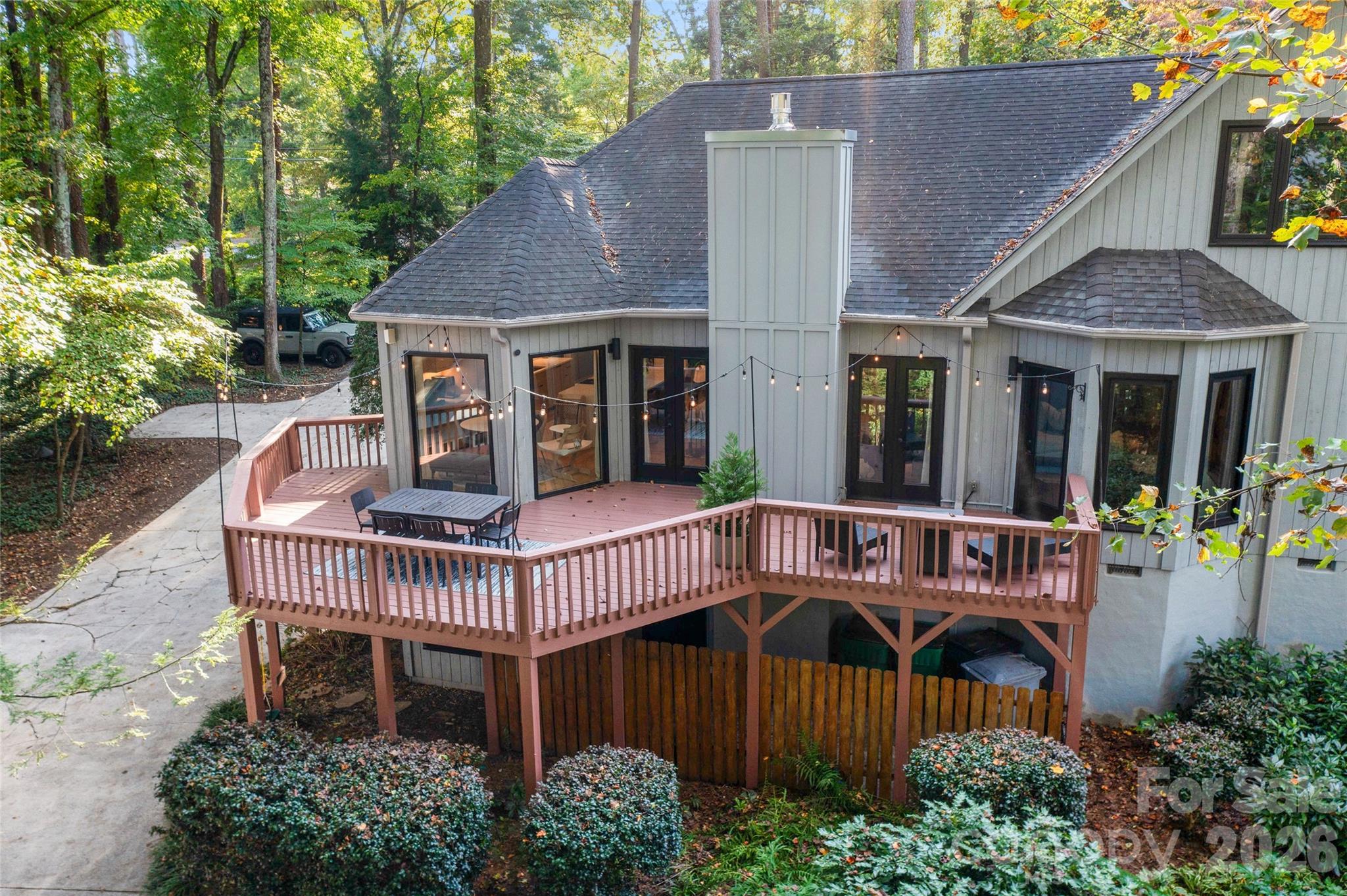 Cotswold designer retreat on a private 0.62-acre wooded lot. No HOA. Private wraparound driveway leading to side. This home is ideally located less than a mile to Cotswold Village, the farmers market, parks, the planned McMullen Creek Greenway, and only minutes to SouthPark, Uptown, hospitals, and top schools. Scandinavian-inspired, the home is light-filled with floor-to-ceiling picture windows, living-room skylights, vaulted ceiling, and an open floor plan. Over $250,000 in renovations between 2020 and 2025 include white-oak floors, floating built-ins, stone waterfall counters, integrated-panel appliances, and a modern gas fireplace with granite hearth, new windows and exterior doors (2020–2021), new hardwoods (2022), new interior doors and whole-house paint (2023), main-house garage door (2024), new HVAC duct work (2025), and an encapsulated crawlspace with dehumidifier and UV purification. The beautiful chef’s kitchen was updated in 2022 and fitted with Wolf dual-fuel range with griddle, Wolf microwave, Sub-Zero refrigerator and freezer, Cove dishwasher, and walk-in pantry with wine fridge. California Closets in bedrooms and pantry/mudroom with a pocket door. You are welcomed by a large open kitchen and great room. The stunning main-level primary suite offers two walk-in closets, soaking tub, walk-in shower, and double vanities. Two additional bedrooms are on the main level. Upstairs is a fourth bedroom, full bath, and large bonus room with a full-wall bookshelf, and walk-in attic. An expansive deck graces the exterior over a tree-canopied backyard. The private wraparound driveway extends to the side street and there is ample parking, including a 1-car attached garage, a 1-car detached garage, and two additional spaces. The detached garage with attic storage has no power but could function as a studio, gym, or office. Throughout the home are bonus smart features and technology: fiber internet, smart thermostats, IoT lighting, Hunter Douglas smart blinds, updated security, and a smart garage door.