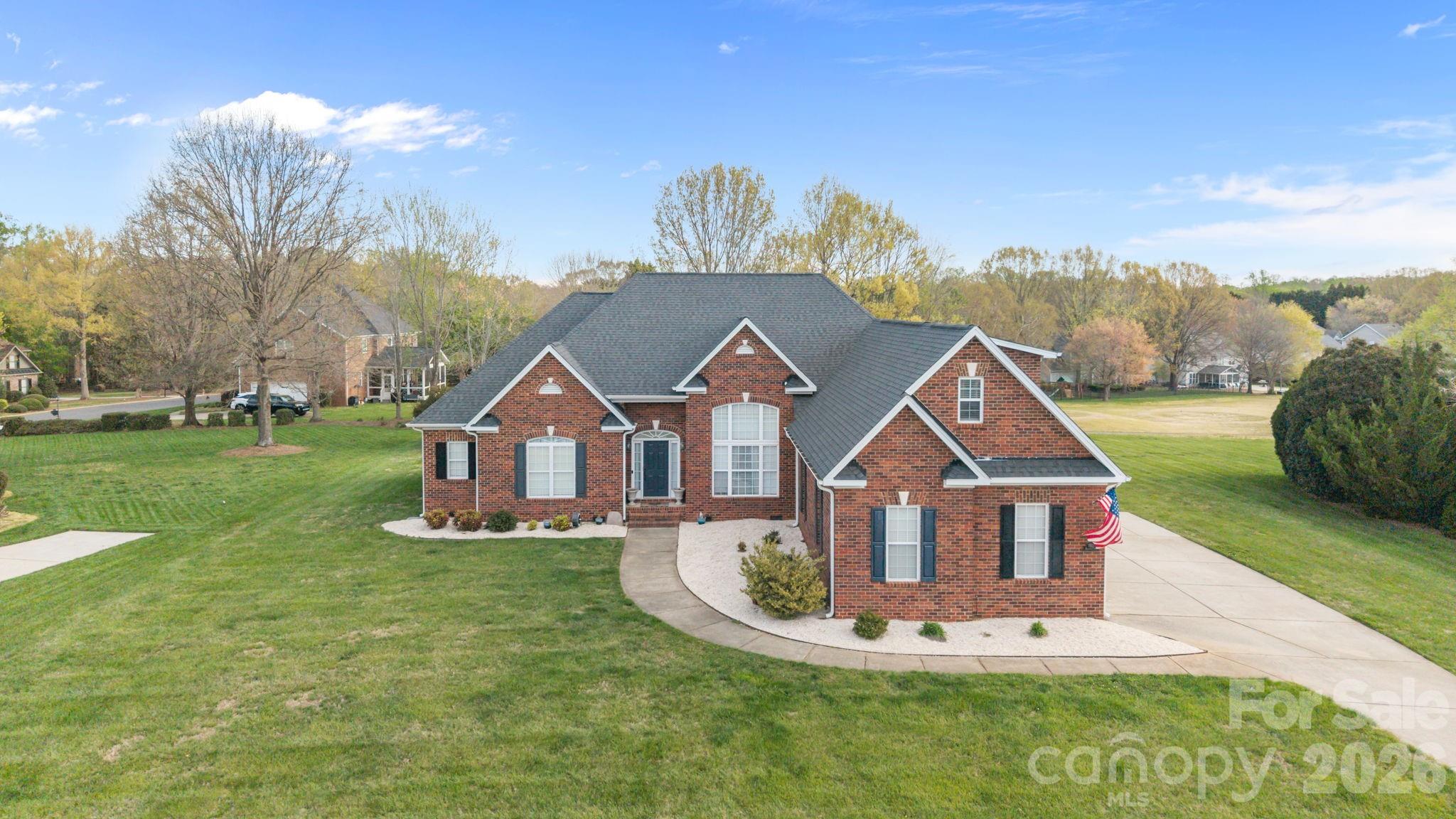Beautiful All-Brick Home in the Highly Coveted Shannamara Neighborhood! This lovingly maintained gem is set on a spacious .5-acre lot, with gorgeous views of the golf course, and is nestled in a quiet section of the neighborhood, known for its larger lots and serene atmosphere with no drive-thru traffic. Enjoy endless summer fun with a fabulous salt-water pool, complete with an extra-deep diving area and a dedicated half-bath for convenience. The beautifully landscaped exterior adds to the home's curb appeal and offers a tranquil retreat. Step inside to discover an open and airy floor plan bathed in natural light. Soaring ceilings in the foyer, great room, and dining room create a grand first impression. The kitchen boasts abundant cabinet and counter space, perfect for meal prep and entertaining. The spacious primary bedroom is located on the main floor and includes a luxurious en-suite bath with a large soaking tub and dual vanities. The secondary bedrooms are nicely sized, each with ample closet space. Upstairs, a large bonus room with a full bath offers flexibility—ideal as an alternate primary suite, guest room, or media room. A convenient flex-space on the main level can serve as an office, playroom, or additional bedroom to suit your needs. Outdoors, the patio leads to the pool area, with a large utility shed for extra storage by the poolside. This home’s prime location offers easy access to HWY 485 and HWY 74, with shopping, dining, and amenities just minutes away. Don't miss out on the opportunity to own this exceptional home in a sought-after neighborhood!