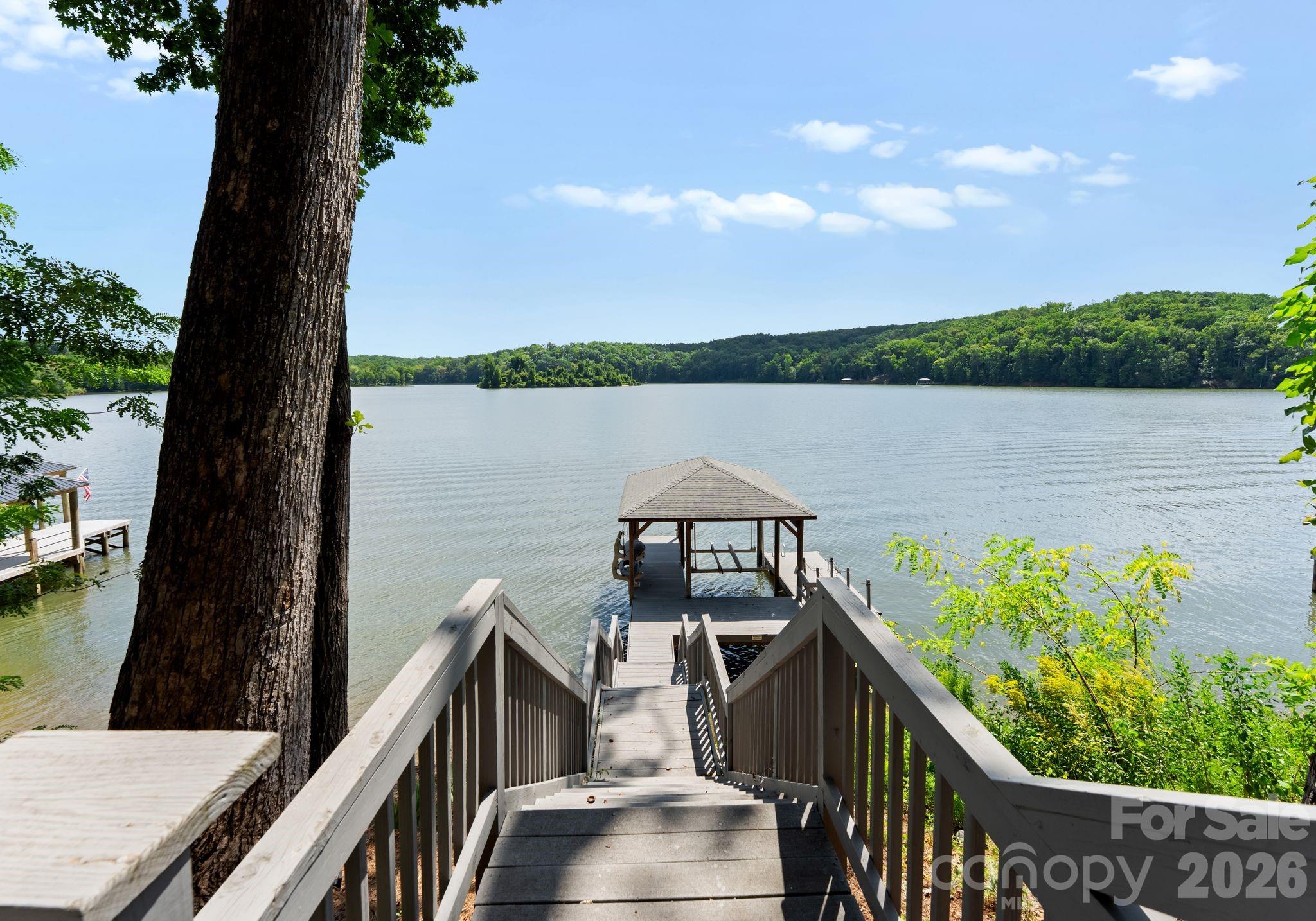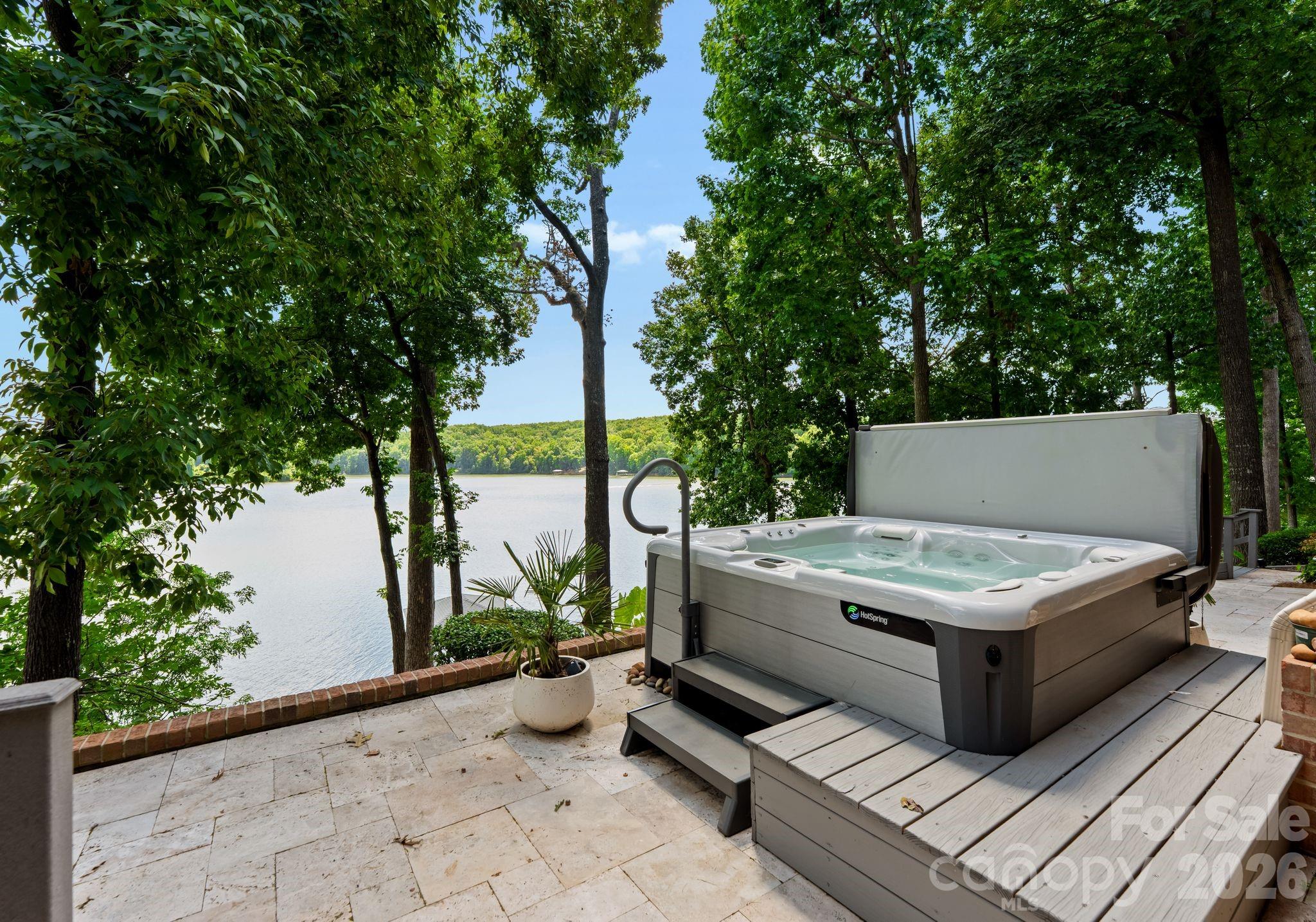 Welcome to this stunning lakefront residence located in the gated community of Reflection Pointe. Positioned on the shores of Lake Wylie, this home blends timeless design with thoughtful updates and incredible views. The primary suite is located on the main level, featuring a recently updated bathroom with modern finishes that create a spa-like retreat. Open living areas are filled with natural light and provide direct access to the expansive upper deck overlooking the water. The exquisitely finished walkout lower level extends the home’s versatility, complete with a theatre room, wine cellar, and generous entertaining spaces. Step outside to the lower-level travertine patio with a saltwater hot tub, perfectly placed to take in the lakefront scenery. Newly replaced steps leading to a floating dock and boat lift. On the third level, a large bonus room offers endless possibilities for hobbies, entertainment, or additional living space. Multiple vantage points—including the deck, patio, fire pit area, and private dock—bring the beauty of Lake Wylie right to your doorstep. Practical features include a three-car garage. Lower level features storage area—plenty of space to keep life streamlined. Reflection Pointe offers resort-style amenities including walking trails, clubhouse, tennis courts, swimming pool, and a community dock. Conveniently located near shopping, dining, marinas, and major highways, this property balances privacy with accessibility. An Invisible Fence is also in place for your pet. This home must be experienced in person to truly appreciate the thoughtful design, brand-new designer roof, recent updates, and breathtaking lake setting. Schedule your private showing today and discover the lakefront lifestyle waiting for you. Community marina with beach area and waterfront pavillon