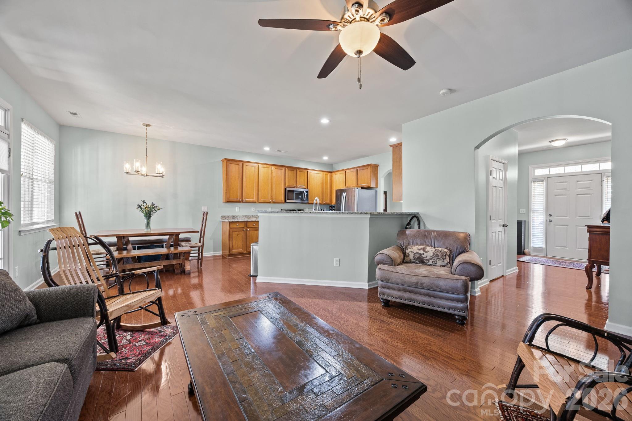 Meticulously Maintained & Truly Move-In Ready Pride of ownership greets you the moment you arrive—and it only gets better from there. This home has been cared for with an eye for detail, making it truly turn-key for its next owner. Step inside and you’ll immediately notice the gleaming wood floors (yes…they’re that shiny—you might want your sunglasses ). The layout flows beautifully, with a formal dining space just off the kitchen—perfect for hosting dinners, holidays, or your next gathering. Now let’s talk about the eat in kitchen…because it delivers. You’ll find so many cabinets, lots of counter space , a gas stove/oven, and the best part... You can even wash dishes and watch TV! Life is good. Right outside the back door is a custom-covered patio ready for year-round enjoyment, complete with an outdoor TV, ceiling fan, fire pit, and a level backyard for your yard toys. Upstairs, the primary suite offers a peaceful retreat with a custom walk-in shower, dual sinks, and a spacious walk-in closet. There are 2 more bedrooms, a bonus room, and a full bath. The laundry closet is conveniently located upstairs. No more lugging clothes up and down the stairs. And the neighborhood? It checks all the boxes—resort-style pool with a fun tunnel slide, clubhouse, fitness center, rec room, and even a pond perfect for a quiet moment to “ponder life.” Need to do some shopping or grab something to eat? It's all just a few minutes away. Come take a look, you just might want to stay.