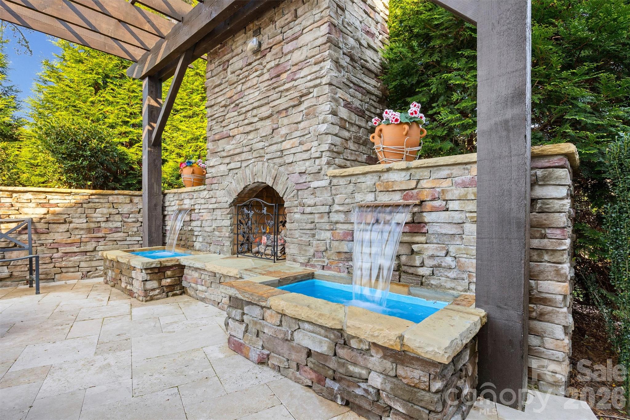 Absolutely Gorgeous Former Model Home with Stunning Outdoor Living! This beautifully appointed residence showcases exceptional craftsmanship, thoughtful design, and upscale finishes throughout. From the moment you step inside, you’re welcomed by an elegant entryway accented with timeless wainscoting and rich hardwood flooring that extends throughout the main area of the home, primary bedroom and bonus room. The stunning kitchen is both stylish and functional, featuring white shaker cabinetry, quartz countertops, gas range, oven and microwave combo, stainless steel appliances, a spacious breakfast area, and an oversized pantry with custom shelving. Everyday convenience is elevated with a thoughtfully designed drop zone and expansive laundry room. The main-level primary suite offers a luxurious private retreat with a tray ceiling, spa-inspired bath with a large tiled shower, and custom walk-in closets with built-in shelving. The main floor also includes an additional bedroom and a private office with built-ins, offering flexibility for guests, multigenerational living, or working from home. The backyard is truly an entertainer’s dream. Enjoy the covered porch with automatic screens, extensive travertine pavers, a built-in bar with grill and refrigerator, and a stunning wood-burning stone fireplace. Beautiful waterfall features complete the space, creating a private, resort-style outdoor oasis. With designer details, premium upgrades, and the distinction of being a former model home, this exceptional property and neighborhood offers luxury living at its finest.