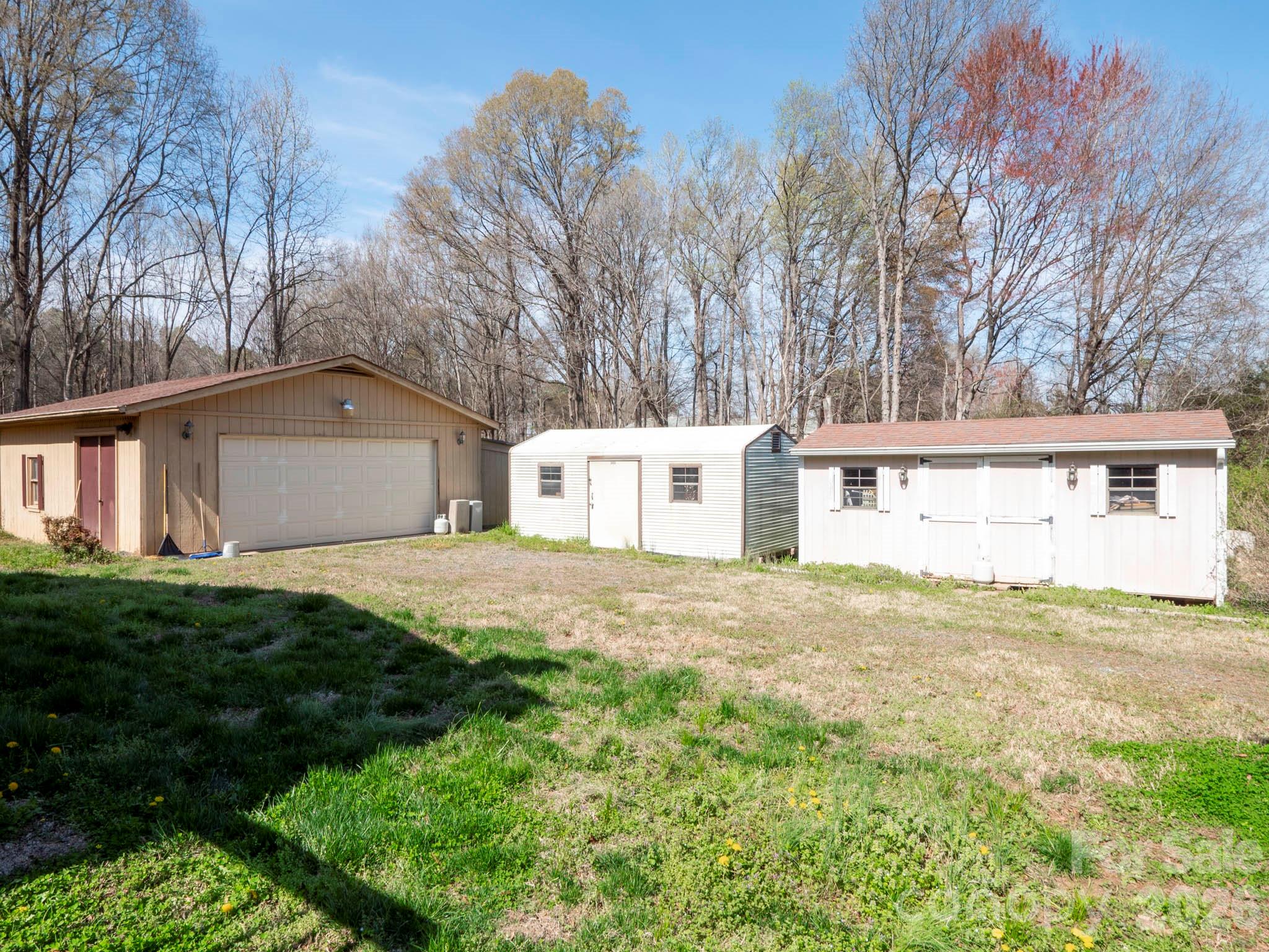 This brick ranch home with over 1800 sq. ft., offers 3 bedrooms, 3 full baths, a living room and den. Large eat in kitchen with lots of cabinets and space for a dining table. Home has a tankless water heater for 2 of the baths. Refrigerator replaced in 12/2024 as well as new cooktop, microwave and oven in 2024. Home has a dishwasher which may need repairs or be replaced (homeowner preferred not to use). Water throughout the home is all filtered and the drinking water has extra filter under sink. The water system is serviced quarterly for approximately $350 - $450. Laundry room with sink, 2 car open car porch and deck. Gutters were cleaned by Leaf filter in July 2025 and can be cleaned periodically by calling for approximately $100. Behind the house you will find a Detached garage/Workshop and 2 additional storage units where one can tinker for hours and store your outdoor equipment, bicycles and many other things. A standalone pergola sits next to the driveway. A must see to appreciate!