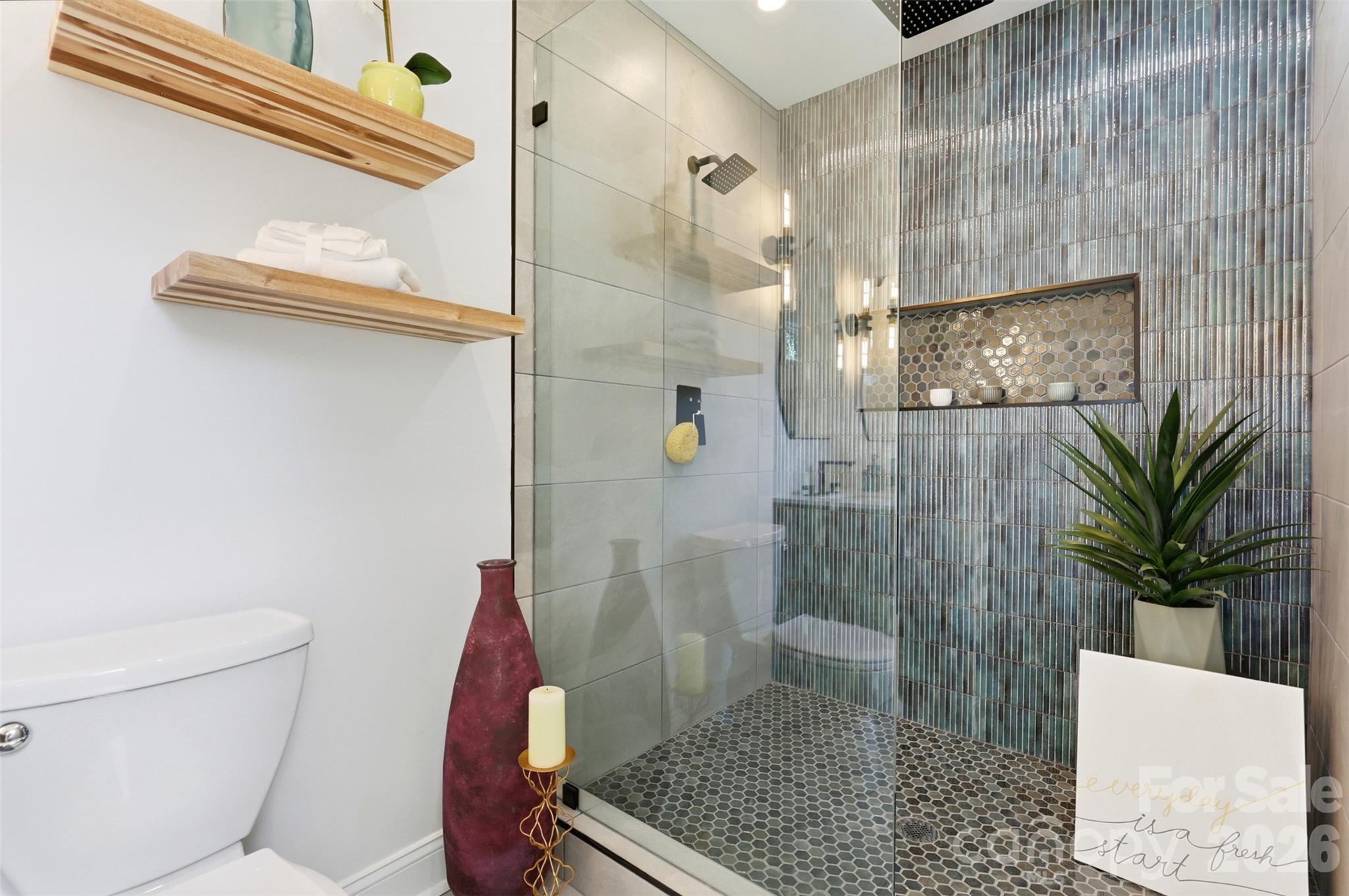 The new primary suite includes a spacious walk-in closet and a spectacular en-suite bathroom equipped with all the modern amenities you desire, including a luxurious rain shower.