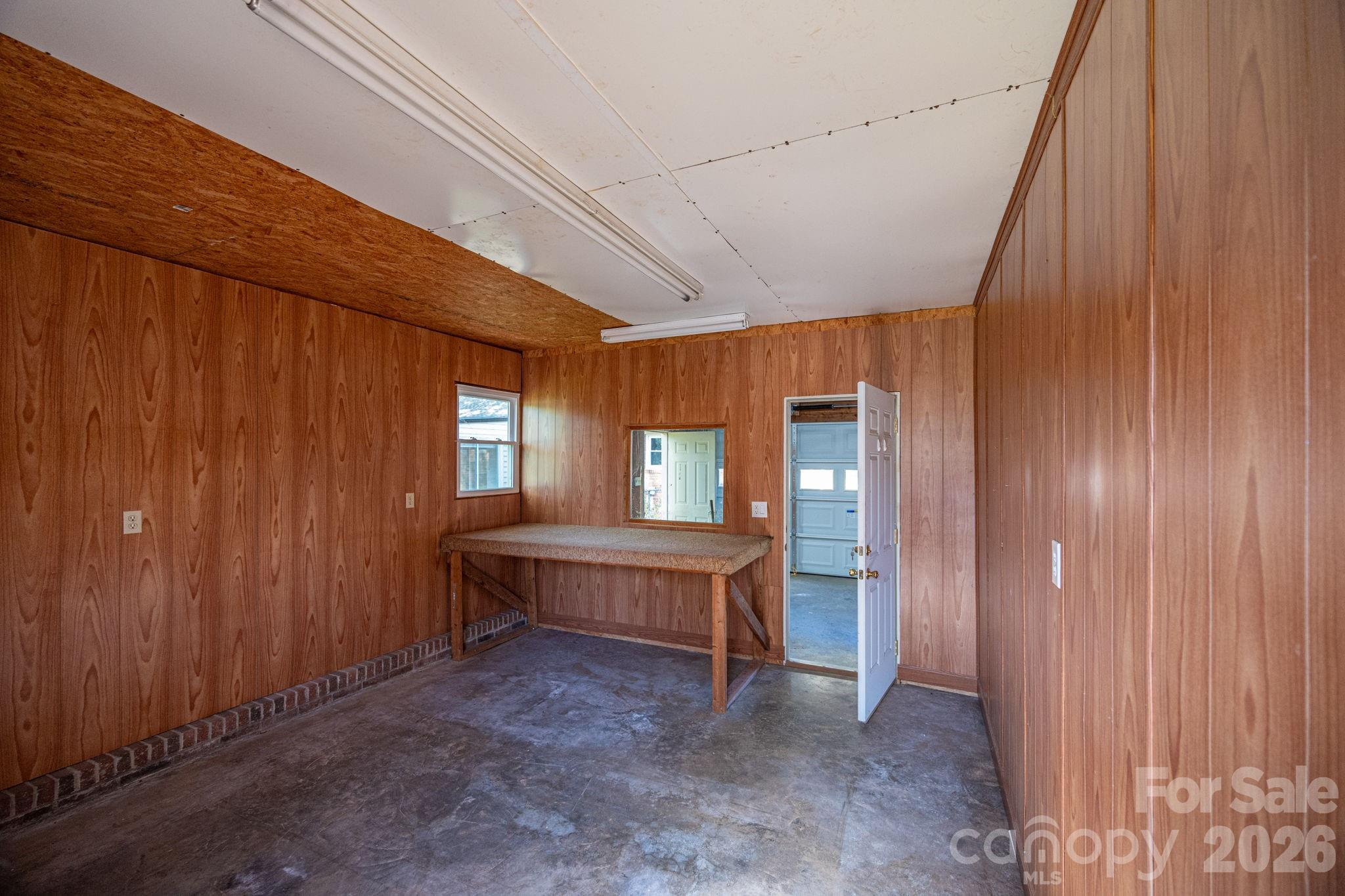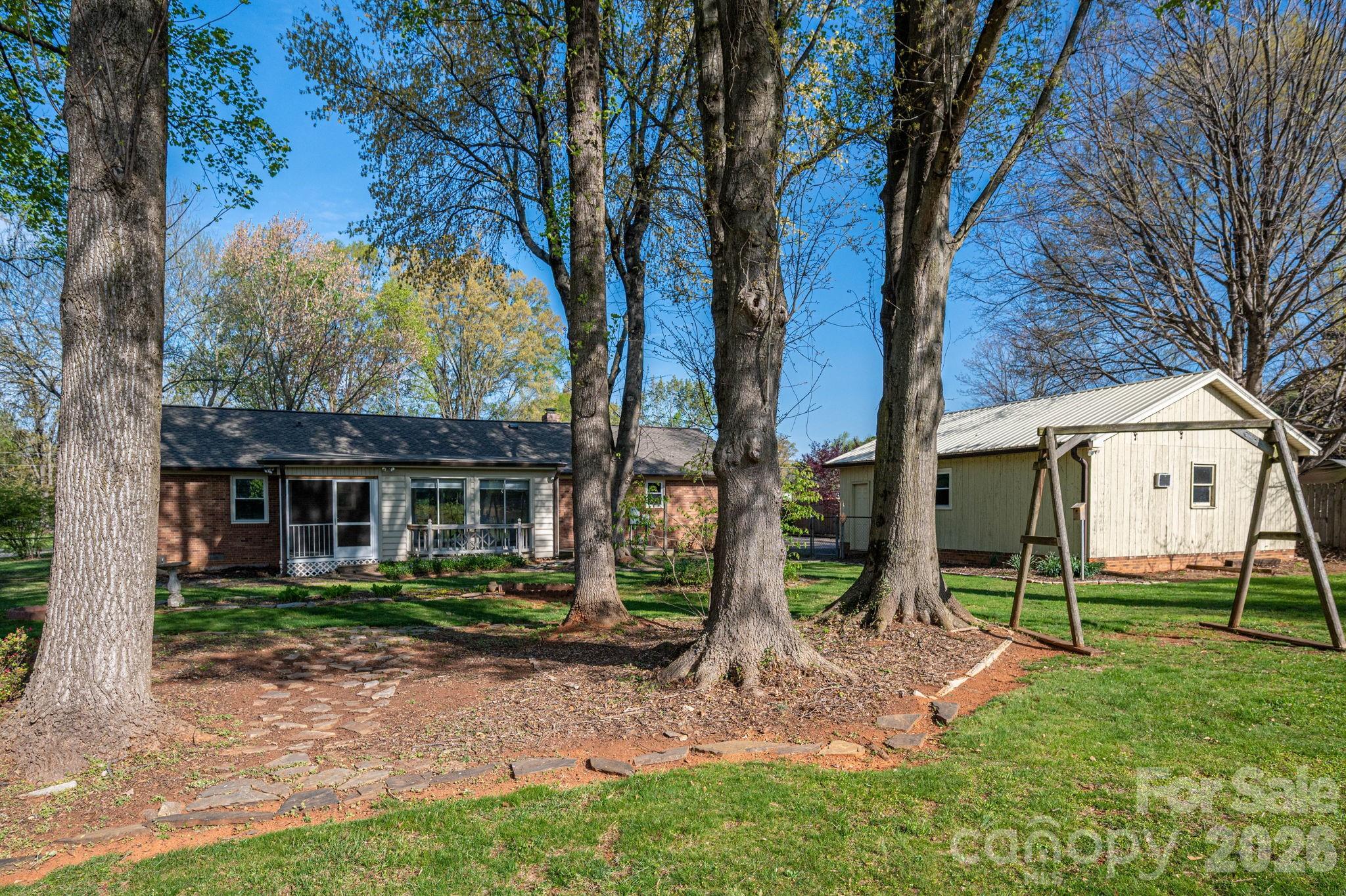 Welcome to this beautifully maintained brick ranch nestled on a spacious 0.47-acre lot in the heart of Charlotte! Built in 1984, this home has been meticulously cared for and thoughtfully updated, offering the perfect blend of classic charm and modern convenience. Step inside to find a warm and inviting living room featuring exposed wood beams and a cozy wood-burning fireplace—ideal for relaxing evenings at home. The kitchen is both functional and stylish, boasting granite countertops, tile backsplash, under-cabinet lighting, and convenient pullout shelving. A pantry with an added wash sink provides extra prep space and practicality. One of the standout features of this home is the heated tile sunroom, offering year-round enjoyment and additional living space filled with natural light. Just beyond, a screened porch overlooks the private, fenced backyard—perfect for entertaining, pets, or simply unwinding outdoors. Car enthusiasts, hobbyists, or those needing extra storage will love the rare combination of a 2-car attached garage plus a 2-car detached garage with workshop, along with a 12x14 outbuilding for even more flexibility. Additional highlights include a brand new roof (2024), city water for the home with well water connected to exterior spigots—helping keep utility costs down—and no HOA restrictions. Conveniently located just minutes from Uptown Charlotte, you’ll enjoy easy access to dining, shopping, and entertainment while still having the space and privacy of a larger lot. This is a rare opportunity to own a well-maintained home with exceptional features, space, and location—don’t miss it!