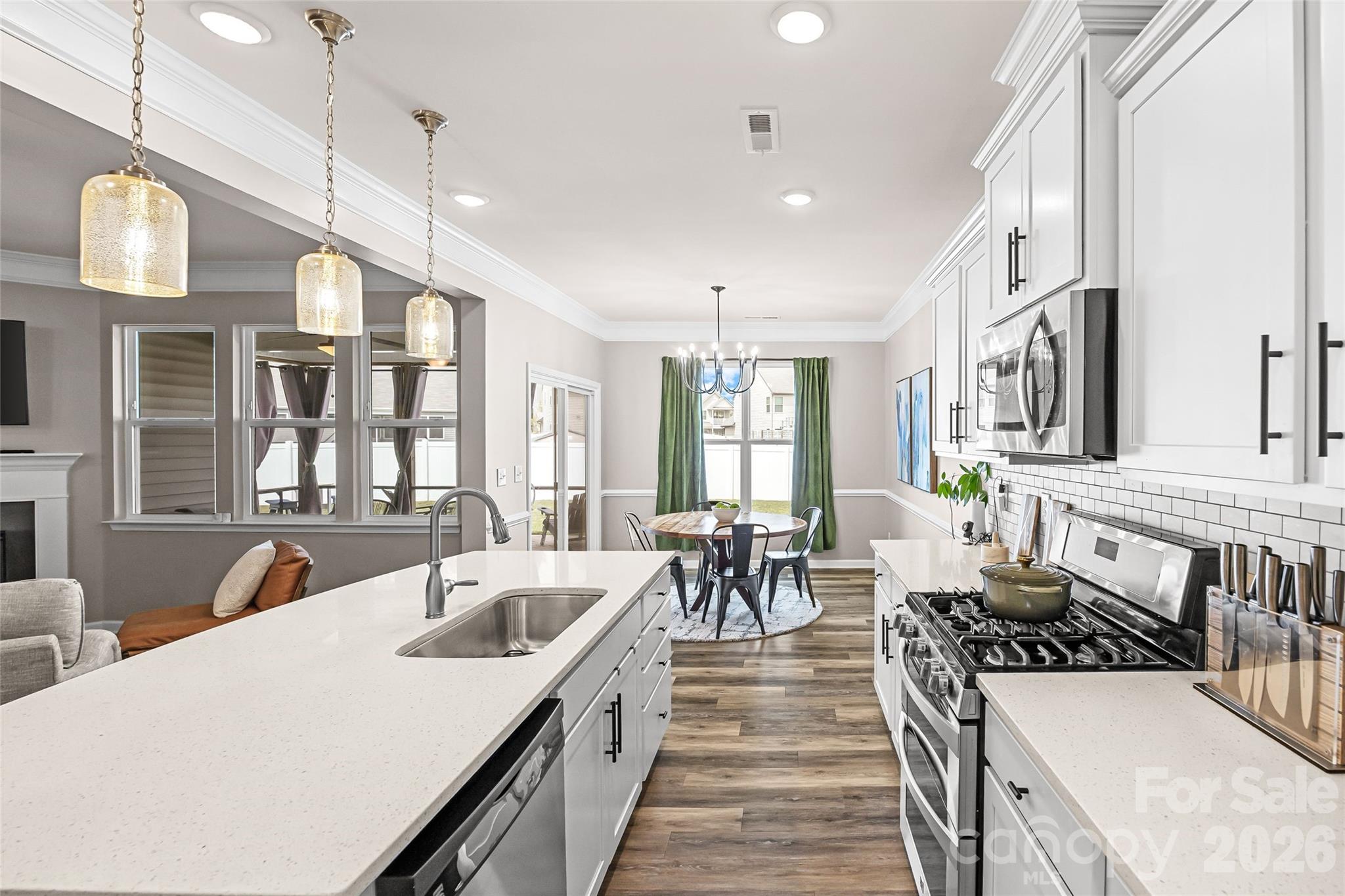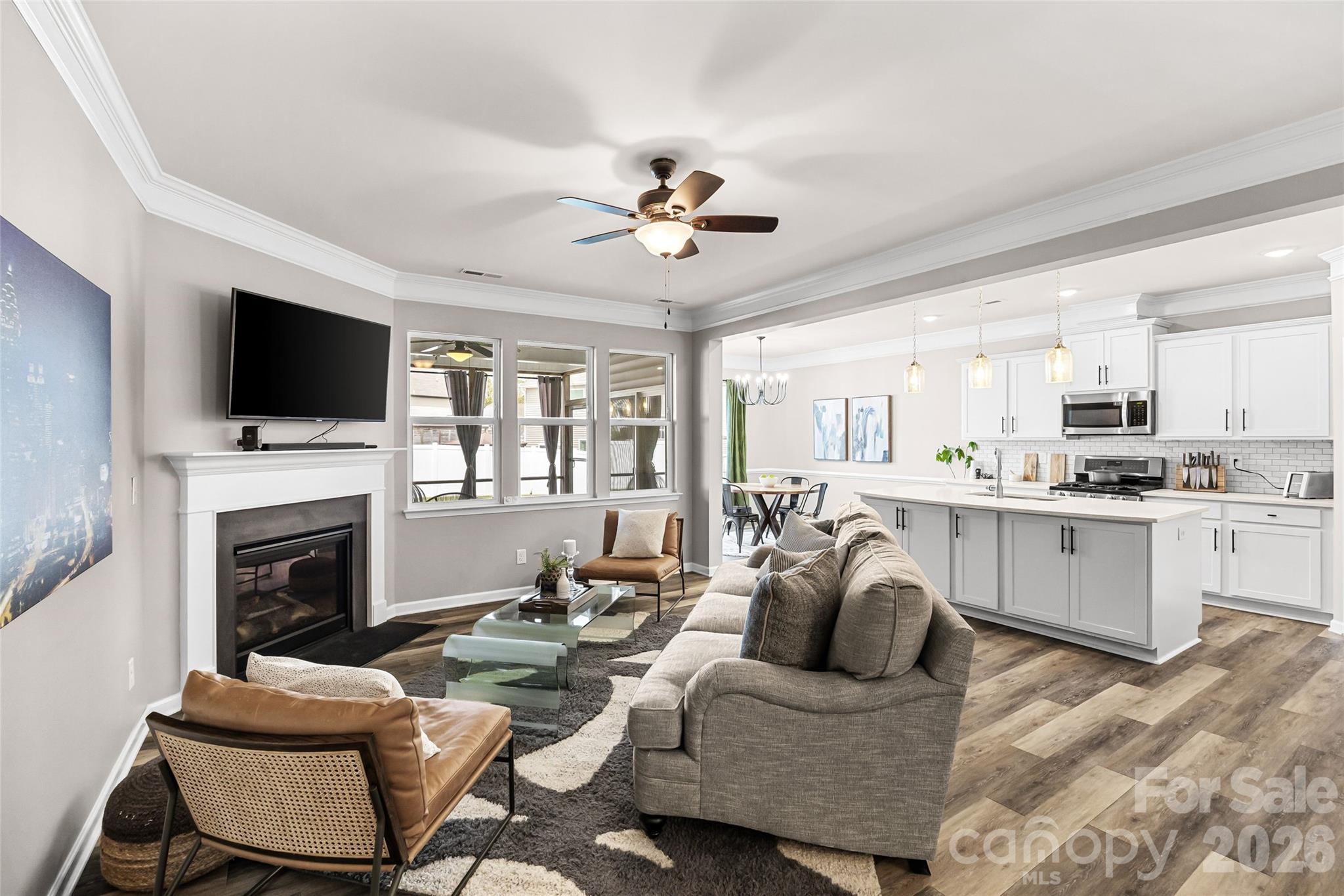 Experience the perfect blend of suburban comfort and city convenience in this beautifully designed 3-bedroom, 3-bath home located in desirable Rapids at Belmeade. Tucked just west of the city core, this Charlotte community offers a practical and well-connected location. With the nearby U.S. National Whitewater Center and the emerging River District, the area continues to see growth in outdoor recreation, shopping, and dining. Inside, an open floorplan creates an inviting space for both everyday living and entertaining. The stylish white kitchen is the heart of the home, featuring a huge island, subway tile backsplash, quartz countertops, and a walk-in pantry. It flows seamlessly into the great room with a gas log fireplace, while an atrium door provides easy access to the screened porch—perfect for indoor-outdoor living. Bright and sunny bedrooms offer comfortable retreats, including a spacious primary suite with a large bath featuring dual white vanities, a soaking tub, and an oversized shower. A second-floor bonus room adds flexibility for a home office, gym, or media space, while the third bedroom is ideal as a guest suite or private office. Additional highlights include crown molding, durable LVP flooring, an attached 2-car garage, and a dedicated laundry room with ample counter space. Enjoy outdoor living in the fully fenced backyard or relax on the screened porch. Perfectly positioned for a balanced lifestyle, this home offers quick access to I-77 and I-85, providing a seamless commute to Uptown while maintaining a sense of privacy and retreat. Adventure is just minutes away at the U.S. National Whitewater Center, a premier destination for outdoor activities, events, and year-round enjoyment.