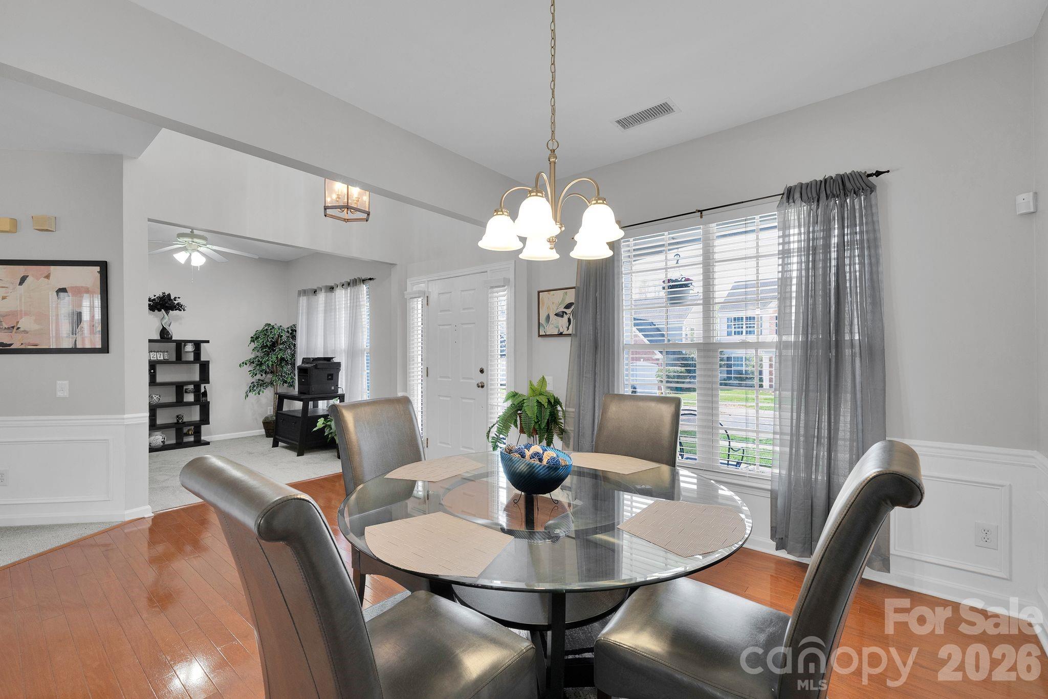 Step inside to find newly finished hardwood flooring, fresh updates throughout, and a versatile flex room on the main level—perfect for multiple uses. The light-filled layout features a dramatic two-story foyer and spacious living area with vaulted ceilings and a cozy gas fireplace, creating an inviting space for both everyday living and entertaining.