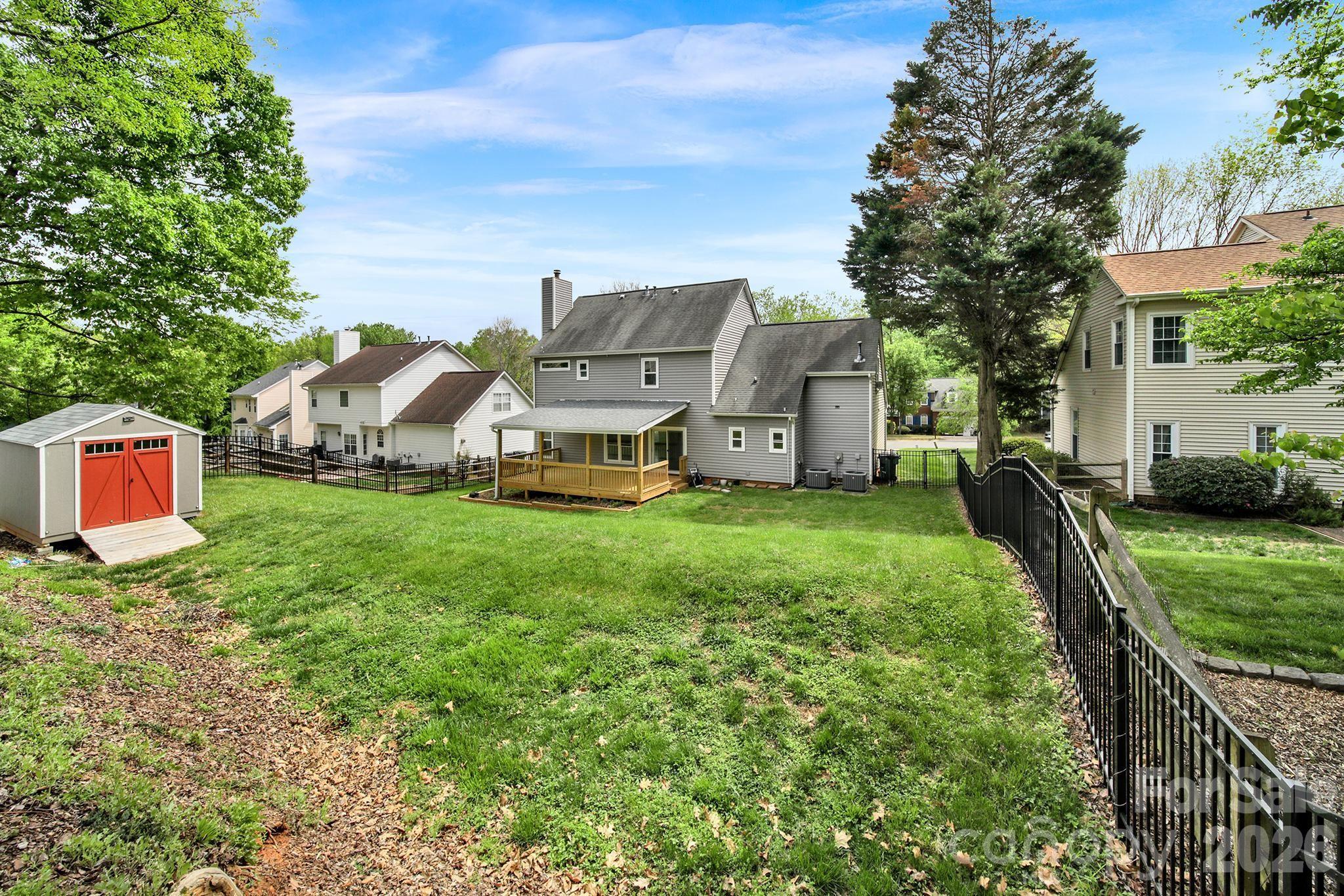 Welcome to this beautifully updated 4-bedroom, 2.5-bath home in the sought-after Wellington community—where comfort, style, and convenience come together. Step inside to an inviting open floor plan on the main level, featuring durable LVP flooring and a versatile layout designed for everyday living and entertaining. The main floor includes a formal dining room, a flexible formal living room or home office, a spacious living room, and a bright kitchen with an eat-in area. A convenient half bath and a laundry/mud room just off the 2-car garage add to the home’s functionality. Enjoy outdoor living at its best with a large covered deck just off the kitchen—perfect for relaxing or hosting gatherings—overlooking a fully fenced backyard complete with an additional storage unit. Upstairs, retreat to the spacious primary suite featuring a beautifully updated ensuite bathroom with a large marble shower, tile flooring, double vanity, and a custom walk-in closet. Three additional bedrooms and a full guest bathroom provide plenty of space for family or guests. Major updates offer peace of mind, including HVAC systems replaced in 2022/2023, as well as updated windows, doors, and siding. Residents of Wellington enjoy fantastic community amenities, including a pool, tennis courts, and a playground. Ideally located just minutes from I-85, I-485, and I-77, with easy access to Northlake Mall, grocery stores, and a variety of dining options. Don’t miss out on this amazing home!