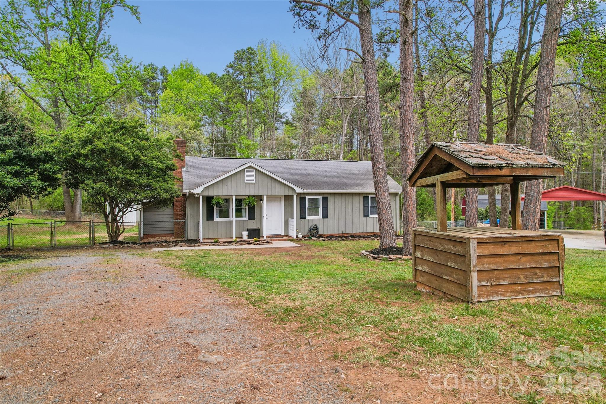 Welcome home to this charming ranch home nestled in the end of a quiet cul-de-sac lot. Close to all the amenities in Mint Hill, as well as 485, making your commute a breeze. Walk up to the inviting front porch, and step in to the open living room featuring vaulted ceilings and a wood burning fireplace. To the right, you’ll find the primary and secondary bedrooms, as well as the full bath and laundry. The kitchen features updated appliances and recently redone pantry. The converted sunroom/3 season room is currently being used as a mudroom and office space. Out back you’ll find a spacious, newly renovated deck overlooking a large, private fenced in lot. New gravel just delivered for the driveway and septic was pumped 3/6. No HOA, investors welcome!