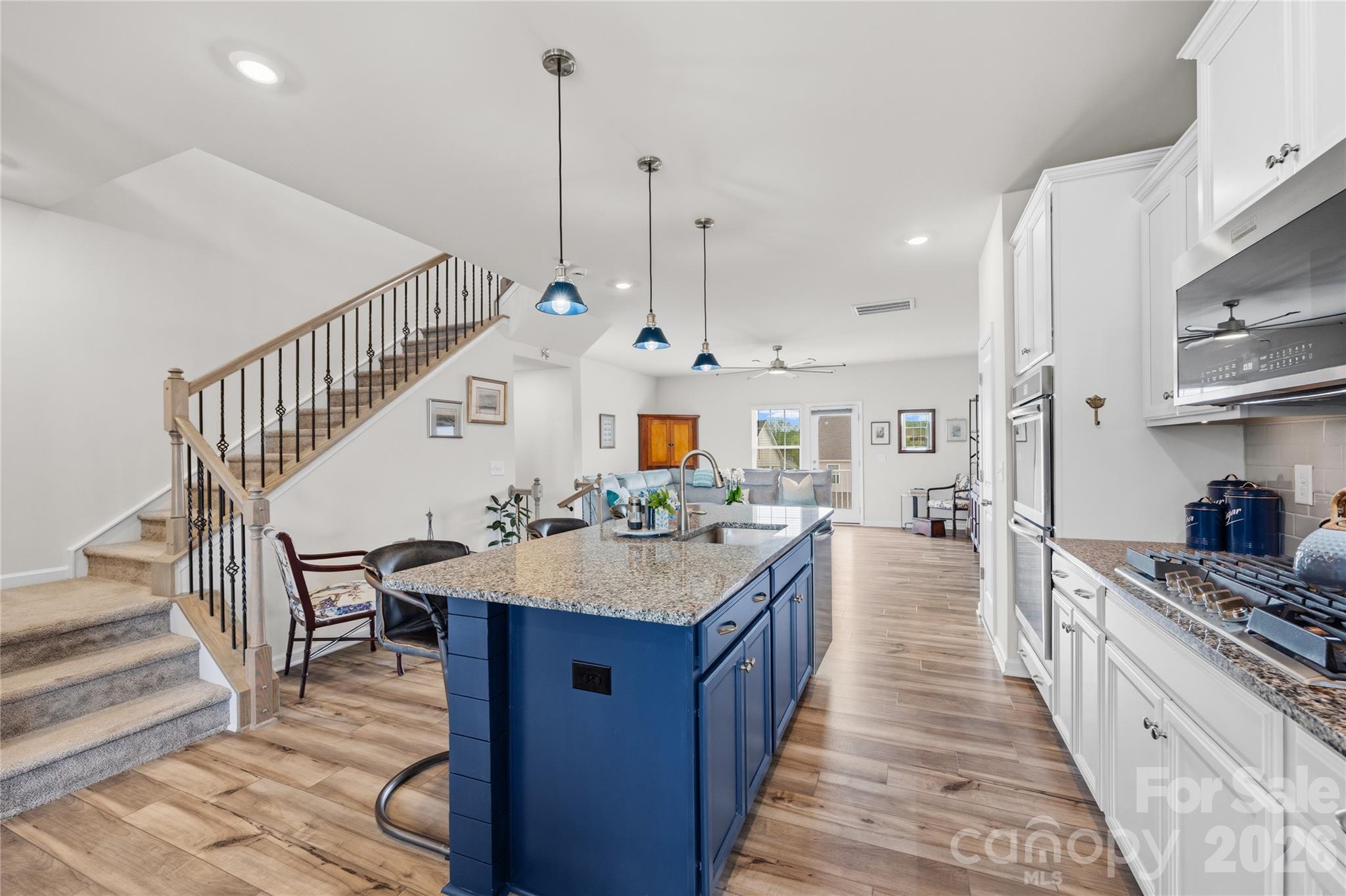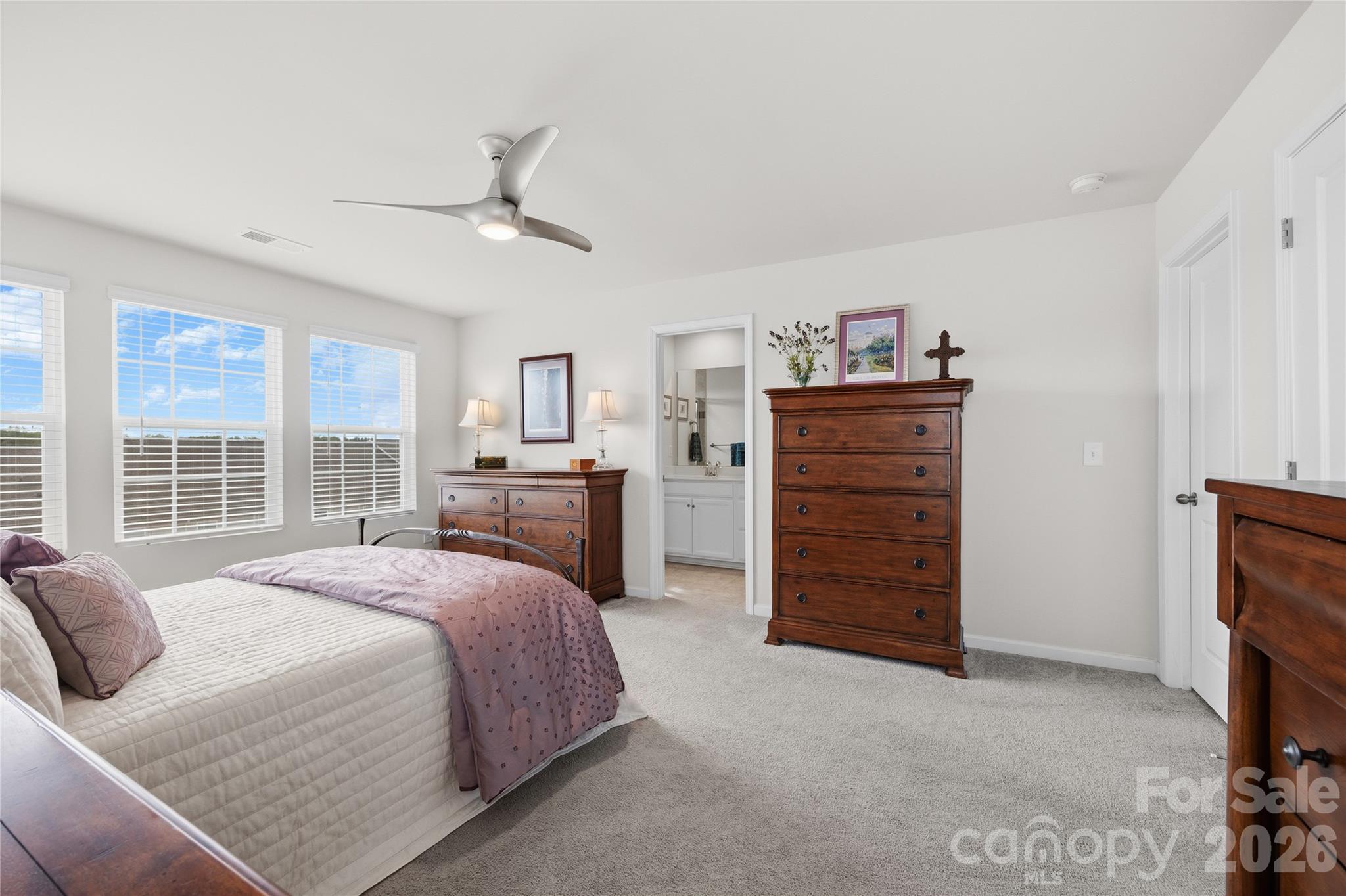 END UNIT - Better than new and ideally positioned near the amenities in the Elizabeth subdivision of Fort Mill. This 3-level townhome offers added privacy, extra natural light, and thoughtful upgrades throughout. The main level features a private bedroom with a full bath, perfect for guests or a home office. Upstairs, the open-concept living area includes a spacious family room, dining area, and a well-appointed kitchen with granite countertops, gas range, self-clean double oven, breakfast bar, soft-close drawers, large pantry, and under-cabinet lighting. Step out onto the balcony for fresh air with two outdoor storage closets. The upper level offers a large primary suite with a custom walk-in closet and a beautifully finished en-suite with double sinks, a tiled walk-in shower with a seat, and a private water closet. An additional bedroom, full bath, and a loft area provide flexible space for work or relaxation. Upgrades include a custom Closets by Design system in the primary bedroom, wood blinds throughout, added shiplap detail, and decorative iron corbels at the kitchen island. Laundry area features added cabinetry and a convenient drying rack. See Post Builder Updates for a complete list of upgrades. Located close to shopping, dining, and major routes, this home combines style, function, and low-maintenance living in one of Fort Mill’s desirable communities. Community amenities include a clubhouse, fitness center, outdoor pool, sports courts, sidewalks, streetlights, and walking trails.