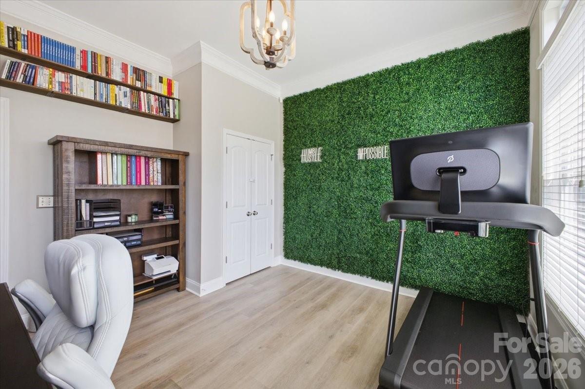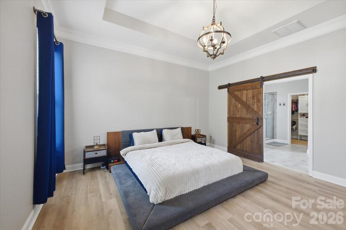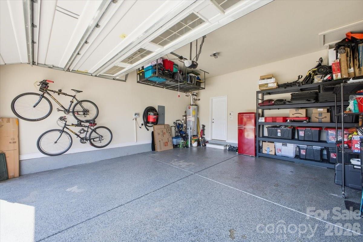 The spacious primary suite offers a stylish retreat with a barn door entry into the bathroom. Additional upgrades include improved lighting in the gym and bedrooms, plus added garage ceiling shelving for extra storage. A hot tub hookup is already installed, making the backyard ready for your future outdoor oasis.