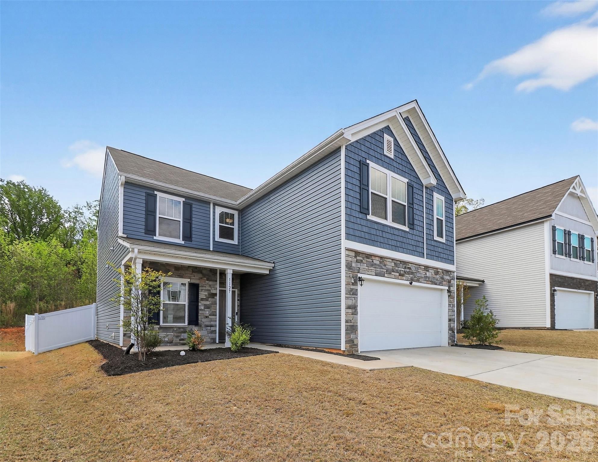 Move-in Ready, nearly-new home, built in 2023. Motivated Seller! This home is perfect for entertaining, with its open floor plan. Upon entering you will come across a comfortable office with double doors. Kitchen includes granite countertops, a generous island, subway tile backsplash, and plenty of cabinets! Step outside to enjoy the fully fenced backyard which includes a very large patio area. Upstairs you will find 3 spacious bedrooms, a loft and an oversized laundry room. Location is 25 miles to the corner of Trade & Tryon in Charlotte, NC.