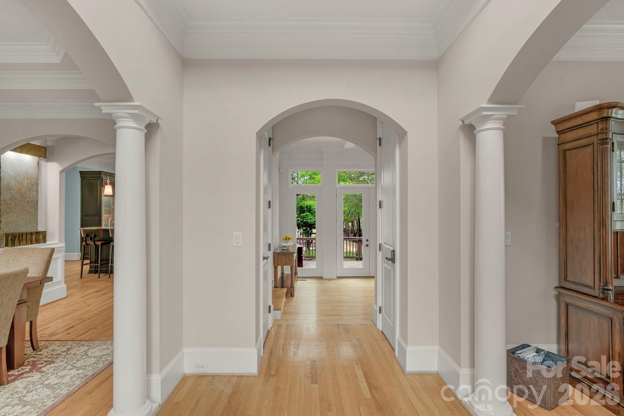 Welcome to 4017 Beechwood Spring Lane, a stunning two-story estate perched at the highest point of the prestigious gated community of Reflection Pointe. This 4-bedroom home sits on a sprawling 1.14-acre lot, offering rare lake views from both the front and the expansive, fenced backyard. The grounds provide a perfect canvas for a growing family, featuring a large, level lawn with ample space for a future in-ground pool. From the moment you enter the two-story foyer, the home impresses with elegant details and modern conveniences, including a comprehensive whole-home speaker system that sets the mood for every room. The main level flows effortlessly from the formal dining room with tiered ceilings and French doors to a sun-drenched study that captures tranquil water views.