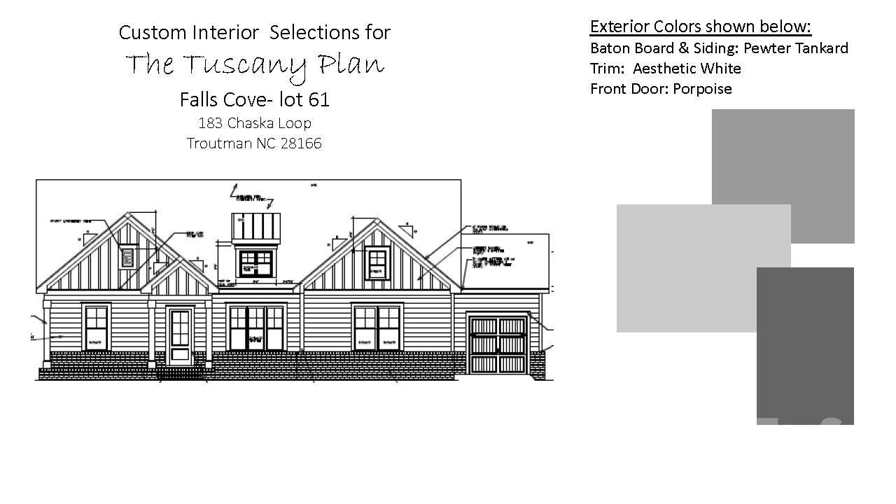 New construction in beautiful , sought-after Falls Cove neighborhood in Troutman. The Tuscany floorplan is custom designed to flow nicely for entertaining & everyday living. The main level features the Luxury Primary Suite that will not disappoint. Plus, a second bedroom suite also on the main level. Gourmet Kitchen with High End Appliances, large island & huge walk-in pantry. A chef's delight with designer touches like stunning cabinets to the ceiling. All flows effortlessly to the dining area & great room with Fireplace & custom built-ins. Then out to the Rear Covered Porch & Open deck area for grilling. A drop zone is just inside the 2-Car Garage Entrance. Large Laundry Room has access to the 3rd Car Garage. The Terrace level has 2 more oversized bedroom Suites and a Large Rec Room/Media Room. Plus, lots of extra storage. Private, Wooded backyard that backs up to HOA-Owned wooded common area for additional privacy. Lots of designer upgrades planned throughout this unique & livable floorplan.
