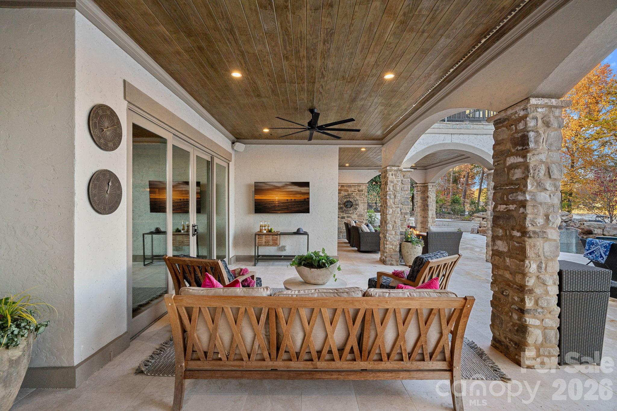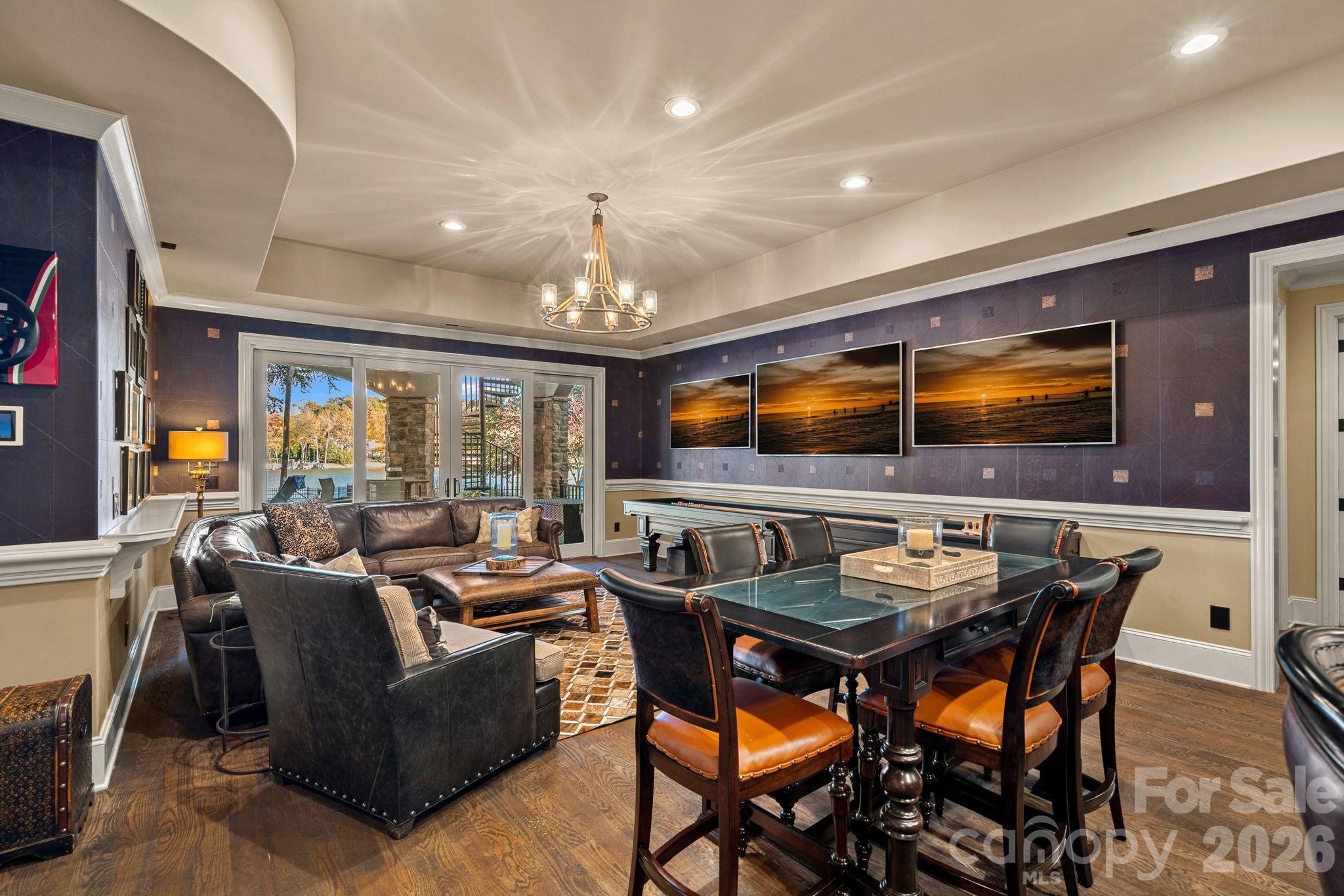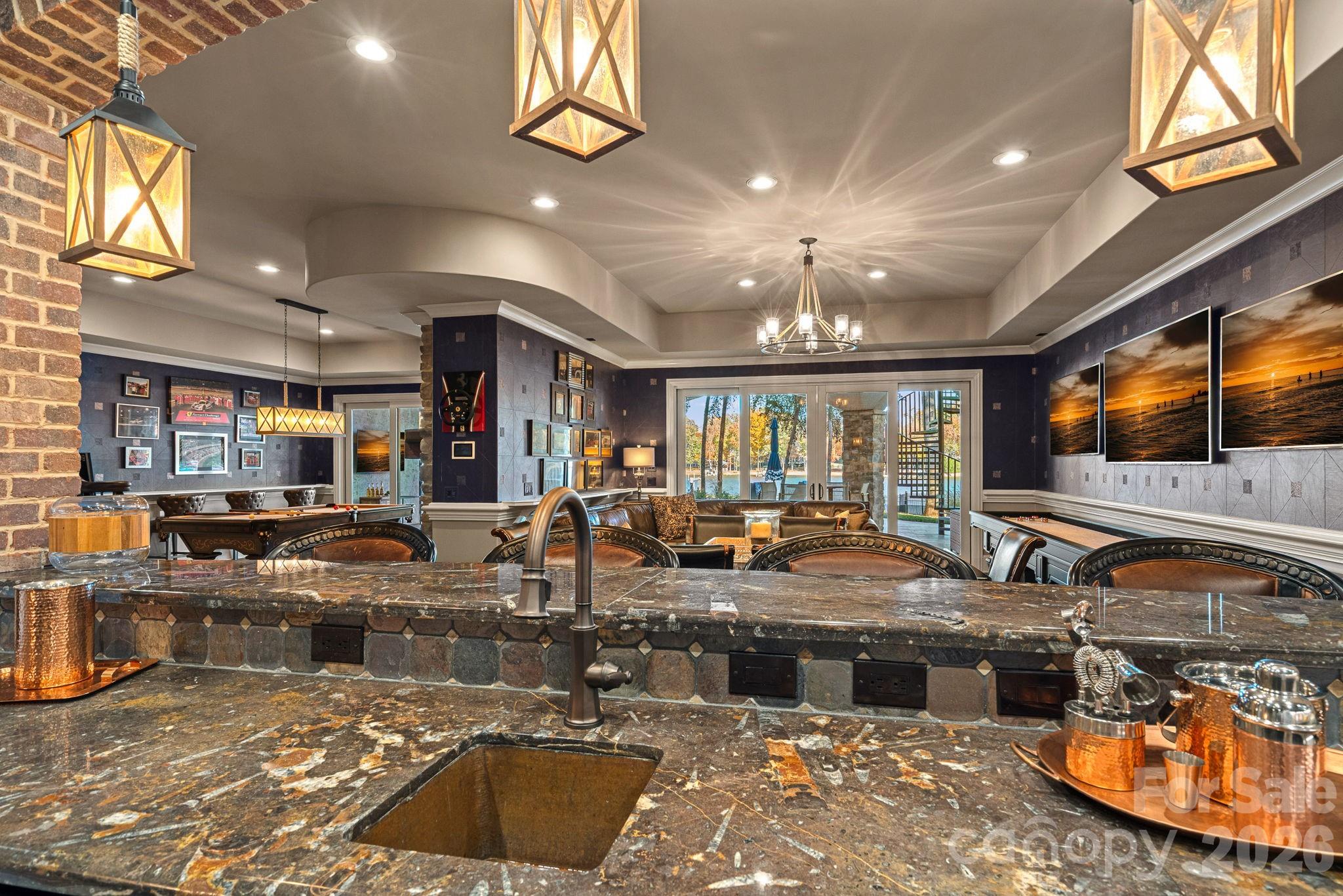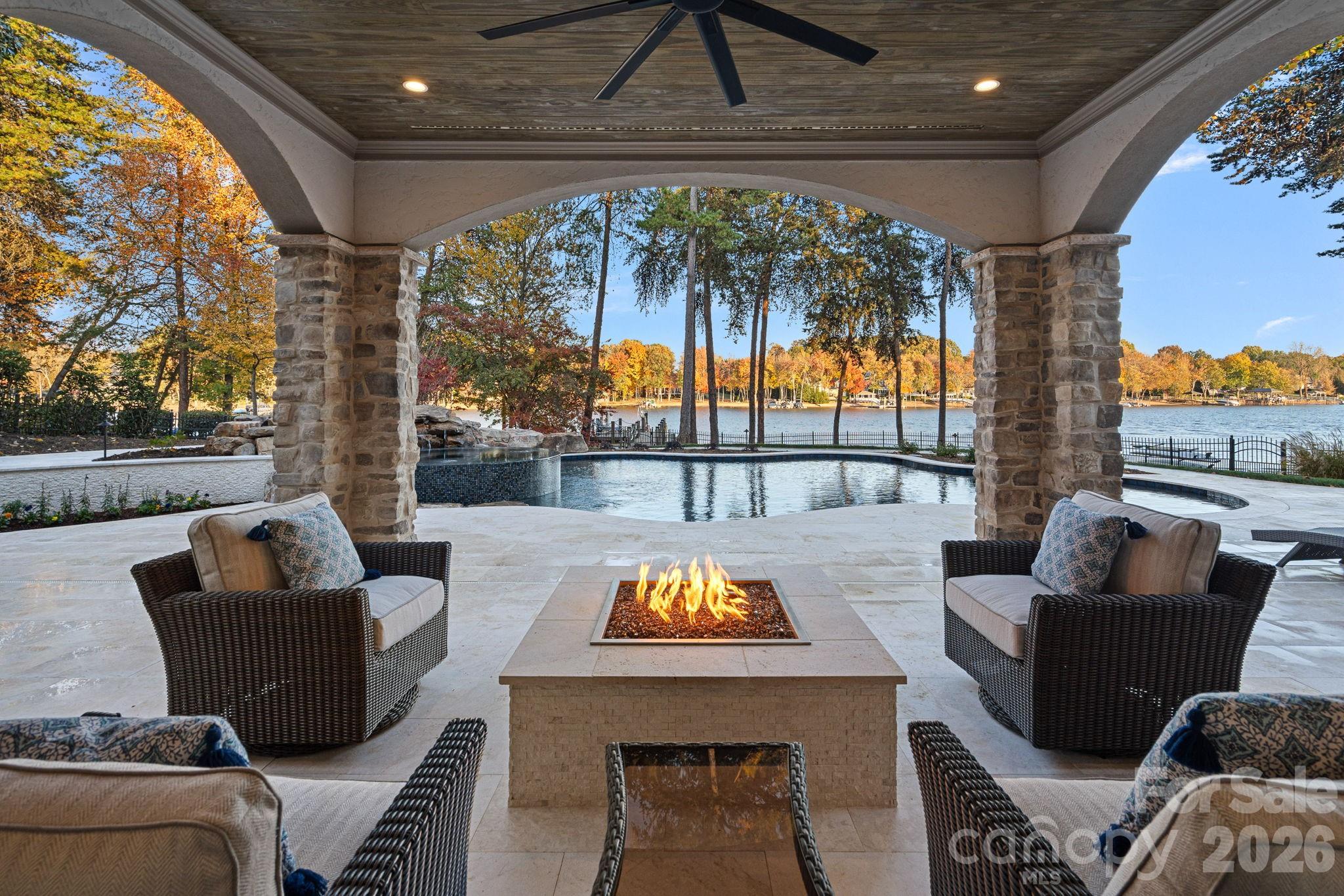 Outdoors, the newly redone saltwater pool is perfectly positioned to capture the beauty of the lake, while the private dock with boat lift and dual PWC lifts completes the waterfront experience.