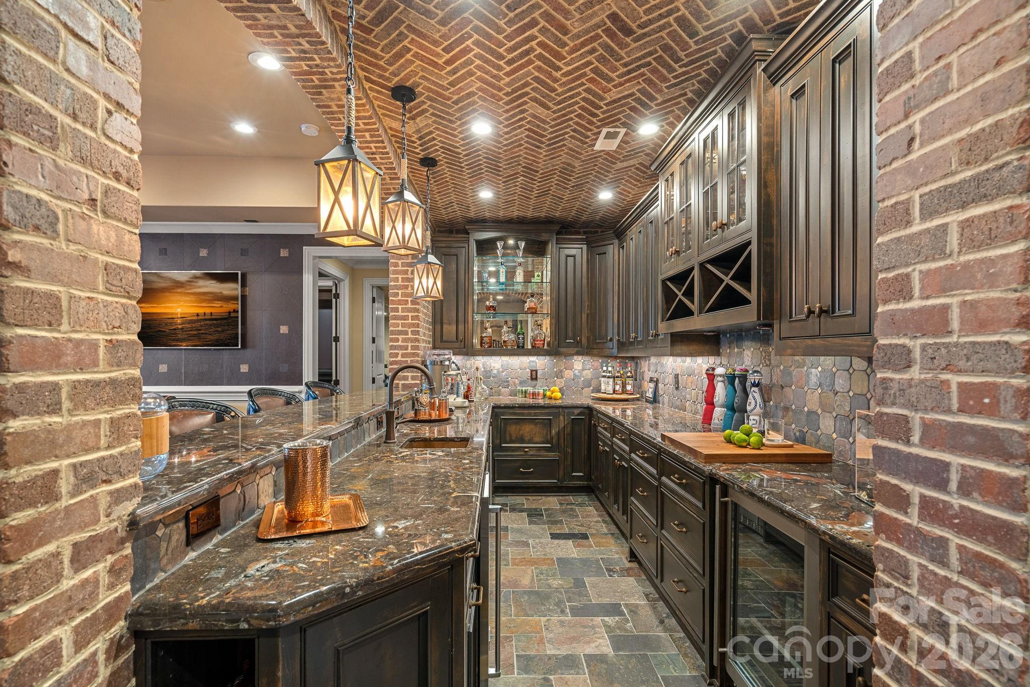 Designed for elevated living and unforgettable entertaining, the lower level is a destination of its own—featuring a full bar and entertainment space, private theater room, additional game room, fitness center, and a full bath serving as a convenient pool bath. A beautifully designed wine room evokes the experience of a private vineyard, introduced by a stone-lined hallway that sets the tone before opening into the cellar itself. An additional bonus room/bedroom offers flexibility for guests or extended stays.
