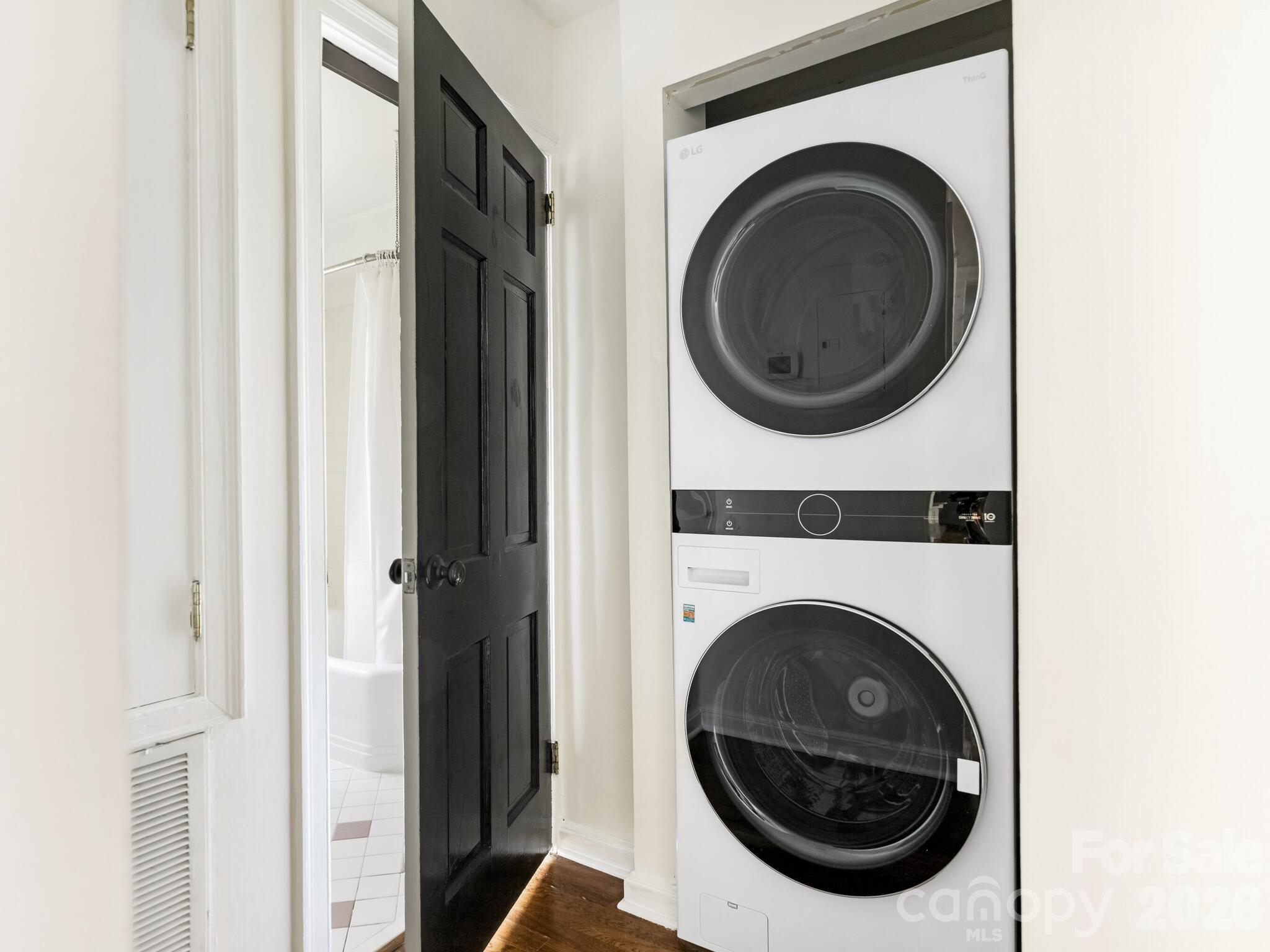 Charming second -floor condo in the sought after Alson Court community in Eastover. This light -filled unit overlooks tree lined streets of Colville and Fenton, as well as a beautifully maintained courtyard, creating a serene and picturesque setting. A welcoming foyer leads into a freshly painted interior featuring an open concept living and dining area. Perfect for both relaxing and entertaining. The updated kitchen includes a new dishwasher and thoughtful finishes, while hardwood floors throughout and tile in the bathrooms add timeless appeal. The home offers two comfortable bedrooms, a stacked washer and dryer for convenience, and a reglazed tub for a fresh, clean feel. Ideally located within walking distance to shops, restaurants and the Mint Museum, this condo provides easy access to Uptown, major highways and the airport. Nestled in a sidewalk lined neighborhood, it's perfect for enjoying walks and the elegance of Eastover.
