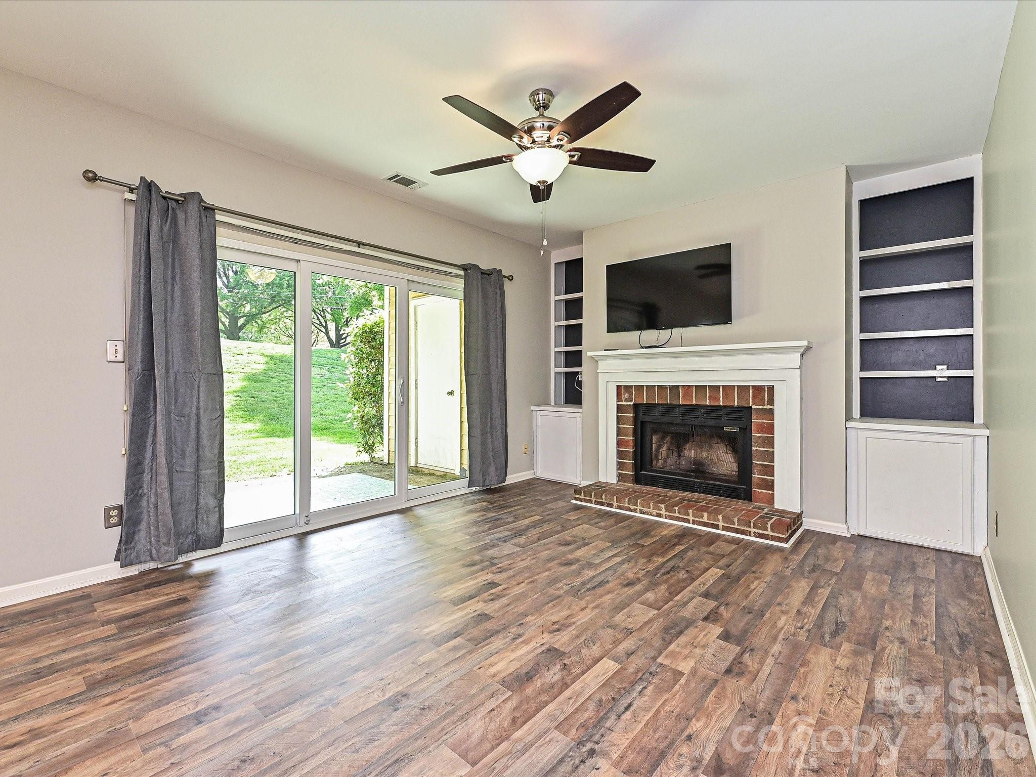 This is it! The move-in ready ground floor, one level condo you've been waiting for. With new flooring, fresh paint, new windows, new sliding glass door, new carpet, updated vanity, and updated light fixtures -- this charming condo offers the best of both worlds: tranquil neighborhood living just minutes from South End, Uptown, Park Road Shopping Center, and more. The layout is ideal with the spacious bedroom - complete with walk-in closet - connecting conveniently to the bathroom, which features dual access from the bedroom and the hallway. Across the entry hall, you'll find a coat closet and a true laundry room with shelving providing additional storage. The kitchen flows nto the dining and living areas, where built-ins and a cozy fireplace add charm and character. From there, sliding glass doors open to a covered patio, perfect for enjoying fresh air on sunny spring days. The community pool is perfect for a refreshing dip on the hot summer days. With no rental cap, this property is a fantastic opportunity for homeowners and investors. Don't miss your chance to own this wonderful condo in one of Charlotte's most coveted locations.