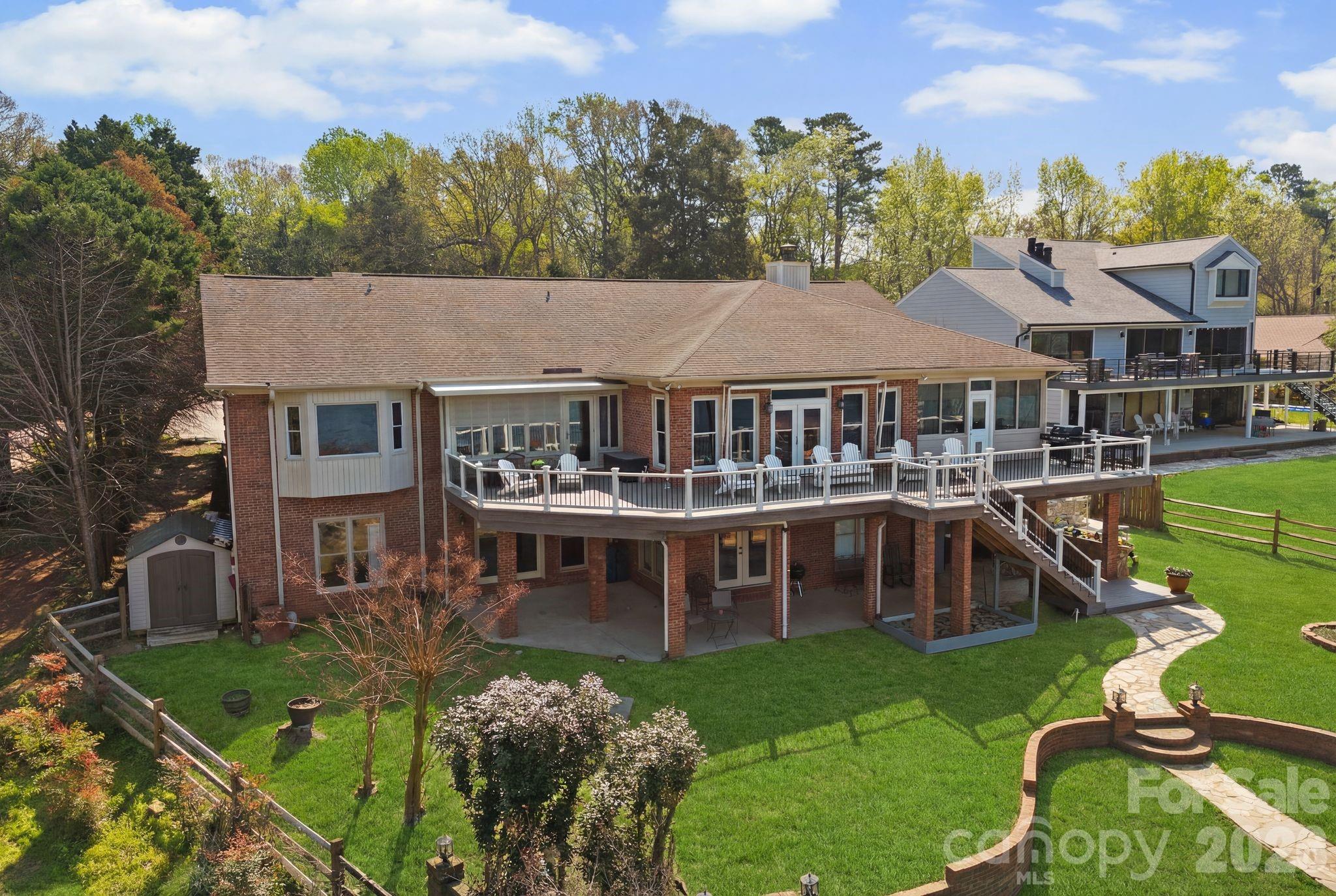 A rare stretch of shoreline where the home and the water are fully connected. Some properties capture a view. This one is built around it. From the moment you enter, the lake is the focal point. Expansive windows draw the water into the home, carrying natural light through the main living spaces and creating a constant visual connection that never feels secondary. Nearly every room is oriented to the view, so the lake becomes part of the experience whether you are moving through the home or simply spending time in it. Set on a gently sloping 0.67 acre lot with nearly 5,000 square feet, the home and land work together in a way that feels intentional. The transition from inside to outside is effortless. Living spaces open toward the deck, and from there the property continues outward, moving naturally through terraced lawn and gathering areas down to the shoreline. The outdoor spaces mirror the home in how they are used. The main deck offers a wide, elevated perspective over the water, while the lower terrace and fire pit create a more grounded, relaxed setting closer to the lake. Each space feels connected, but with its own purpose. At the water’s edge, a private sandy beach and centered dock complete the setting. It is a rare combination of usability and presence, where the shoreline is easy to access and the water is something you engage with daily, not just something you look at. What adds another layer to the lifestyle is the proximity to Copperhead Island, located just outside the entrance to the community. Connected to the McDowell Nature Preserve trail system, it offers an easy extension of the property for walking, exploring, or simply stepping into a quieter natural setting. Throughout the home and property, everything ties back to the same idea. The water is not separate from the living space. It is integrated into it, shaping how the home feels, how it functions, and how time is spent here.