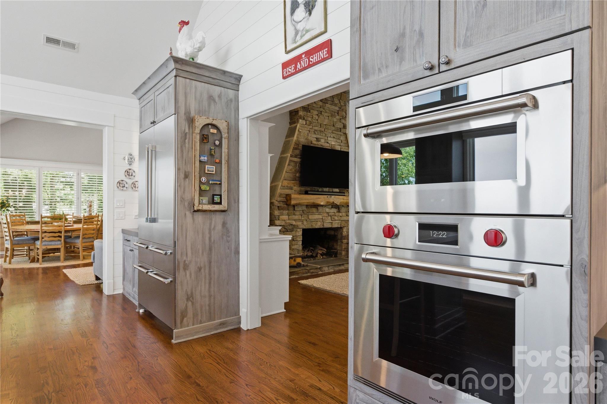 - Newly remodeled gourmet kitchen (2025) with marble counters, ROHL sink, center island with plenty seating, huge walk-in pantry, and professional-grade appliances, including Wolf gas cooktop and Wolf steam oven and convection oven, and a Thermador refrigerator