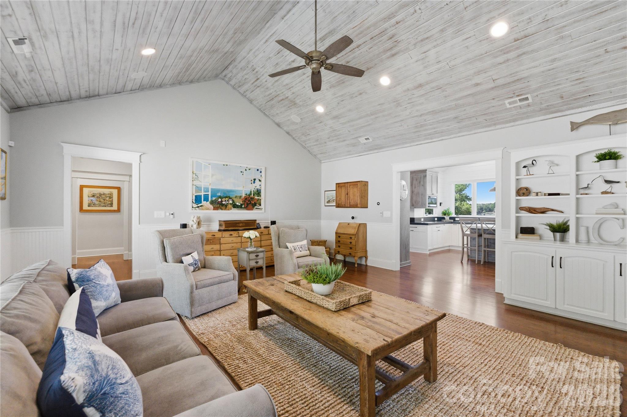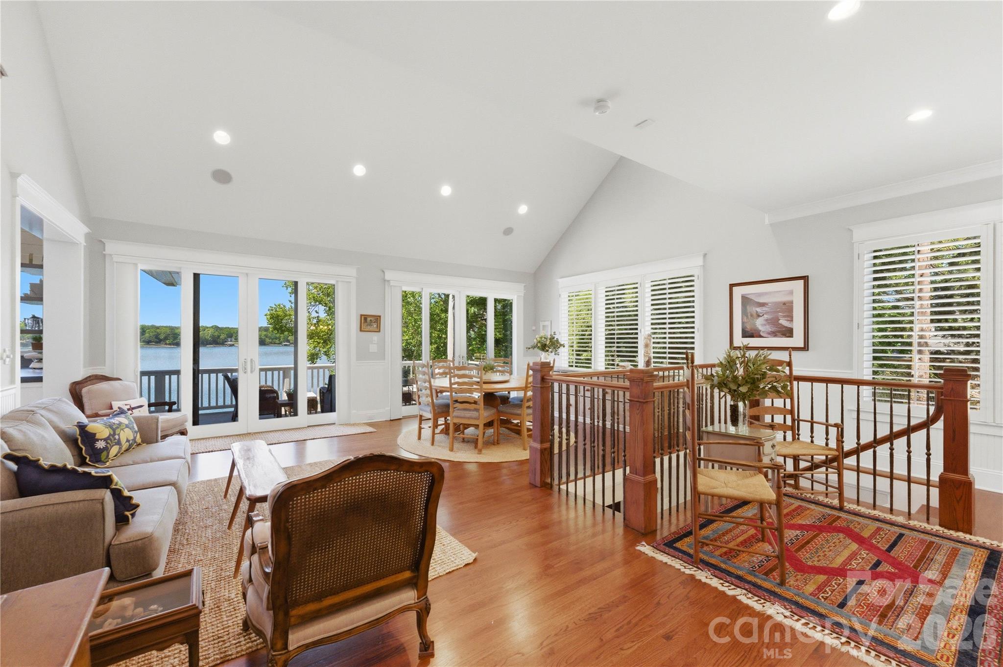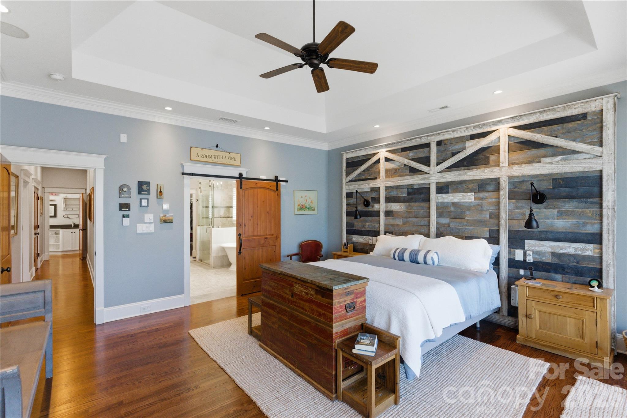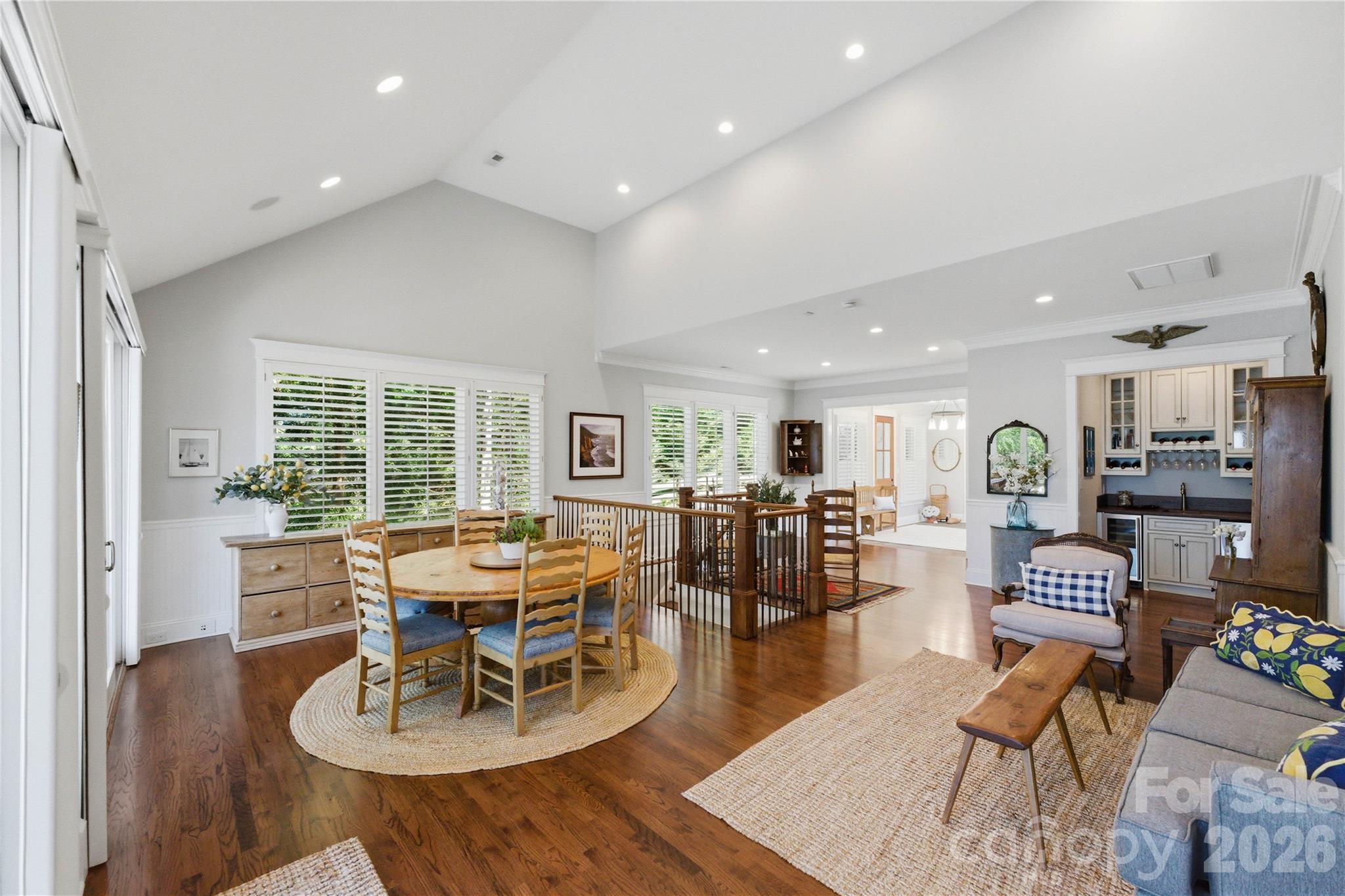 - Beautiful wood floors, vaulted ceilings, rich molding, plantation shutters, barn doors