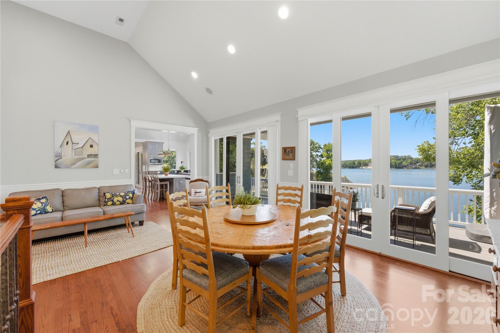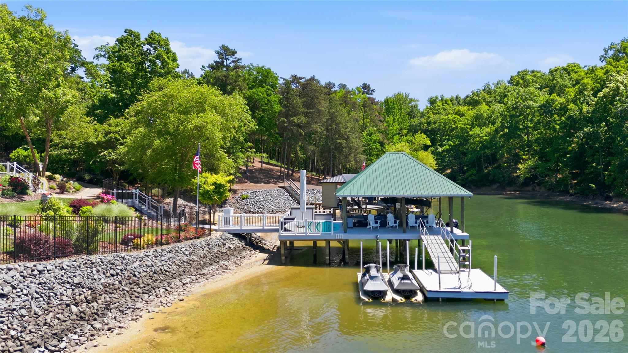 An exceptional gated waterfront estate set on a private 1.35-acre homesite along Lake Wylie’s sought-after main channel, showcasing stunning sunset views and an atmosphere of refined, effortless luxury. Thoughtfully designed with timeless craftsmanship and modern sophistication, this residence captures panoramic water views from nearly every room. The main living spaces are both grand and inviting, defined by soaring vaulted ceilings, rich architectural detailing, and seamless indoor-outdoor flow. A beautifully appointed great room with custom built-ins and fireplace flows seamlessly into the chef’s kitchen, newly updated in 2026—an elegant yet highly functional space featuring marble countertops, an oversized island, walk-in pantry, and a full suite of professional-grade appliances, including a Wolf gas cooktop, steam oven, and Thermador refrigerator. Refined entertaining continues in the formal living and dining rooms, complete with a wet bar—ideal for intimate gatherings or elevated hosting. The primary suite serves as a private sanctuary, offering dual custom closets, a spa-caliber bath with heated floors, and the convenience of an adjoining laundry. The lower level is designed for both relaxation and hosting, featuring an expansive recreation room, a warm and inviting den with wet bar and direct access to the pool and patio. Three additional bedrooms each with an ensuite bathroom are elegantly appointed for comfort and privacy. There is even a secondary laundry space for guests and pool towels. A spacious three car garage also features tons of storage above. Outdoors, the property transforms into a true resort-style retreat. A sprawling composite deck, covered terrace, and meticulously landscaped grounds surround a saltwater pool and spa, creating an atmosphere of serene leisure. The private covered dock with boat lift provides immediate access to the lake, completing this rare offering. A distinguished waterfront residence just moments from Charlotte, delivering an unparalleled blend of privacy, design, and lakefront living.