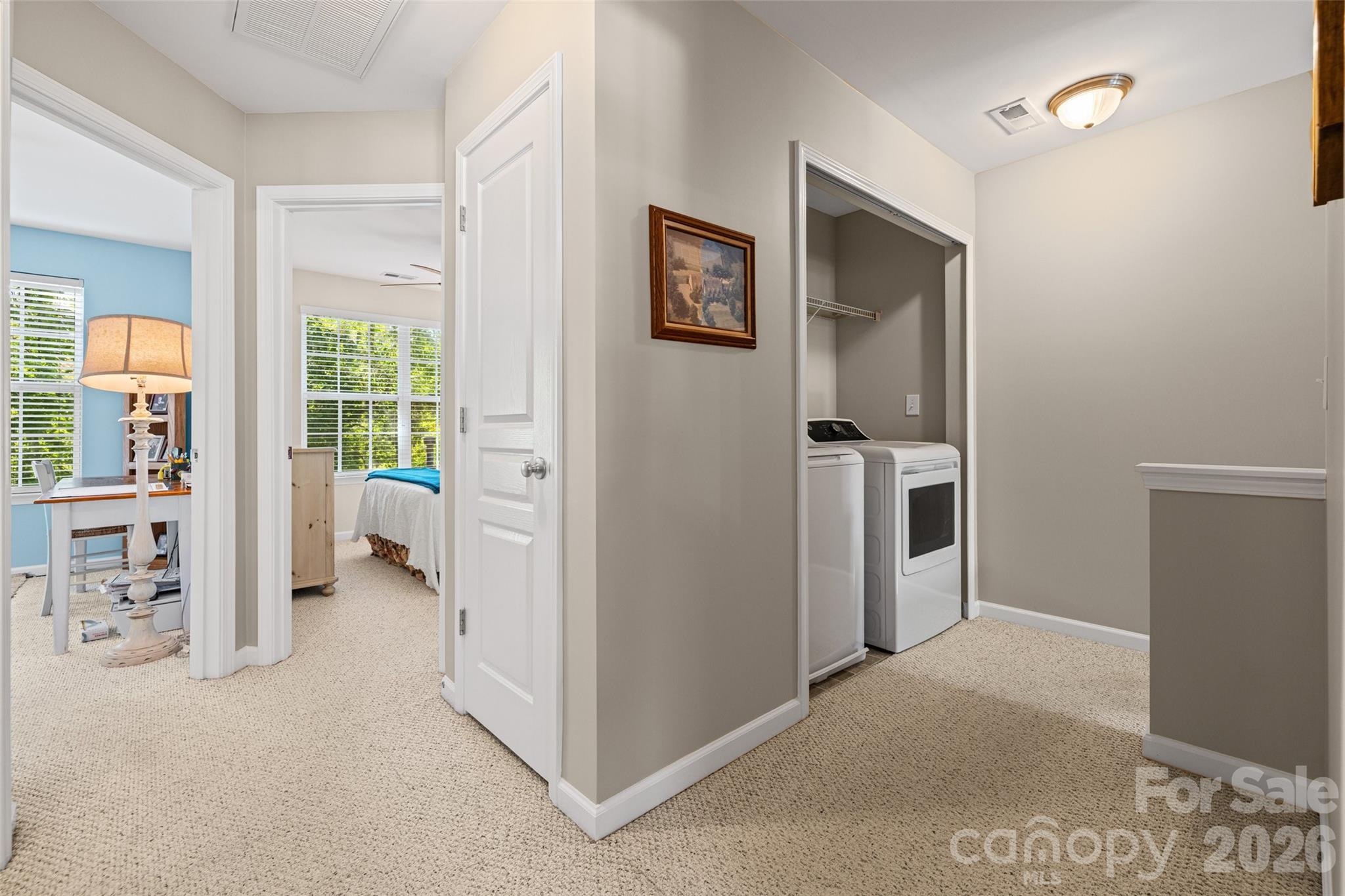 Upstairs, you’ll find the primary suite complete with a walk-in closet, vaulted ceilings, and a private en-suite bath with a walk-in shower. Two additional generously sized bedrooms offer plenty of closet space and provide a comfortable retreat at the end of the day. A full bath and laundry room are also located on the second floor.