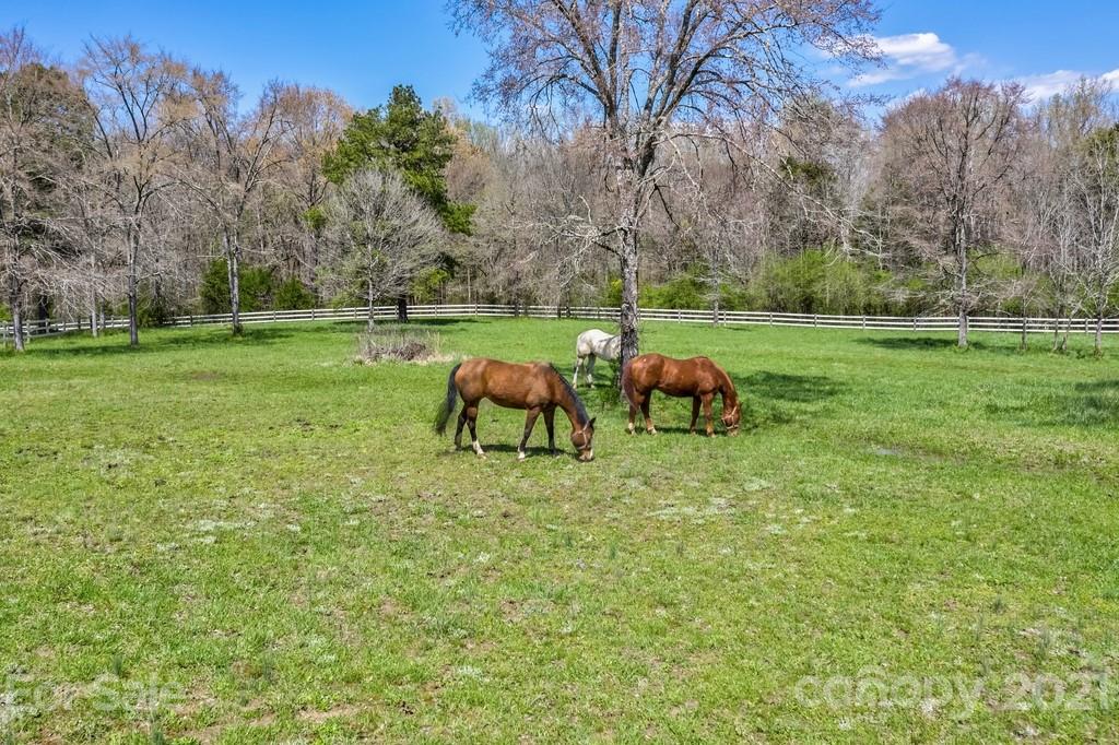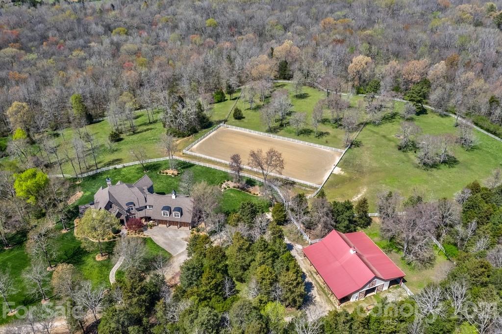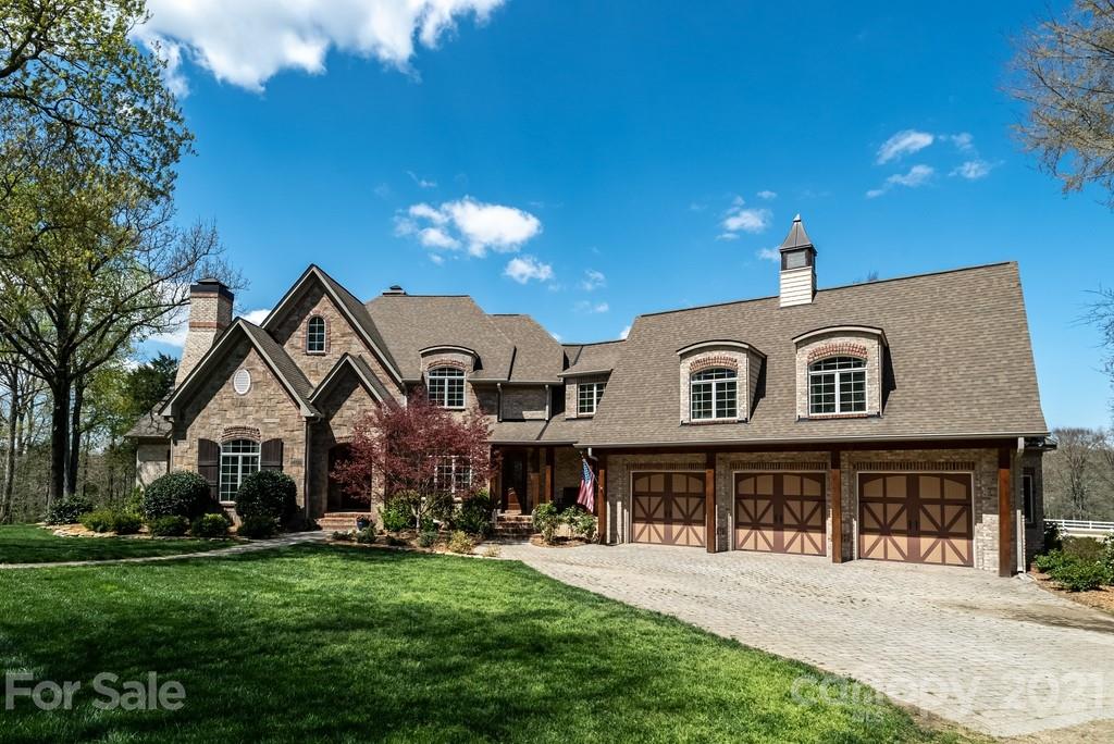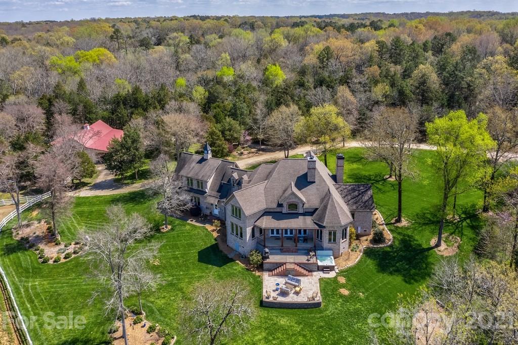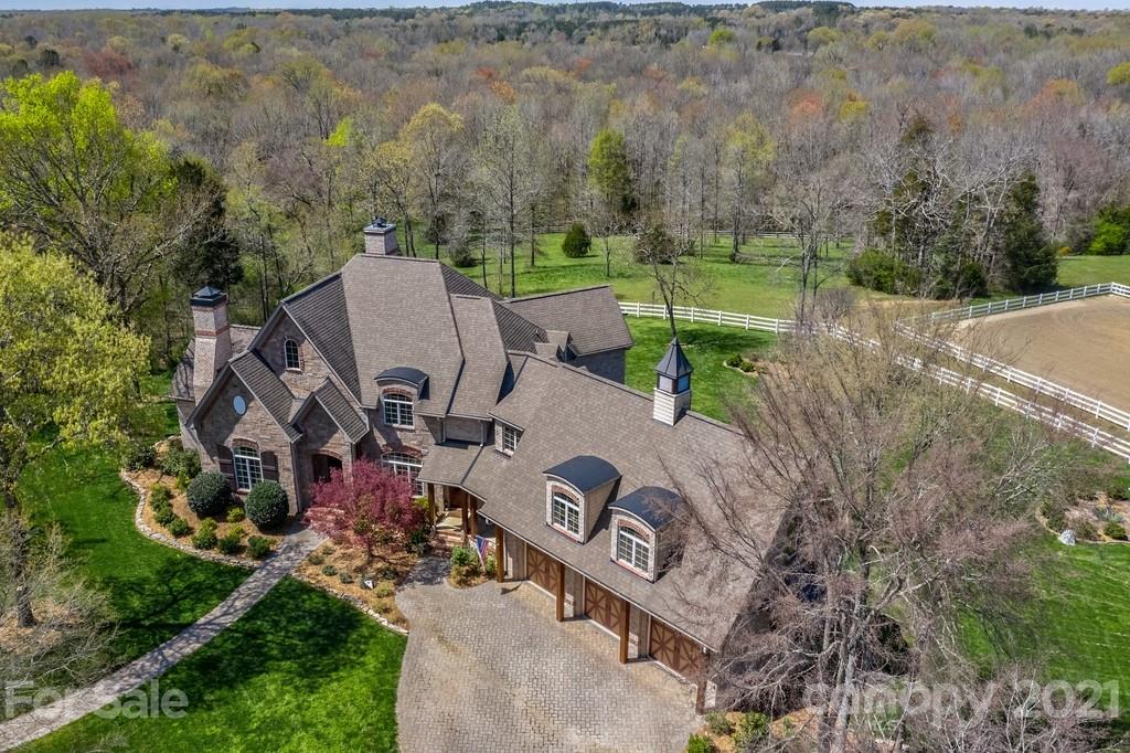 Private & peaceful equestrian estate bordered by creek w/stone & brick custom-built French county manor. Located close to shopping/dining. Black Walnut HW floors, suspended wood beams. Updated kitchen w/cherry cabinets, quartz countertops, SS appliances, black walnut island & breakfast area. 2-story great room w/imposing floor-to-ceiling stone FP, built-in walnut cabinetry. Executive office w/FP, & built-in cabinetry. Main level primary suite w/tray ceiling & accent lighting. Bath w/ 2 vanities, jacuzzi tub, frameless glass & tile shower, large closet w/professional cabinetry & 2nd walk-in closet. 2nd level has 2 BR's, large bonus/BR & 2 baths. Walk-in large 2 level attic storage. Covered back porch & patio w/hot tub. 5 stall barn, space for more. Sliding end doors, concrete aisle, tack rm, workshop, hay loft & shed roof. 3 pastures,100’ x 200’ arena. Includes 2 additional lots w/home sites perfect for multigenerational sanctuary or investment. Previous buyer couldn’t sell their home