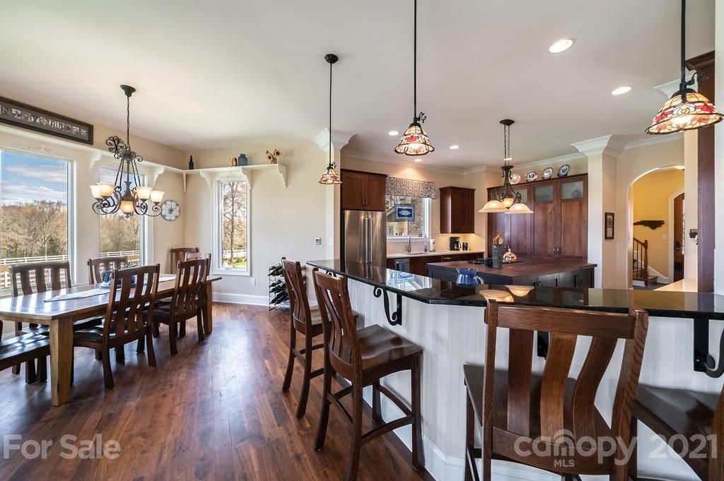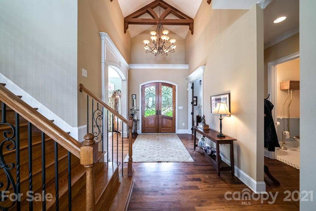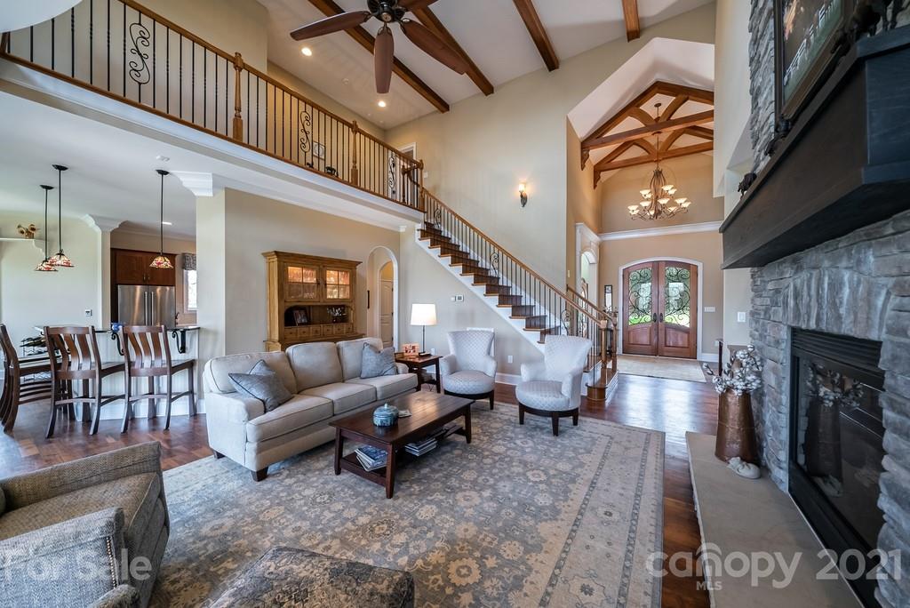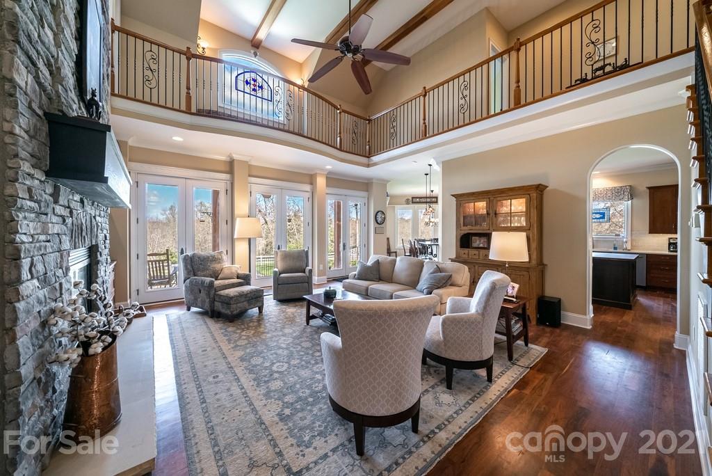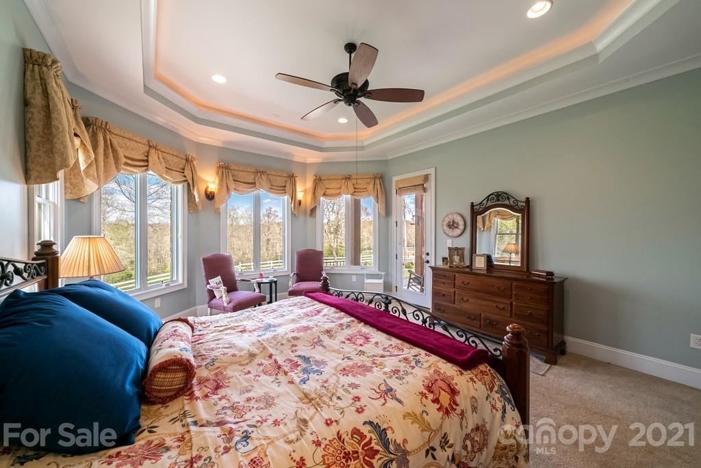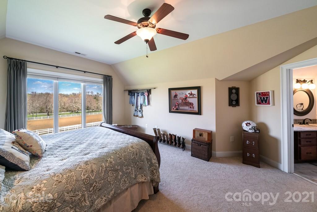 Private & peaceful equestrian estate bordered by creek w/stone & brick custom-built French county manor. Located close to shopping/dining. Black Walnut HW floors, suspended wood beams. Updated kitchen w/cherry cabinets, quartz countertops, SS appliances, black walnut island & breakfast area. 2-story great room w/imposing floor-to-ceiling stone FP, built-in walnut cabinetry. Executive office w/FP, & built-in cabinetry. Main level primary suite w/tray ceiling & accent lighting. Bath w/ 2 vanities, jacuzzi tub, frameless glass & tile shower, large closet w/professional cabinetry & 2nd walk-in closet. 2nd level has 2 BR's, large bonus/BR & 2 baths. Walk-in large 2 level attic storage. Covered back porch & patio w/hot tub. 5 stall barn, space for more. Sliding end doors, concrete aisle, tack rm, workshop, hay loft & shed roof. 3 pastures,100’ x 200’ arena. Includes 2 additional lots w/home sites perfect for multigenerational sanctuary or investment. Previous buyer couldn’t sell their home