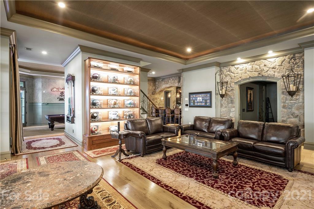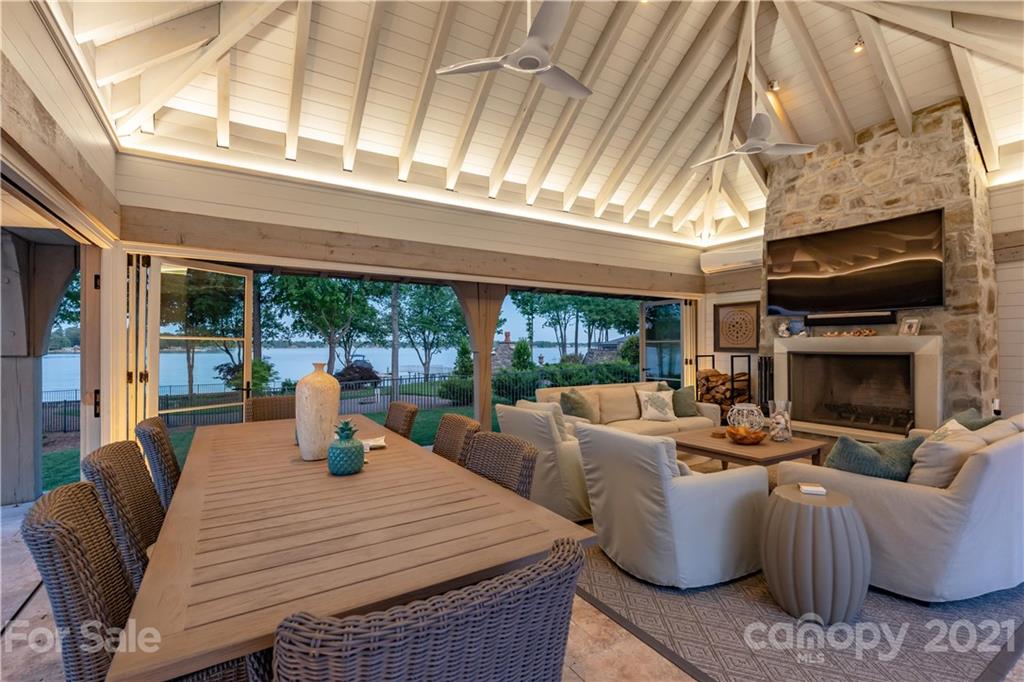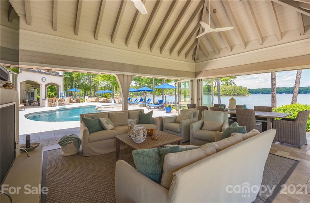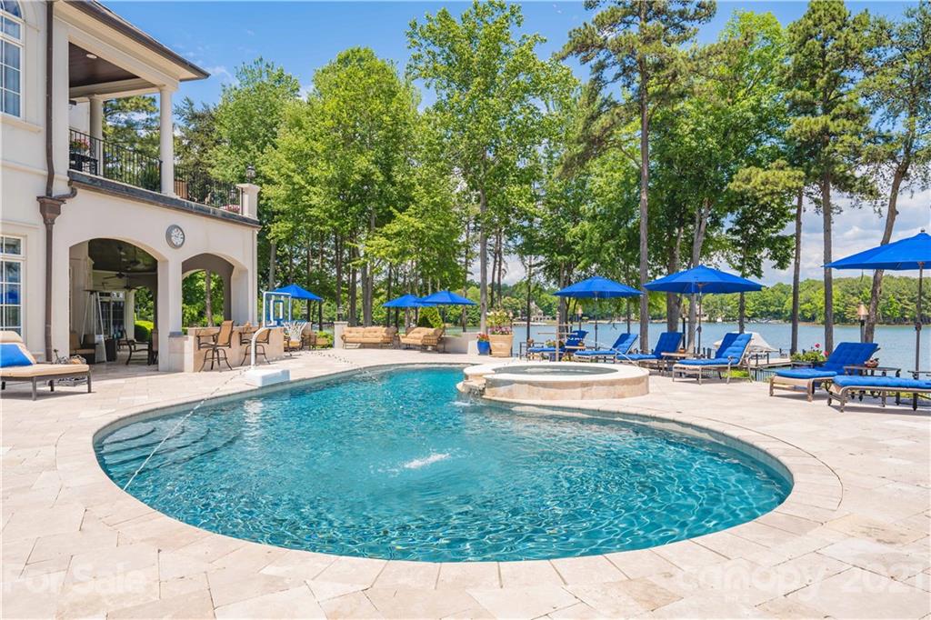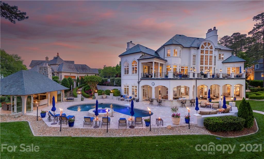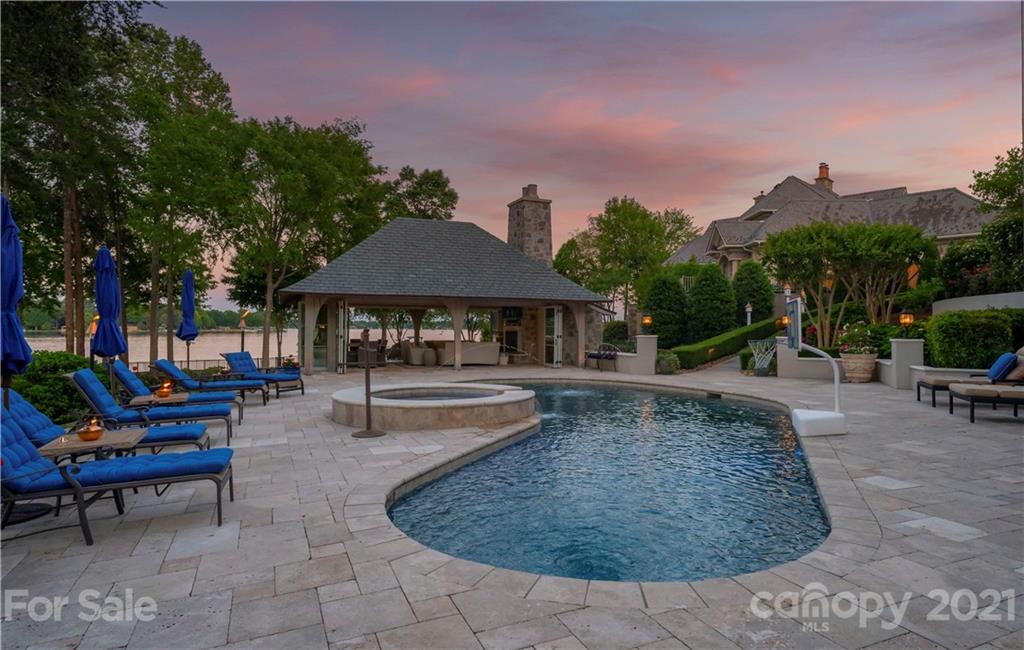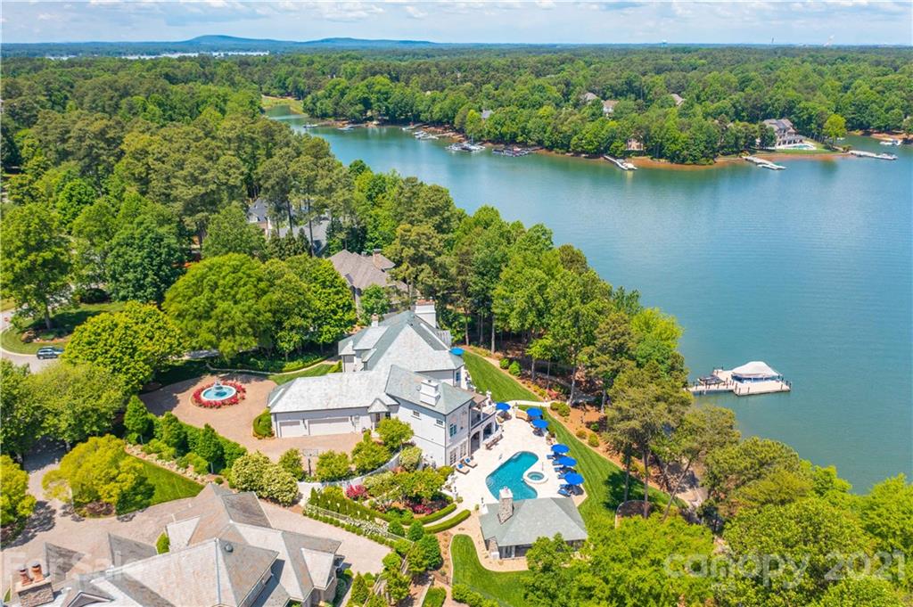 Step inside this exquisite waterside estate exuding elegance and style throughout. Entertain guests in the lakeside pool house, featuring foldaway doors on 3 sides, a stone fireplace, and vaulted wood ceiling - the perfect space to enjoy refreshing cocktails with friends while taking in the sensational lake views. Other impeccable features of this home include a slate roof, an expansive wine cellar, a complete workout room, elevator, and circular driveway accented by a beautiful, tiered fountain & stunning rose bushes. Relax by the resort style pool & spa or in your covered outdoor living spaces that include a full outdoor bar and kitchen. Inside, you’ll find such stunning features as a custom pub style bar, billiard room, theatre, gourmet kitchen, scullery, keeping room, 2 offices & luxurious owner's suite. Surrounded by amazing outdoor living spaces, lush landscaping, and beautiful Lake Norman views, this home is truly one-of-a-kind. Smart home with security & whole house generator.