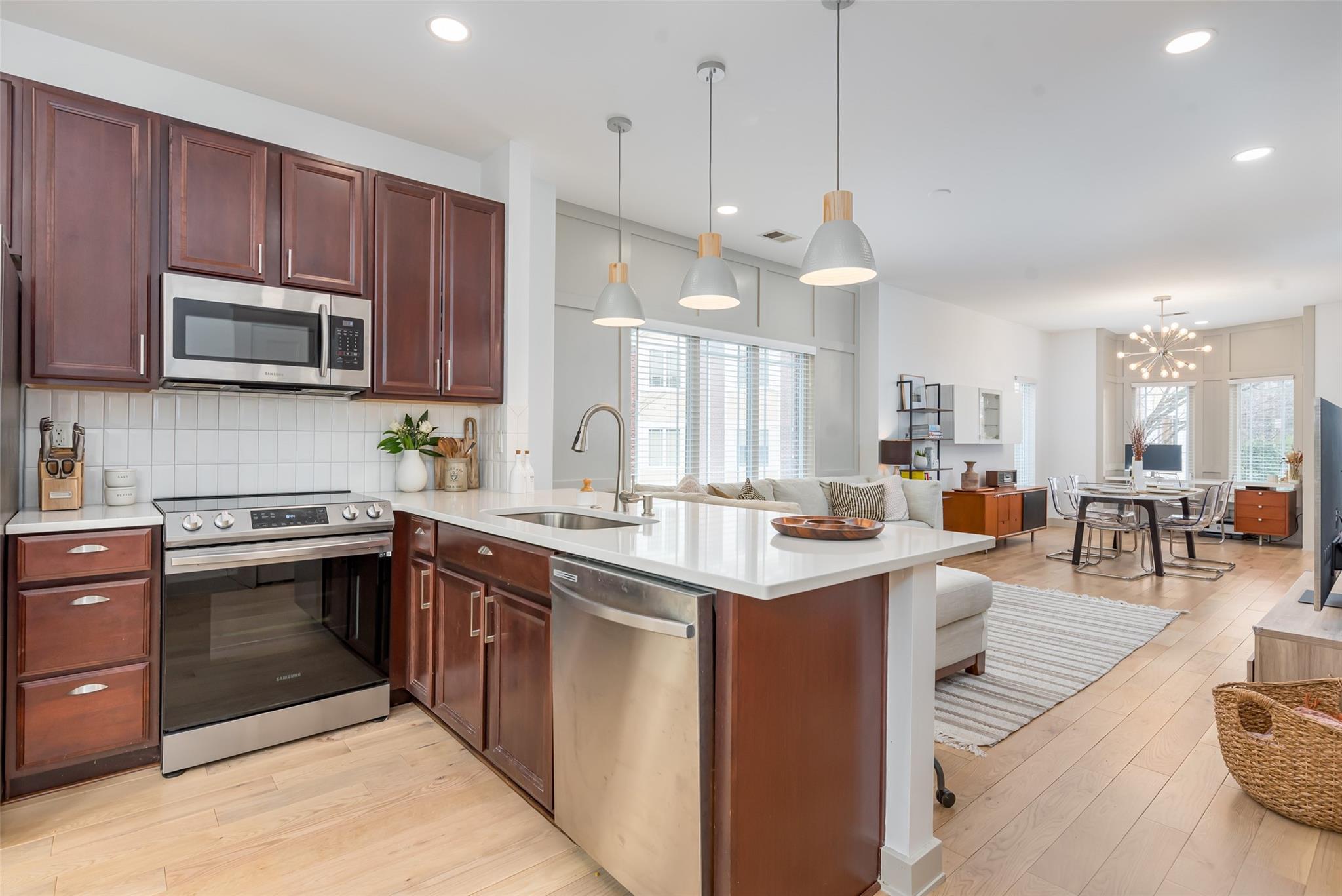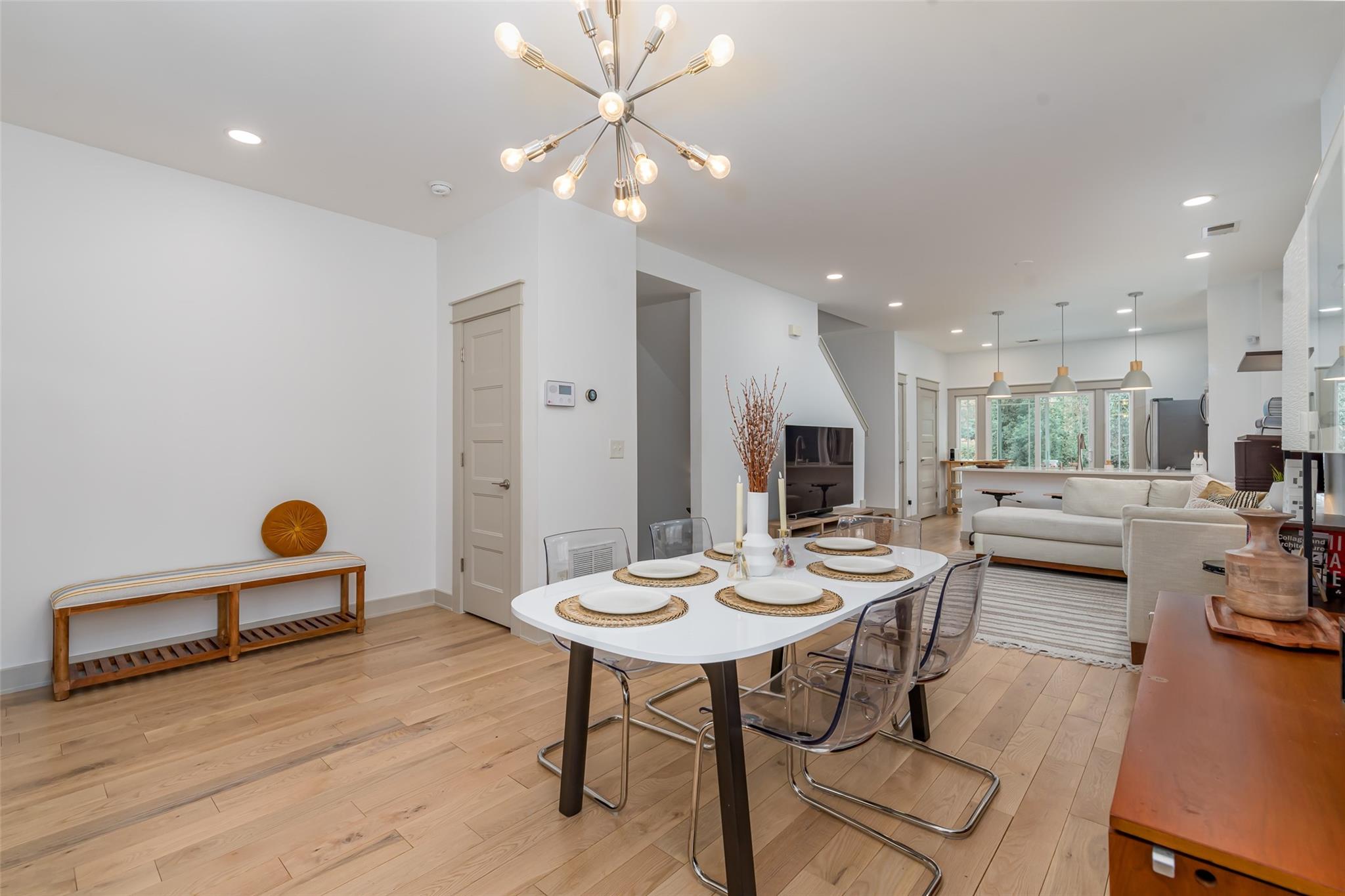 Live, work & play within prime Madison Park with everything at your fingertips! Easy walk from this End Unit to Pk Rd Shopping Ctr & Montford Dr. A hot spot close to South End & Lynx Light Rail. Bright open floor plan w/ new 3/4" oak hardwood flooring on main & upper levels, added recessed lights & a renovated master & powder bath. Kitchen Reno boasts of 43" Sunset Maple Cabinetry, new appliances, quartz countertops & new backsplash. 9" ceiling on main floor. Both rear decks recently replaced. Brand new roof. Each bedroom features its own Ensuite Bath. Backs up to private woods. This end unit is right beside the mail boxes and is right beside the designated guest parking. MOVE-IN READY; A MUST-SEE!
