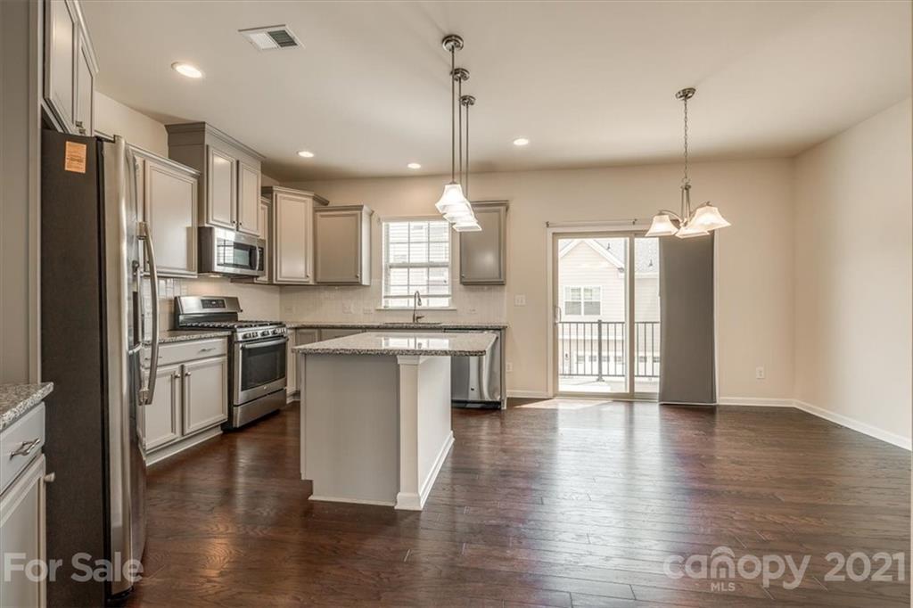 Gorgeous, like new 3 bedroom/2.5 bath townhouse located in Cameron Creek. This home offers hardwood floors on main level, a gorgeous eat-in kitchen with stainless steel appliances, gas stove, granite countertops, beautiful island and large walk in pantry. Walk out balcony from kitchen area offers room for enjoyment and grilling. Lower level offers a bonus room with large storage closet and 2 car garage. Upper level offers large primary bedroom with oversized en-suite bath. Dual sinks, oversized shower, large soaking tub and closet. Two secondary bedrooms and laundry room. Cameron Creek community amenities include pool, playground, cabana and outdoor fireplace. CPI Security installed with cameras and keyless entry. This home does not disappoint!