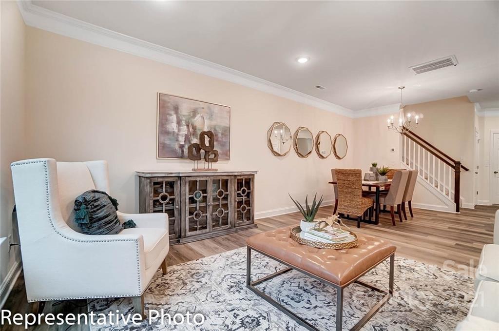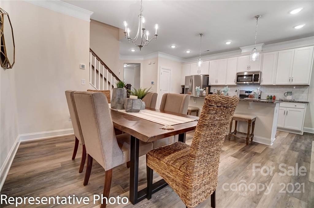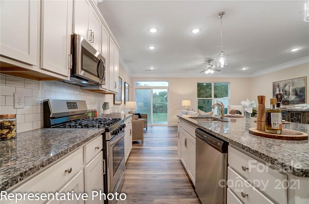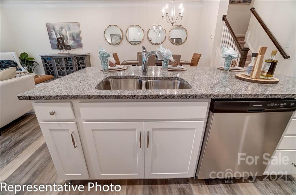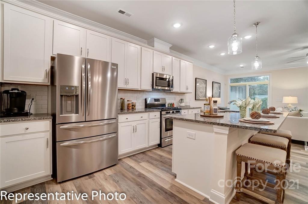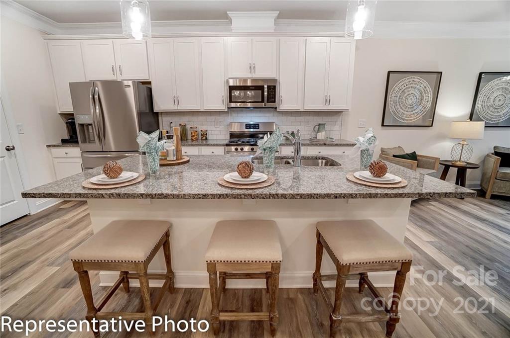 Beautiful NEW townhomes in a great location! This Ashland plan features an open floorplan that includes the kitchen, dining area, and family room on the main level. The kitchen features white cabinets with crown molding, granite countertops, a tile backsplash and stainless appliances, including a gas range. Beautiful and durable enhanced vinyl plank flooring runs throughout the main level, and a rear covered porch allows you to enjoy the outdoors in any weather. The upstairs features a loft, owner's bedroom, two secondary bedrooms, a hall bath, and laundry room. The owner's bath has been upgraded with a double-bowl vanity and a tiled walk-in shower with seat. Additional upgrades include oak tread stairs with metal balusters and tray ceilings in the foyer and owner's bedroom. Ask about the Smart Home features included in this home! This convenient location offers easy access to I-77, 485, & 85 and is within walking distance to shopping and dining. Visit today!