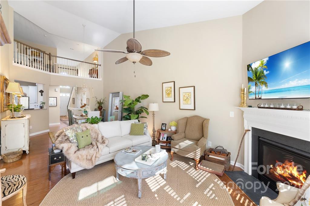 Gorgeous hardwood floors on main level lead you into a beautiful entry hall. The vaulted ceilings in the living area make it even more spacious.. Corner gas fireplace for those cold winter nights. Light and airy master suite with trey ceiling and a large master bath. Open and spacious kitchen with granite countertops, island, and stainless steel appliances. The loft upstais lends itself to a reading room, playroom or office space. Superb walk-in storage for all those holiday decoraions. Lovely private patio with an awning to cool down those hot summer days.