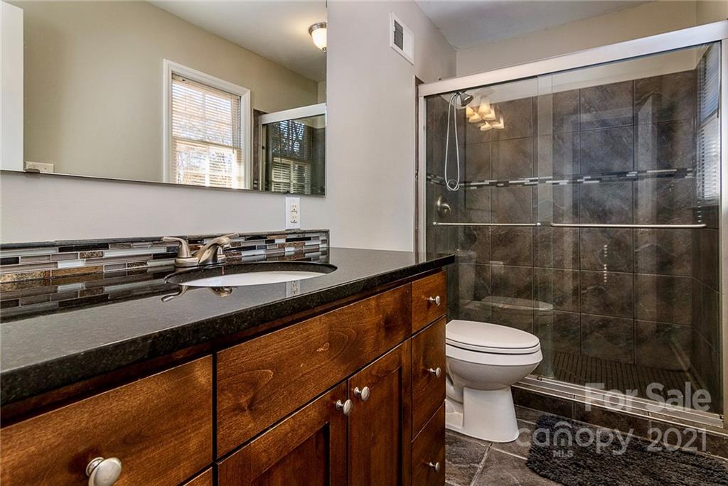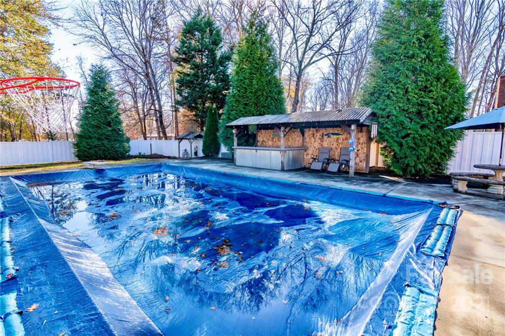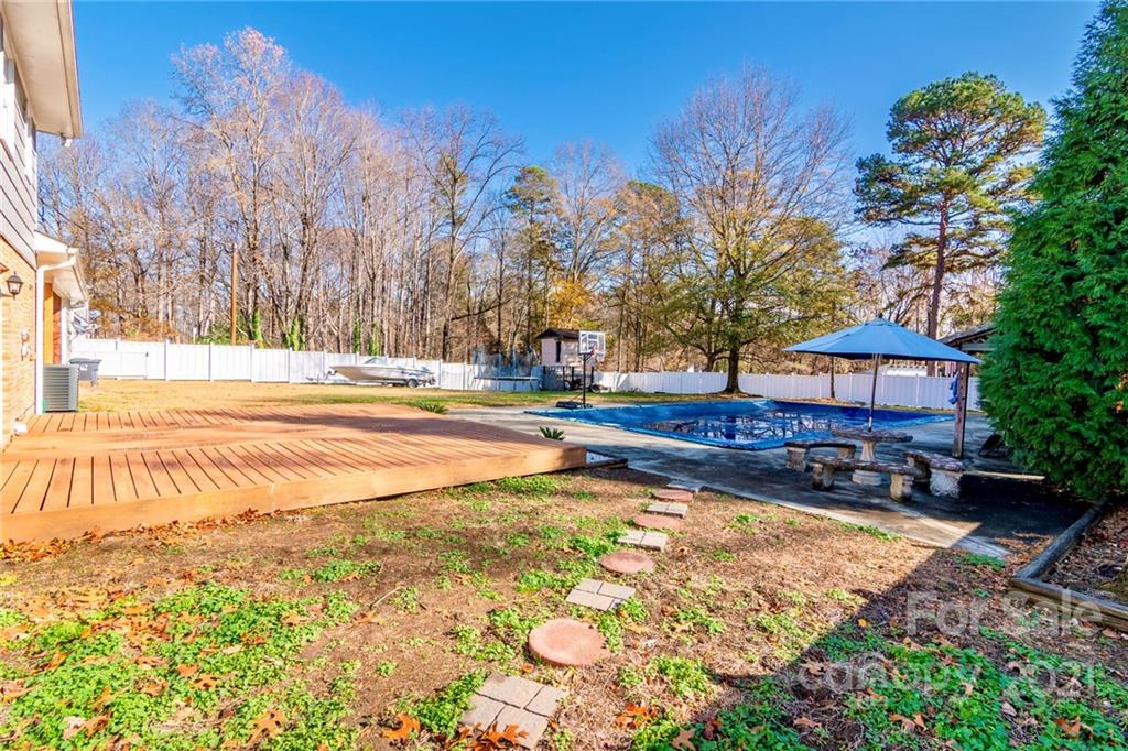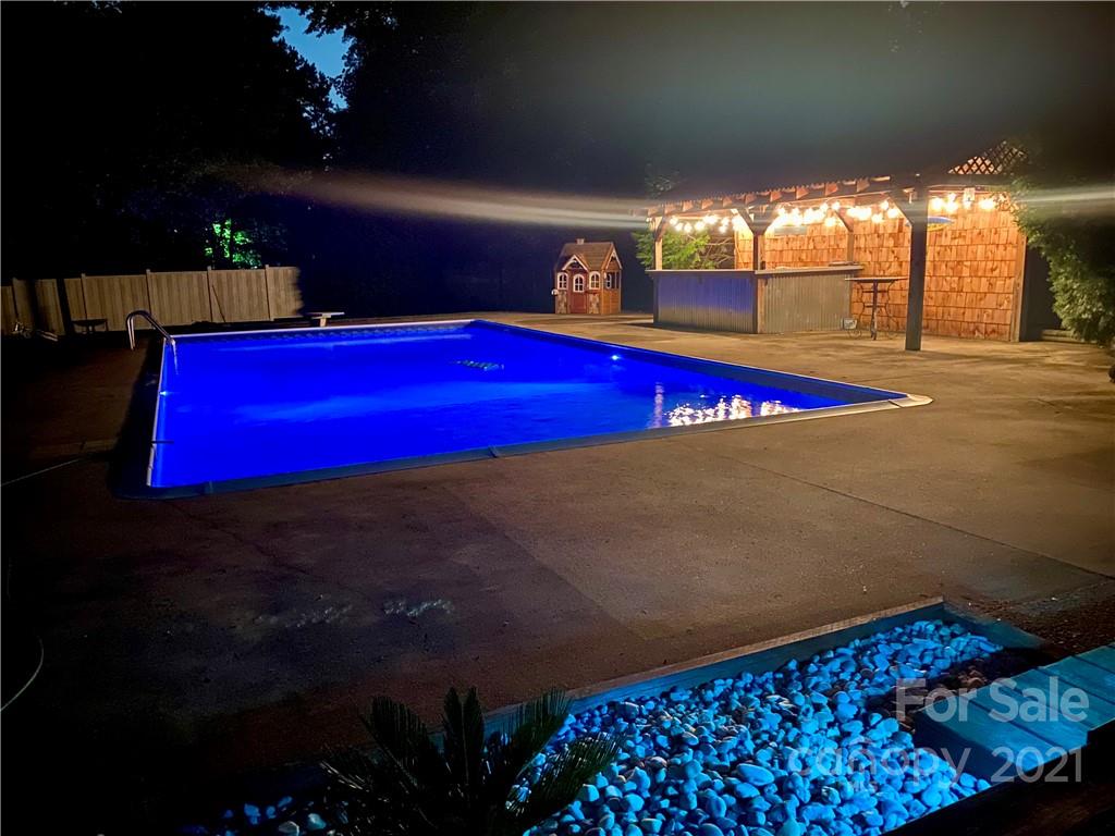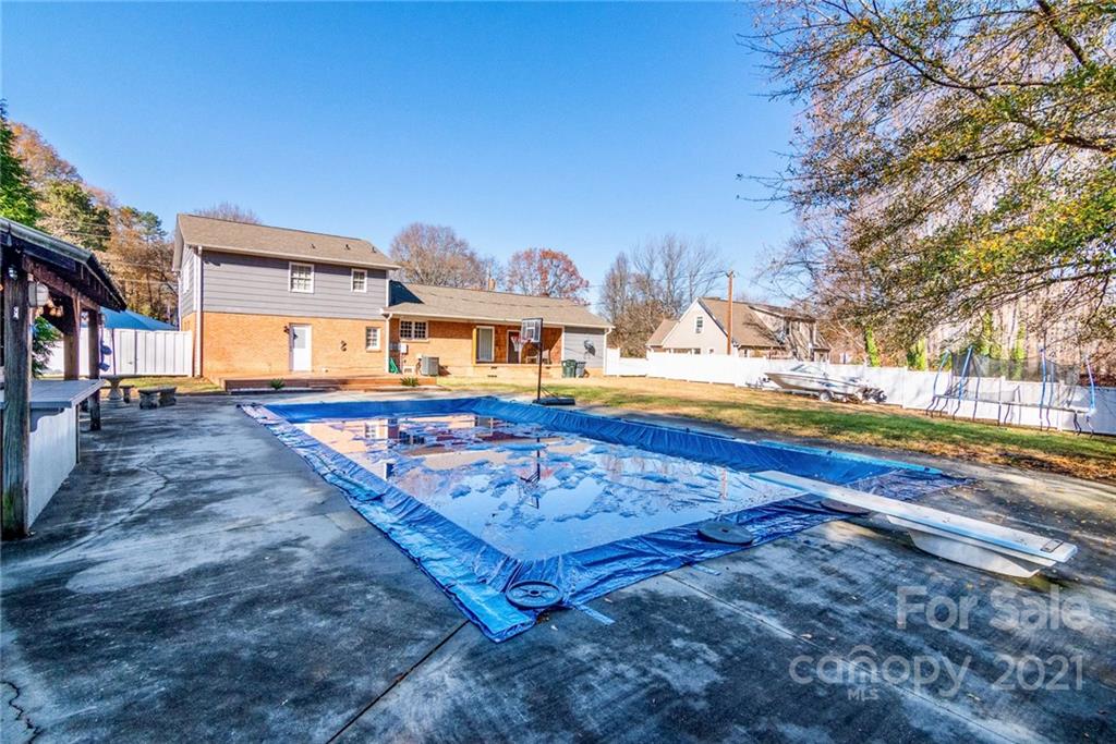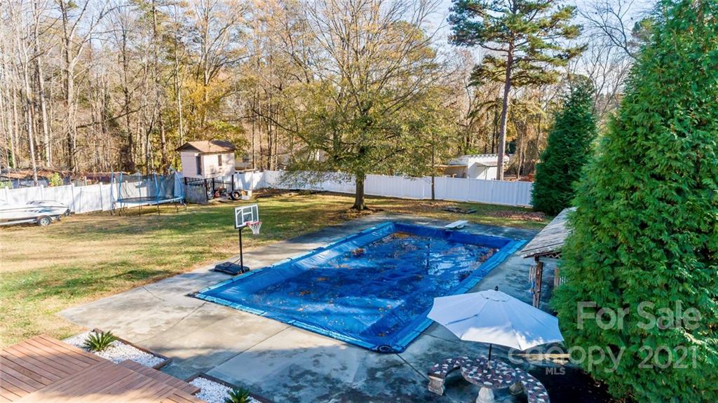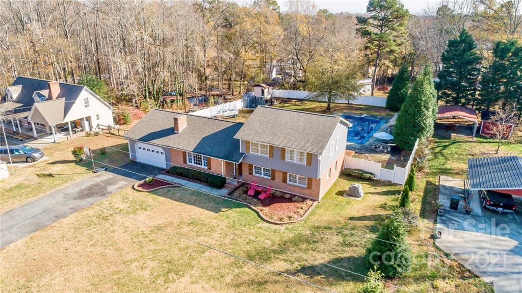 This newly updated split-level home with private, backyard pool and cabana bar is move-in ready! The home features fresh paint throughout and recently updated lighting fixtures, flooring, and granite! The current owners have poured a considerable amount of love and care into the property since they purchased it in 2013. The kitchen has custom cabinetry with stainless steel Samsung appliances and lots of natural light. You will love the spacious backyard with in-ground pool, pool-side built-in cabana bar, diving board, and privacy fencing around the entire backyard. New Roof in 2018 and HVAC in 2013. The main level living room features a Squire Wood Burning stove. The primary bedroom and bathroom and 2 other bedrooms and a bathroom are located on the upper level. The spacious lower level includes a bedroom, half bath, and den with access to the backyard. No HOA or discovered restrictions. Conveniently located near HWY 16 with quick access to Charlotte and Lake Norman.