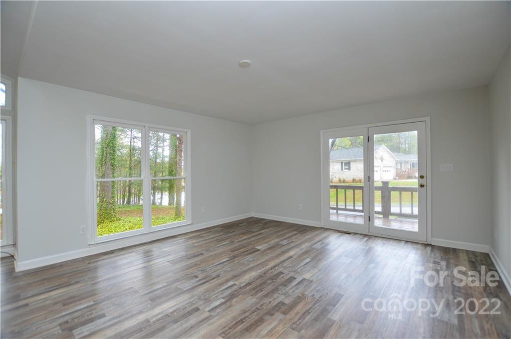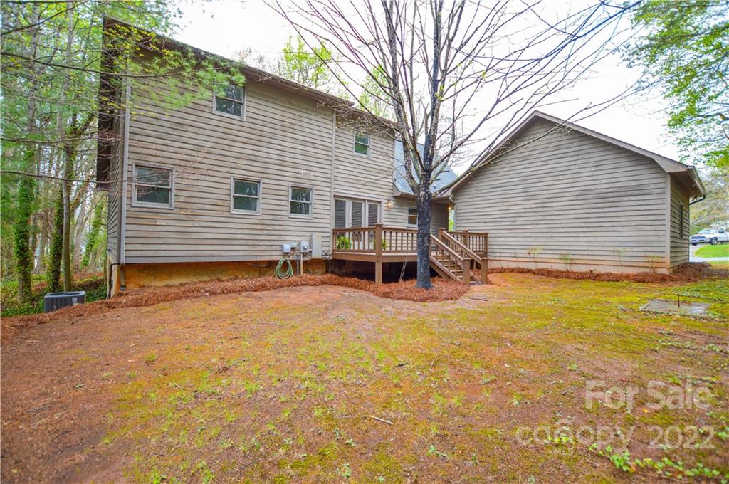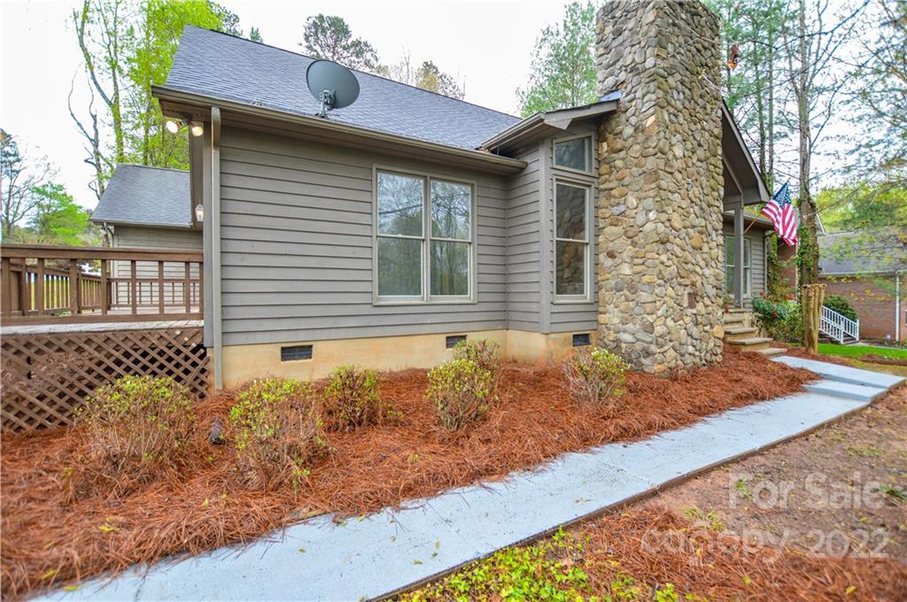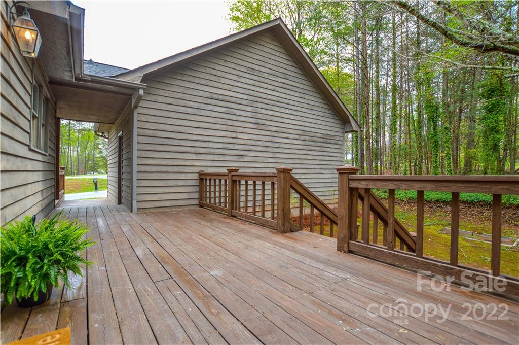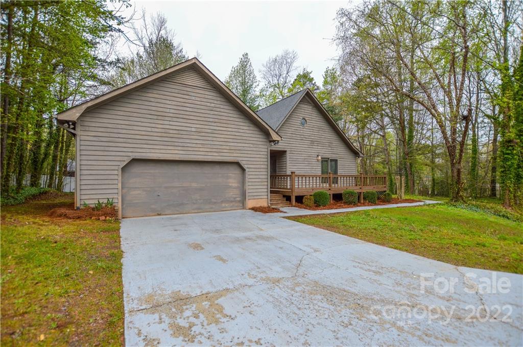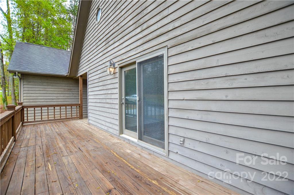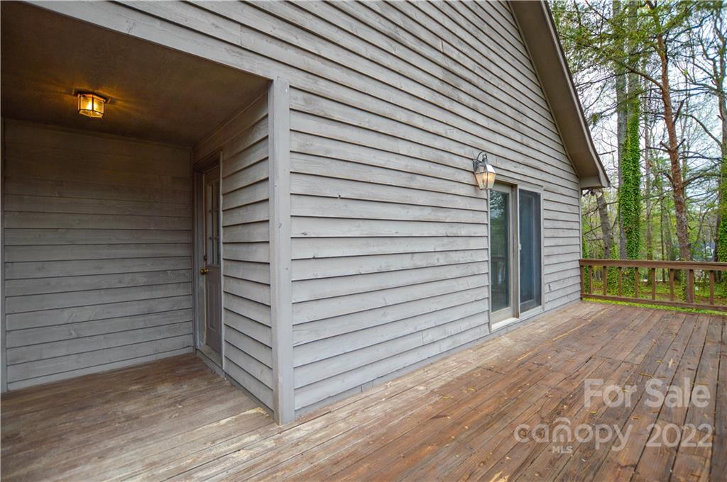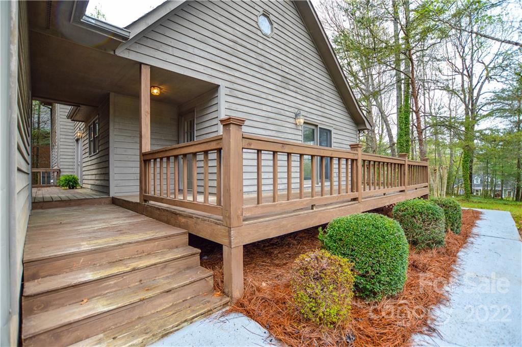 Capture the feeling of mountain-like seclution (at the Lake) it can be yours on this large .56 acre heavily wooded corner lot- offwater- Room for pool out back! Primary bedroom main with additional bedroom or office, 1.5 baths down, 2 bedrooms upstairs w/1 full bath, beautiful stone, wood burning fireplace, large open living, unfinished basement w/work bench with walk-out. Great for entertaining with a full wrap around deck, large back yard. Repairs and improvements have been made - bath(s) and kitchen reno is up to your desires (consider in your Offer) popcorn ceiling removed, all new paint, all new carpet upstairs, luxury vinyl tile downstairs. Unfinshed basement for additional SF. Garage detached w/covered breezeway, finished w/shelving, firewood rack and sink. Westport Golf Community, NO HOA, yes CCRs, walking/cart distance to the 12th hole- Westport Golf clubhouse is close by on Golf Course Dr. South. Don't miss this opportunity! see all lake accesses and Golf info in attachments