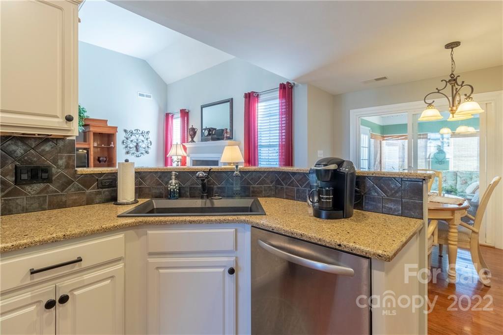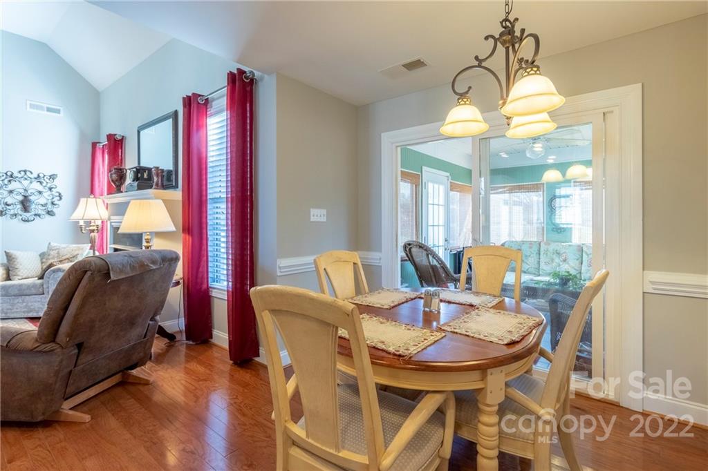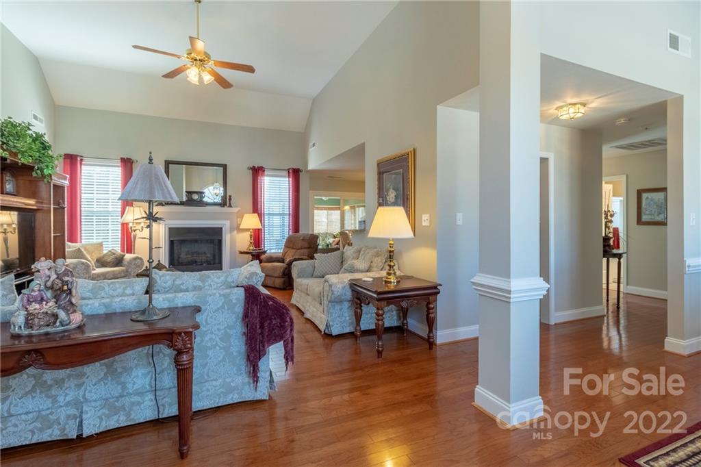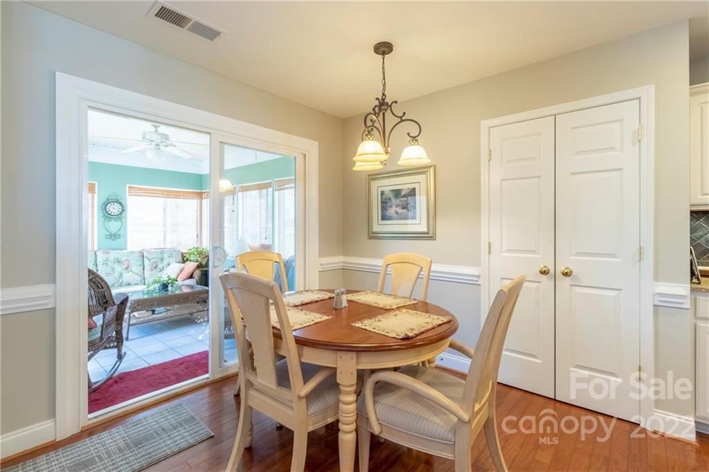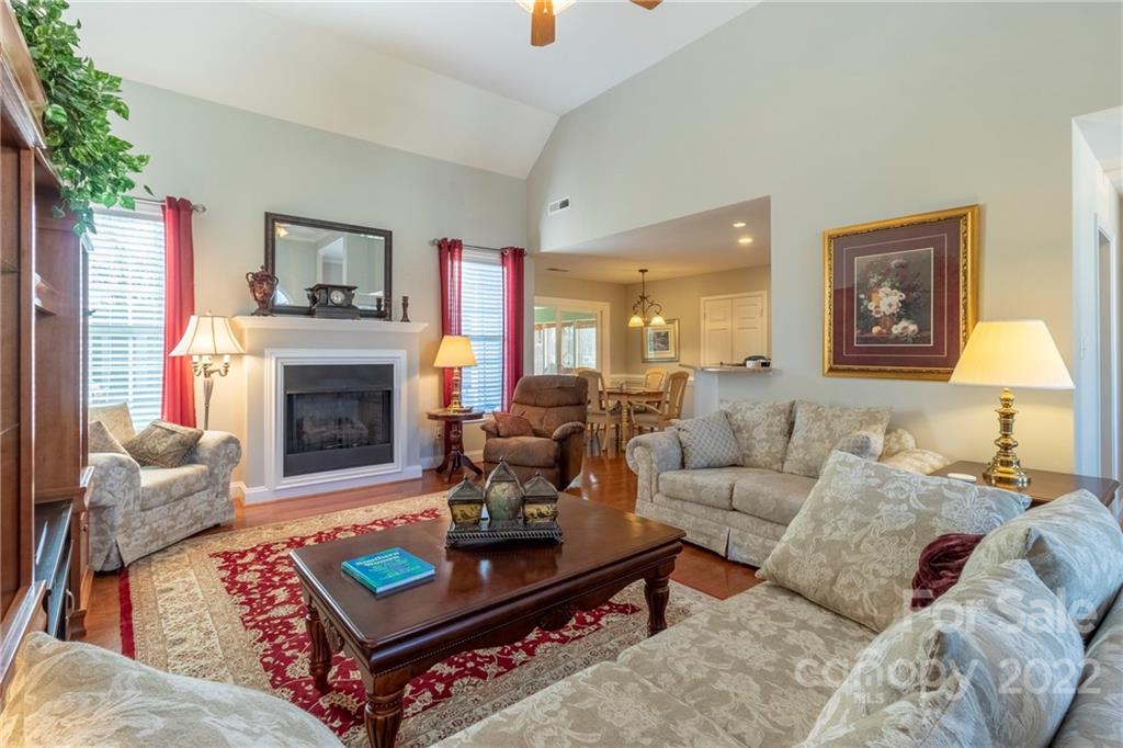 Beautifully maintained one owner home on courtyard lot. Great open floor plan with primary bedroom separated from additional two. Kitchen recently remodeled. Quartz countertops, microwave, dishwasher, newer stainless steel appliances, deep farmers sink, abundant cabinets. Sizable laundry room with cabinets. Fireplace with gas logs in Great Room. Hardwood floors throughout. Tile in baths and sunroom. Primary bath has separate shower and tub. Spacious Primary with reading/office nook. Original screened porch was totally enclosed into a sunroom (no heat or A/C) Private backyard w/outside patterned patio. 12x12 storage shed remains. 2 Car garage with cabinets and shelving to remain. This lovely property will not disappoint and will not last long.