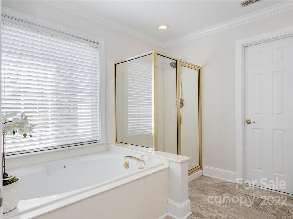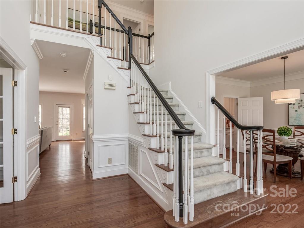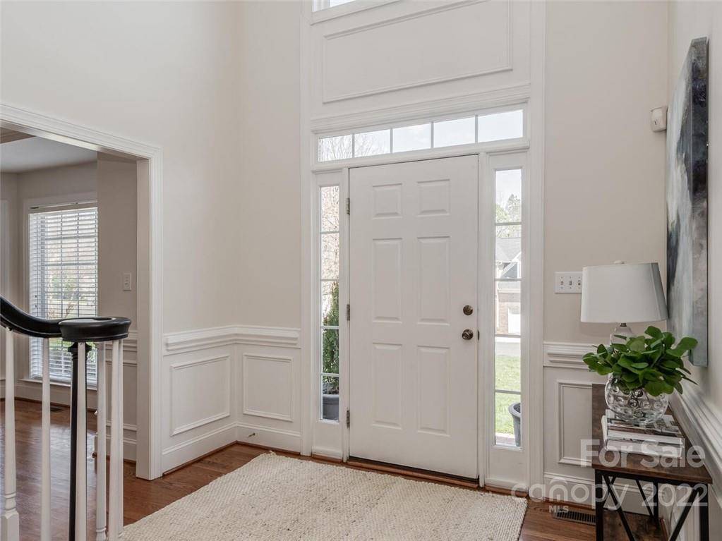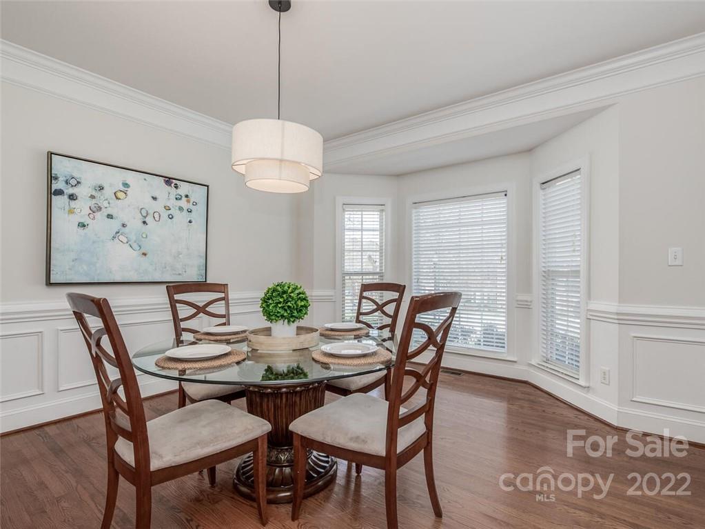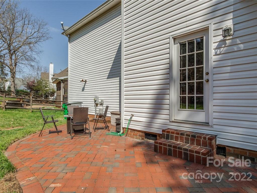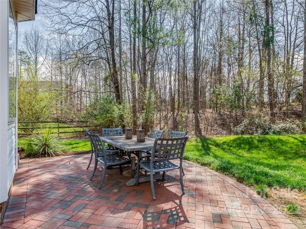 Lovely brick 2 story in south Charlotte in the beautiful community of Whitmore. Open floorplan with large rooms perfect for entertaining. Hardwood floors down with 9 foot ceilings. Tons of windows provides beautiful natural light. Wonderful kitchen with white cabinets and tumbled tile backsplash, island and breakfast bar opens to large family room with wall of windows and atrium door leading to brick patio and private wooded backyard. Double staircase provides easy access to bonus room. Generous primary suite with trey ceiling. Primary bath with double vanities, garden tub, shower and walk in closet. Secondary bedrooms and fantastic bonus room complete the upstairs. 2 car garage. Tankless water heater; most of interior walls painted March 2022 in beautiful neutral pallet. 2 zone irrigation system in front and side yard
