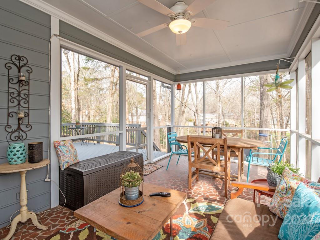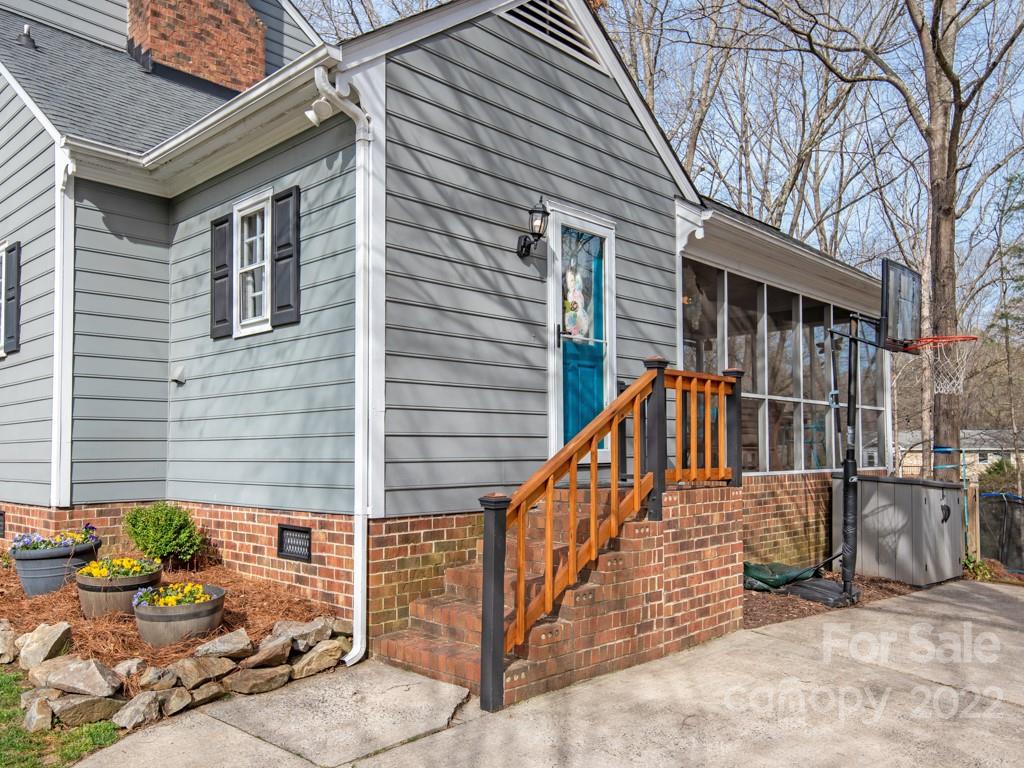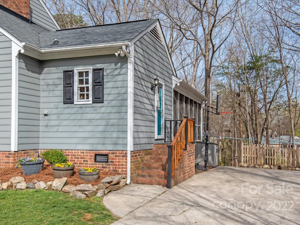 Amazing opportunity to live on over a half acre wooded culdesac lot close to anything you need in Charlotte. Charming low country rocking chair front porch with fantastic curb appeal. Move in ready with renovated kitchen and bathrooms and brand new carpet. Relax and enjoy the quiet surroundings indoors or outside. Outdoor living with screened porch overlooking the beautiful and private wooded yard, fire pit area, playhouse, and more. Fabulous walk in storage. Charm exudes throughout. This home is in excellent condition and will not last long. Top Rated Schools. Must See!!!