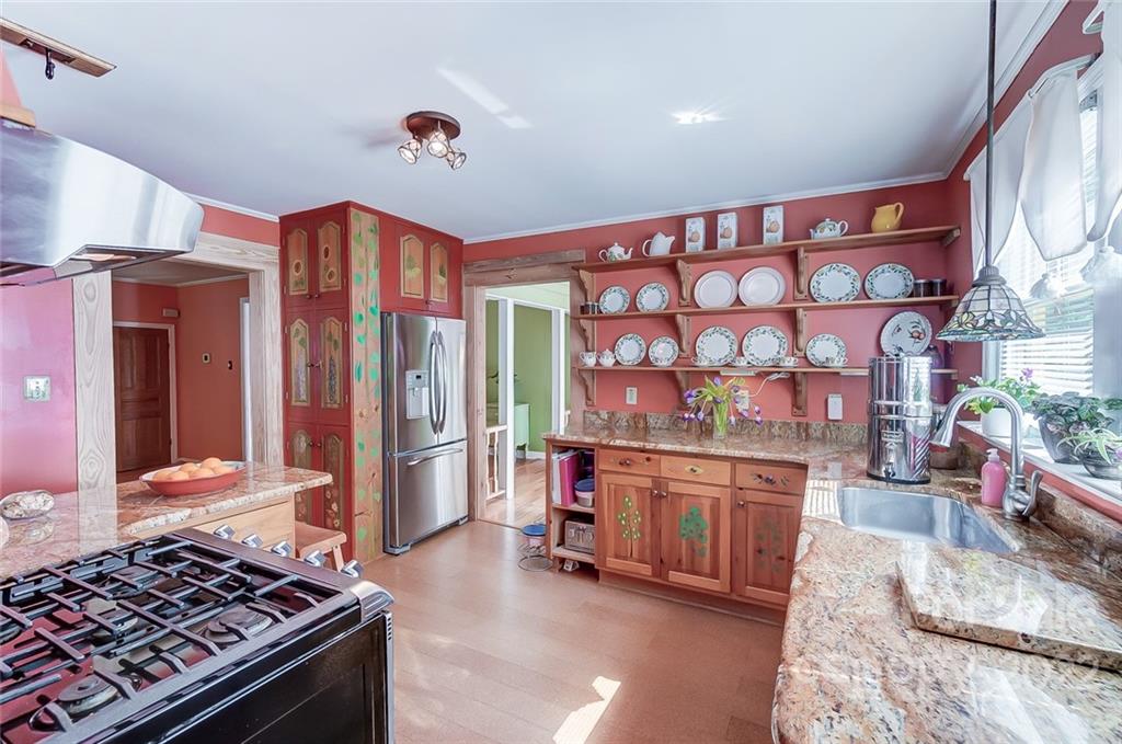 Welcome home! One of a kind historic home just 2-blocks from the heart of downtown Waxhaw. Walking distance to EVERYTHING! Built in 1903, home has been placed on the National Register of Historic Places by the United State Dept. of Interior. Beautiful spaces inside & out! Wonderful .6 acre treed lot w/ detached 2-car garage. Too many unique features & upgrades to list (SEE ATTACHMENTS FOR COMPLETE LIST). Cedar lined closets, heart pine flooring, skylights, wood burning AND gas FP & more. Kitchen has cork flooring, granite counters, gas stove & pull-outs. Each room more unique than the last. Addition behind home attached by open breezeway has dedicated HVAC & 3 skylights. Perfect for art studio, home gym, business or additional bedroom. Wrap around front porch, sunroom & large deck. This home is a must see. Enjoy all Waxhaw has to offer - dining, shopping, antiques, brewery, parades, historic Waxhaw Foot Bridge, Museum of the Waxhaws and Andrew Jackson Memorial, Cane Creek Park & more.