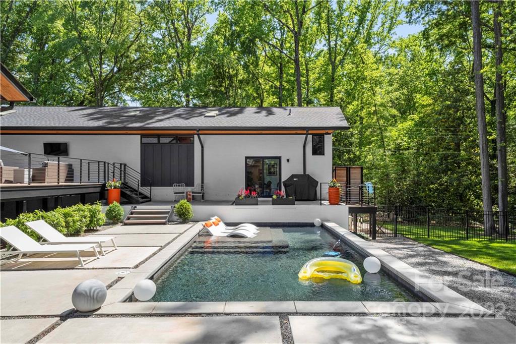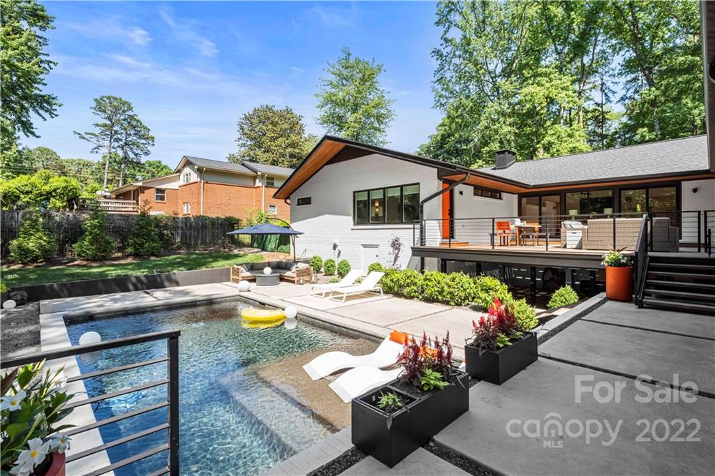 Perfect location meets immaculate mid-century modern property. No stone was left unturned on this turnkey-ready home as it was taken down to the studs and everything replaced. Literally too many options and upgrades to note. The garage registers at 1500 square feet and has a loft space and powder room and can be converted into a pool house with full baths. Overhead in the single parking space has a pull-down attic ladder and the lower storage space under the shop has an access door on the backside by pool mechanicals. The pool is perfectly situated to enjoy the expansive backyard! If you’re looking for a home that has been celebrated by mid-century modern lovers over the years as well as a favorite on the Mad about Modern house tour, this is your opportunity to own a truly one-of-a-kind property.