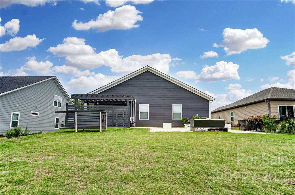 Don't miss this like new, charming ranch in Ellington Downs! Located in the Wesley Chapel/Weddington school zone, this community also features a neighborhood swimming pool and playground area. The large dining room at the entrance of the home features new board and batten detailing and the kitchen is a cook's dream! Pristine granite countertops, a gas cooktop, loads of counter space and fantastic sight lines to the open living space make this an ideal layout for entertaining. 2 secondary bedrooms share a lovely hall bathroom and the primary suite has a very large closet and shower. The added pergola and paved patio make fire pit nights with friends even more cozy!