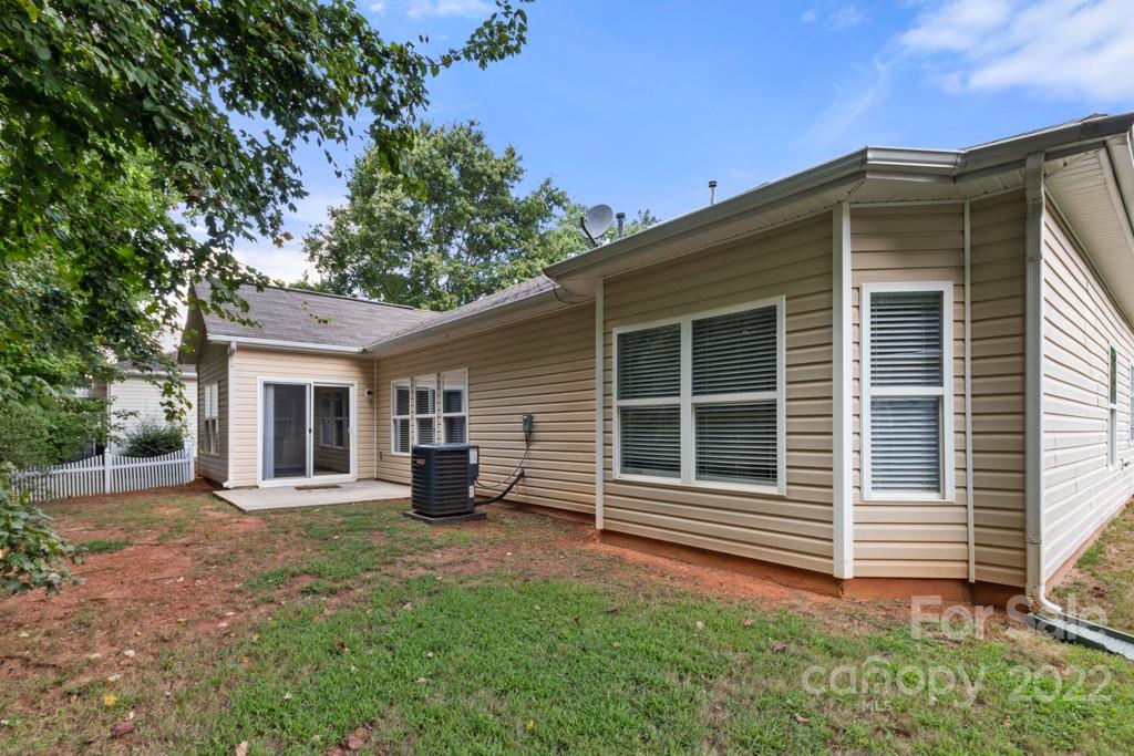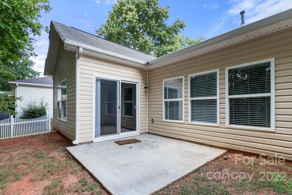 The house has granite counter tops in kitchen and bath areas. There is an actual laundry room. Back yard is private, but can be expanded for more space. The white fence on the right back runs along the property line, to identify depth of the back yard. Irrigation in front and sides and back of property sold as is, with no known issues..