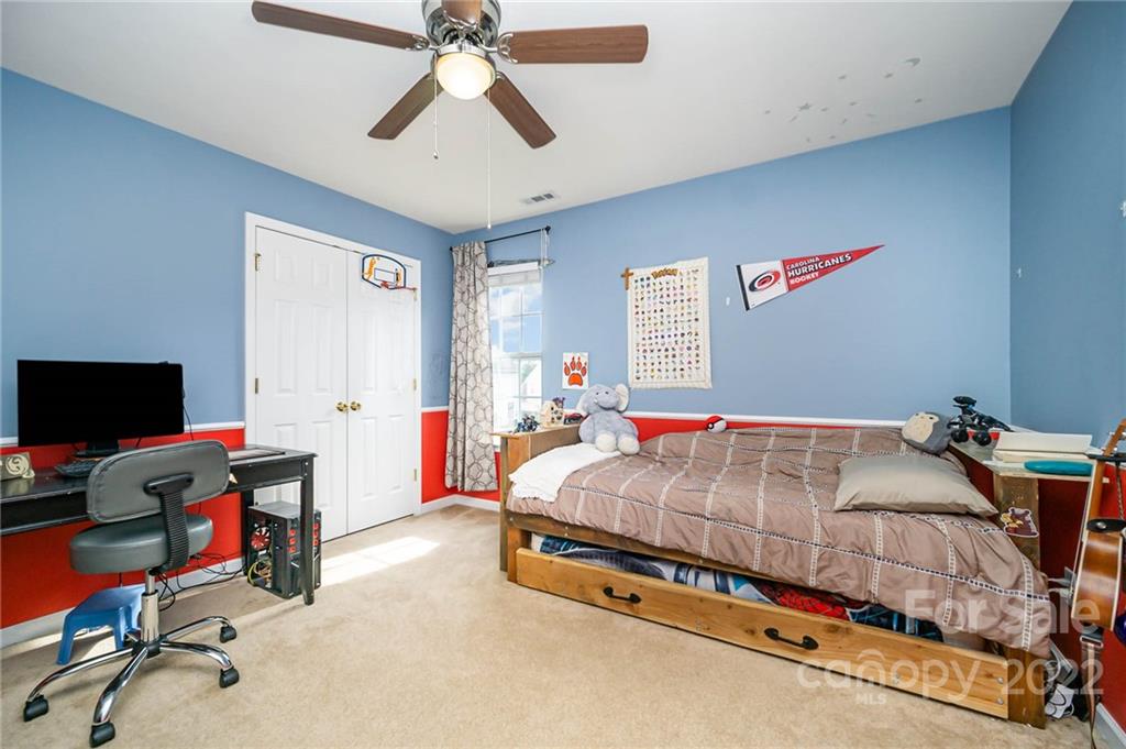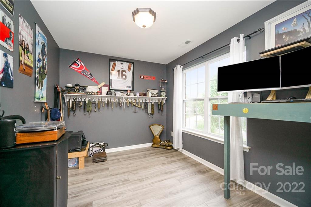 Gorgeous FIVE (5) bedroom home in a desirable Mooresville location, convenient to shopping and dining. Live large in this wonderfully thought out floor plan that features a bedroom on the main living level as well as an office and large open family room. Upstairs you'll find a spacious primary bedroom with spa like bath and three additional large secondary bedrooms. New Roof in 2021 and meticulously maintained home! Large backyard with a natural area and firepit. Newer awning off back patio that automatically closes if wind gets strong. Live in this incredible home and neighborhood that offers a highly desirable school district.