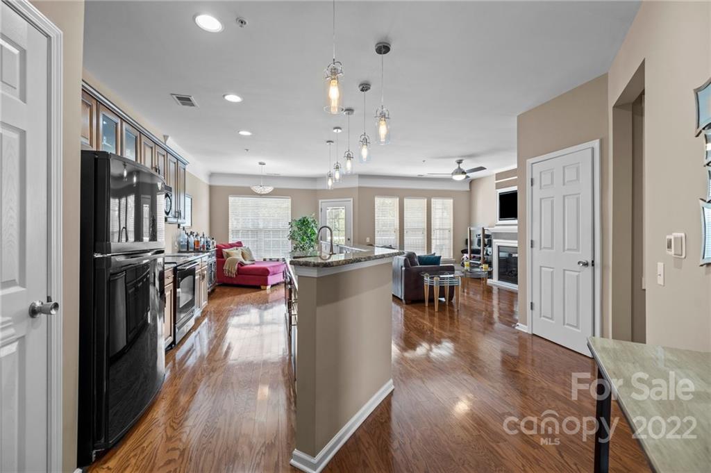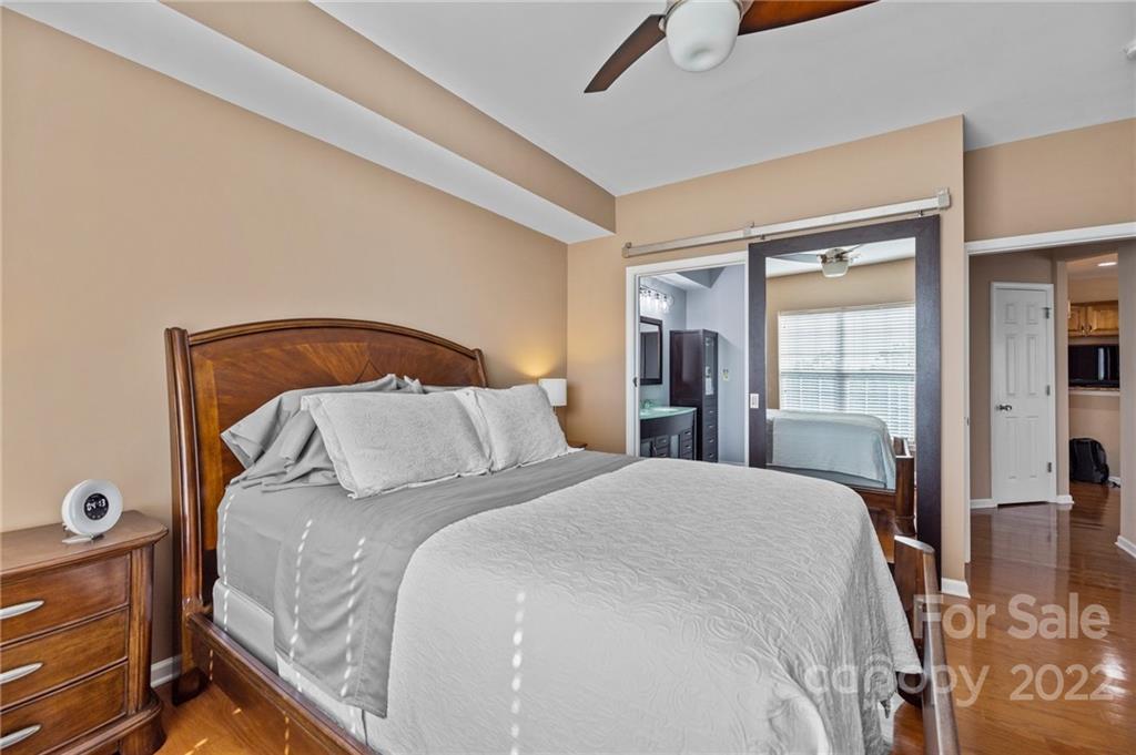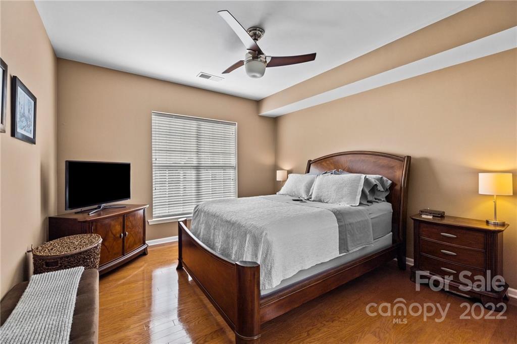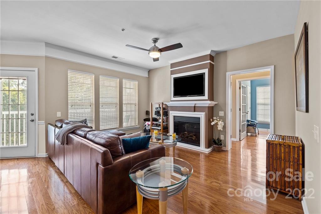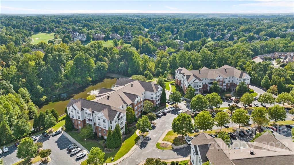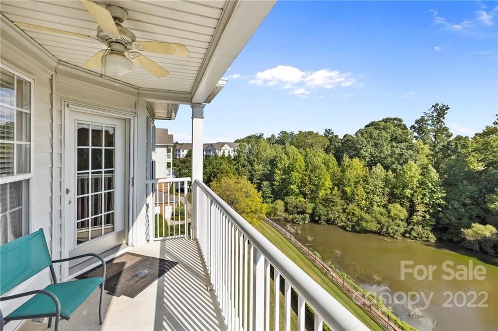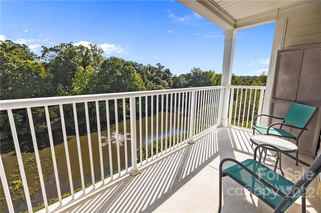 Location, Location, Location! Located in the Heart of Ballantyne, in the exclusive gated community of Belle Vista, this top floor, corner location offers wonderful privacy along with unobstructed views of the pond, fountain and the wooded backdrop. This condo is in pristine condition, featuring hardwood floors, granite countertops, updated light fixtures, , and a new (2021) HVAC. Master Bathroom features a double mirrored barndoor entrance, frameless shower with mosaic tile accents. Both Bathrooms and the Laundry Room are tiled. Community Pool and Veranda/Clubhouse.