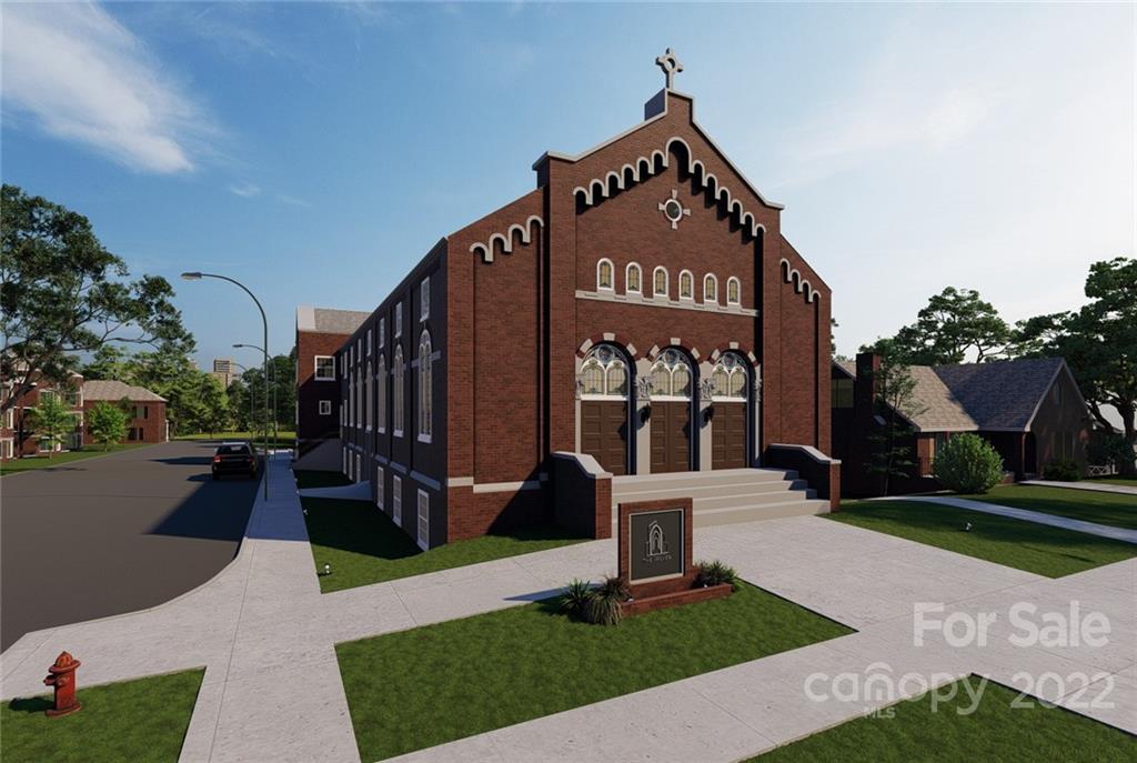 Unique opportunity to own a piece of Wesley Heights history in this renovated historical church! Enter this unit through the original front entrance & enjoy the original stained-glass windows, along with the original wood vaulted ceiling! While retaining the historical exterior of this 1927 church, you will enjoy the modern look & functionality of today's finishes which include quartz countertops, Restoration Hardware pendants, subway tile backsplash & porcelain tile shower walls & floors. Each unit has private entrance. Walk, bike, or catch trolley to Uptown to take advantage of entertainment, shopping, & dining, or hit all the spots in FreeMoreWest & much more! Just a quick drive to vibrant Southend & quick access to I-77. Photos/Video are renderings of complex/unit. Colors, options, layout may not be exact to finished product. Please review floorplans/options w/agent